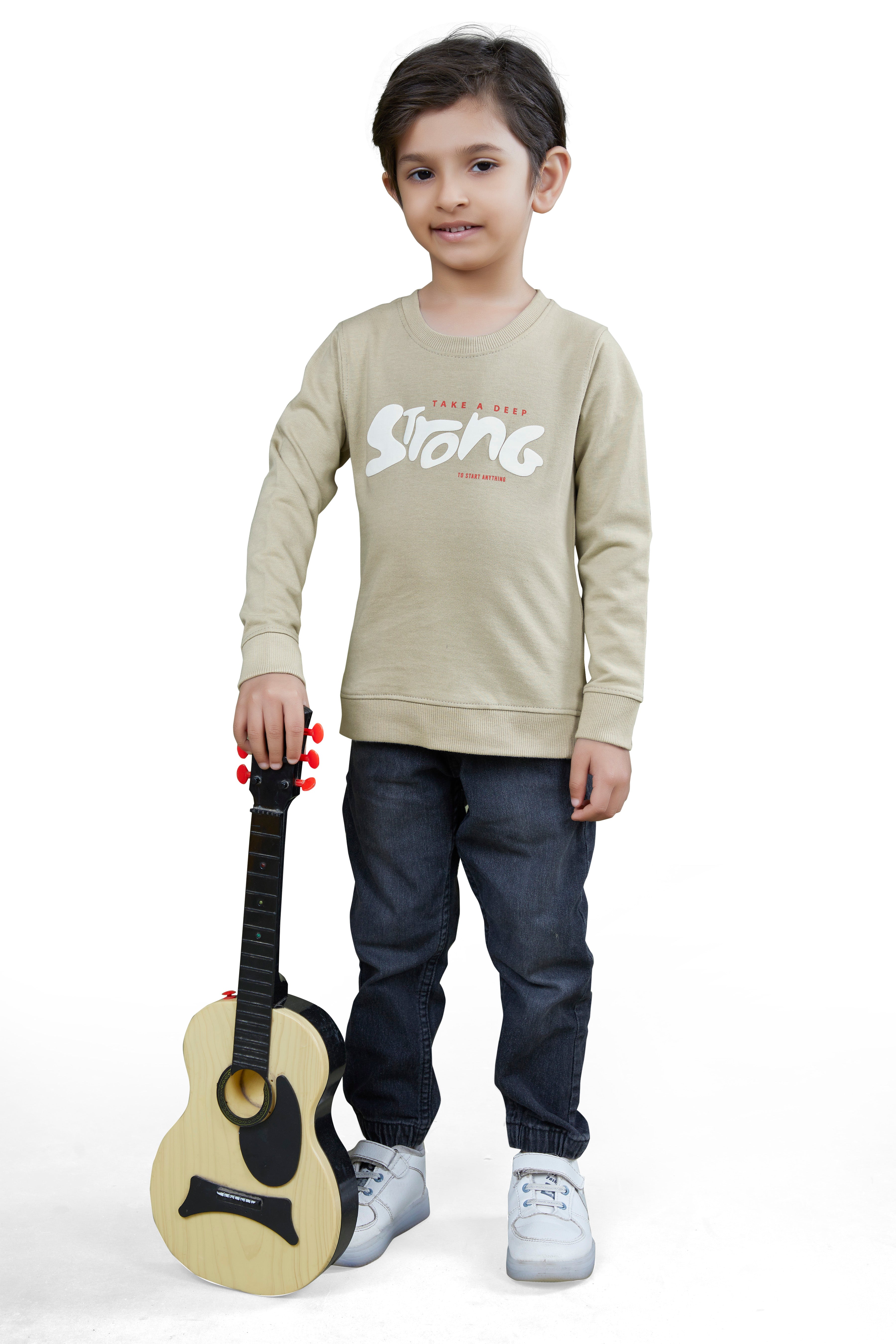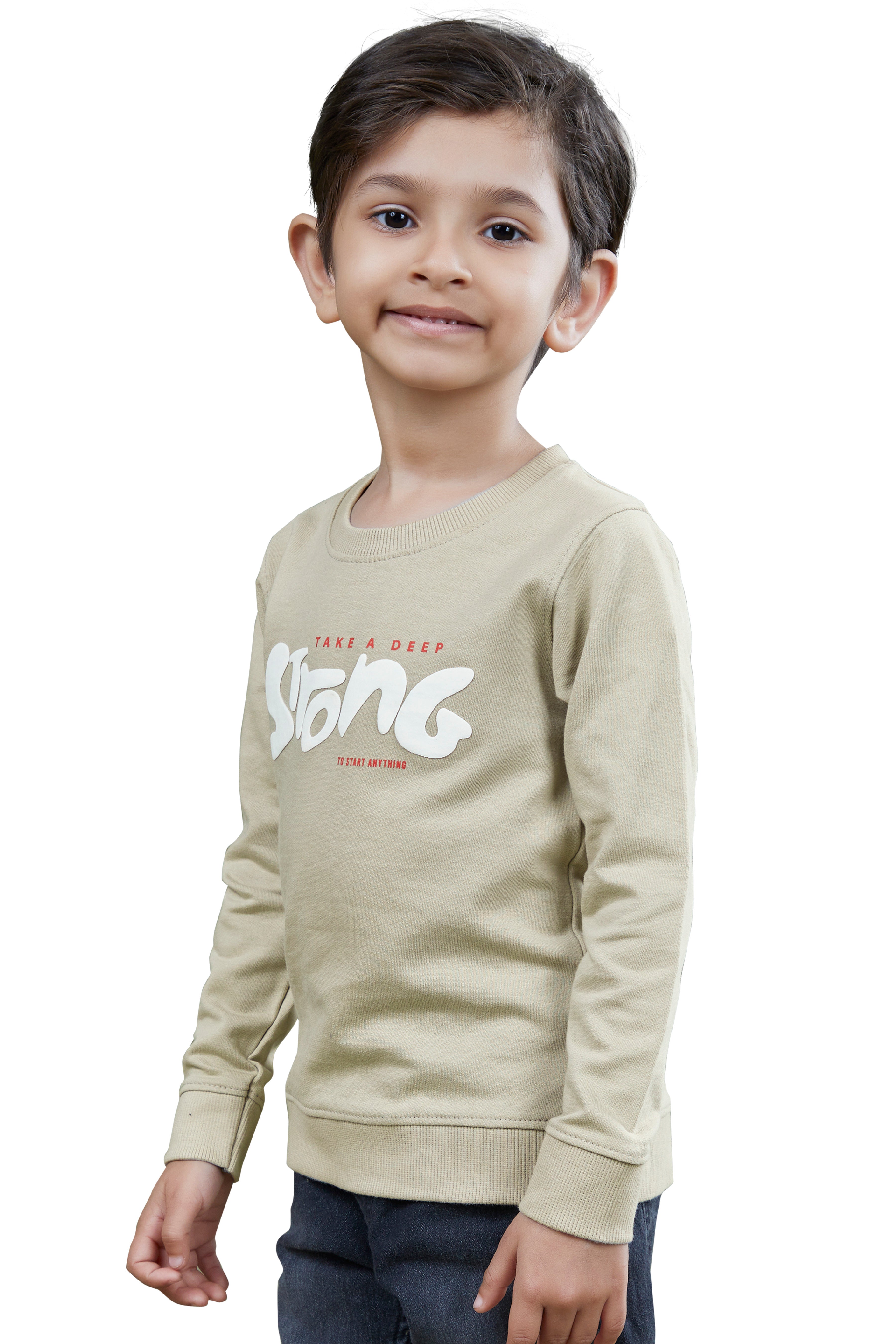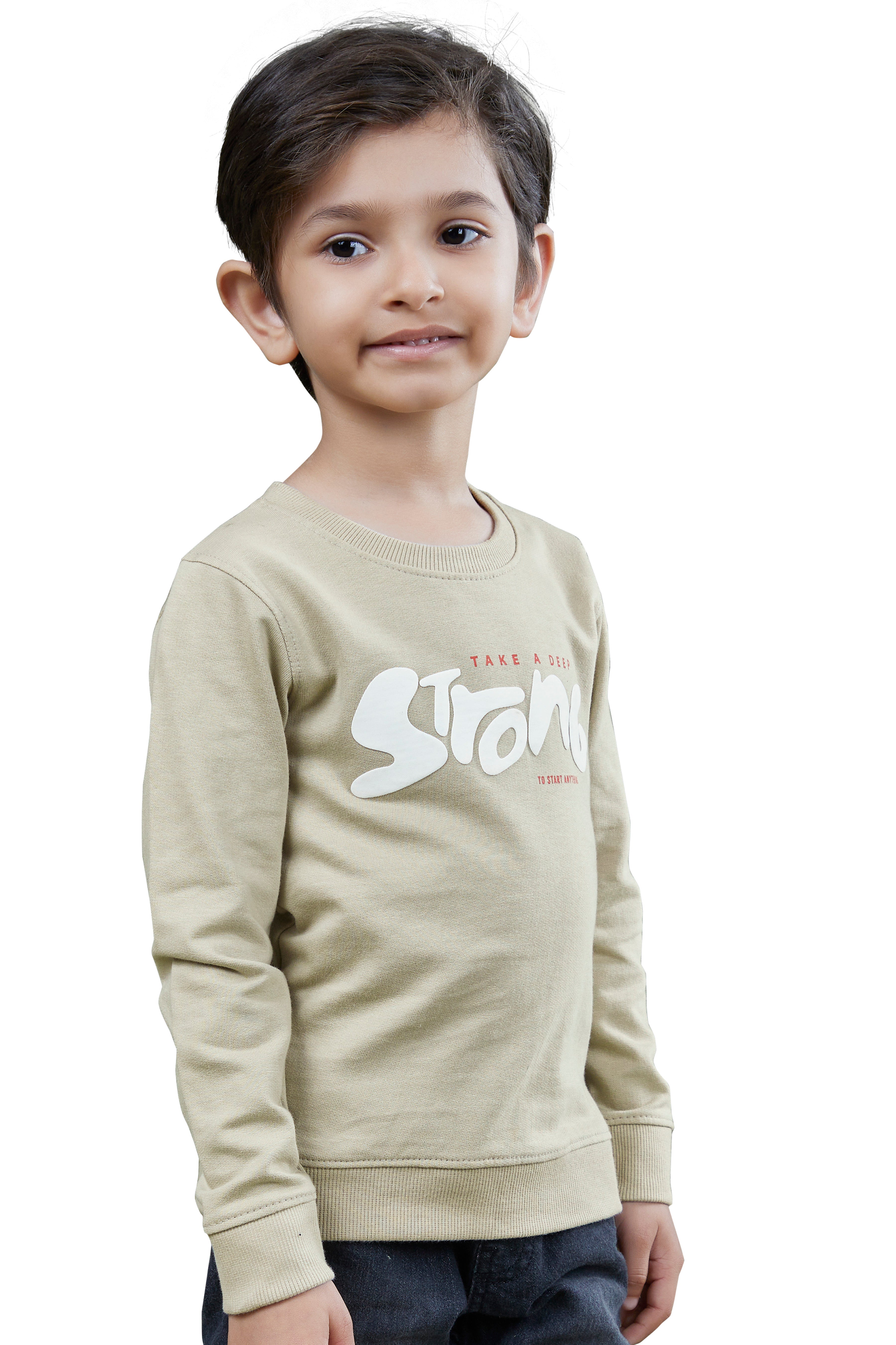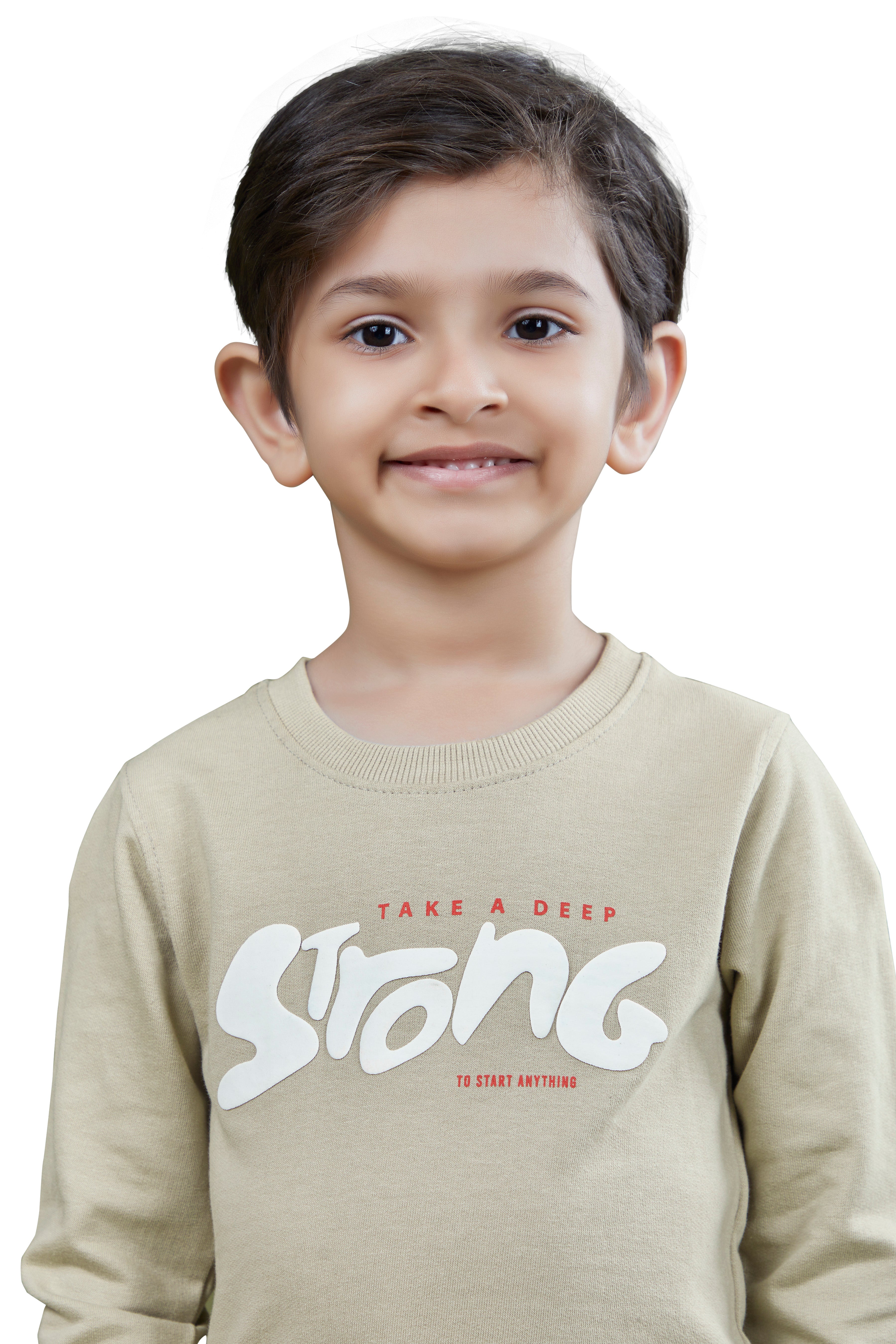 Subtle yet stylish, the Beige Graphic Print Full Sleeves Tee keeps your boy looking cool while staying comfy all day.