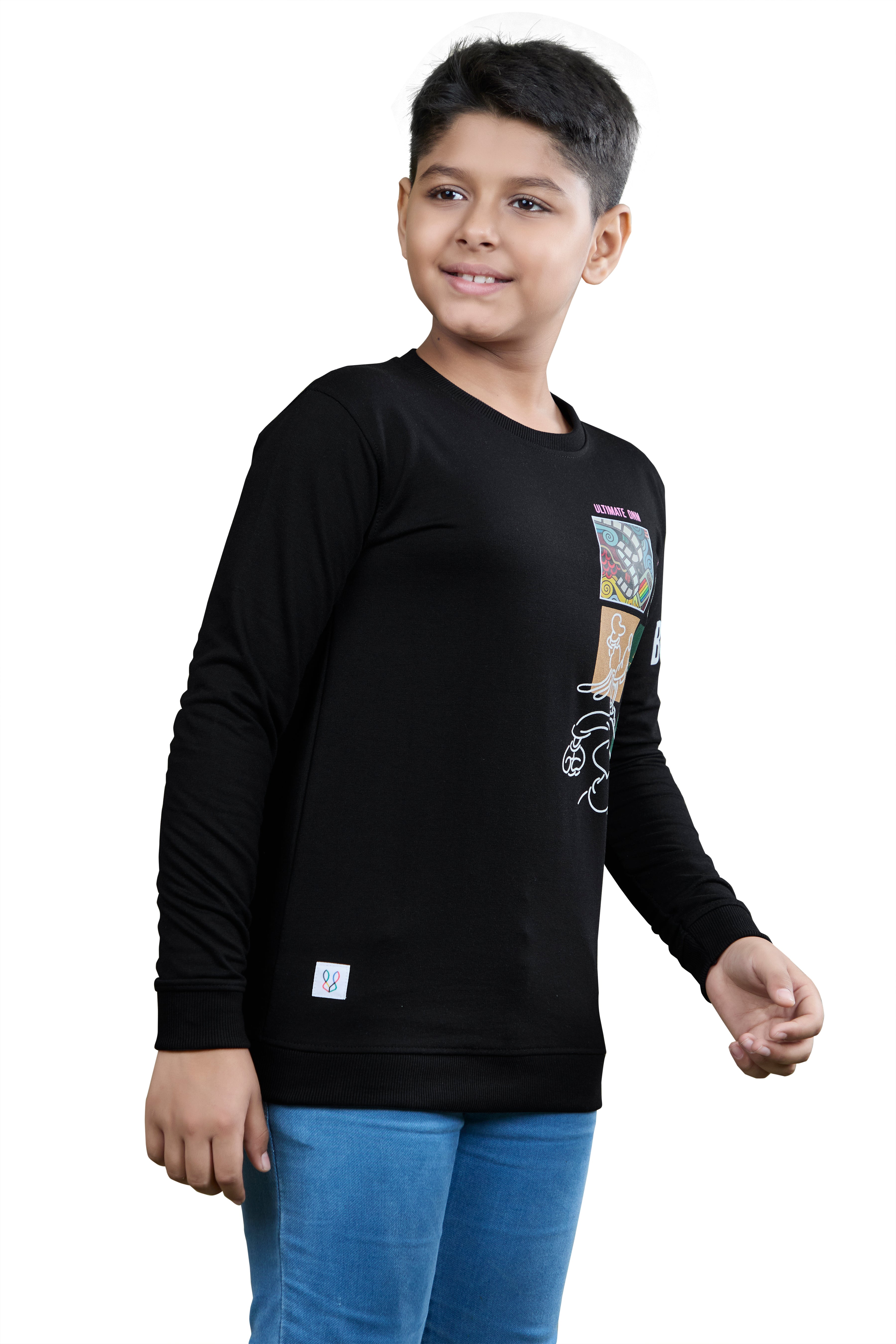 Stand out in style with our Black Abstract Graphic Boys Sweatshirt. Made from soft cotton for all-day comfort, it blends bold abstract prints with a classic fit—perfect for everyday wear and playful adventures.