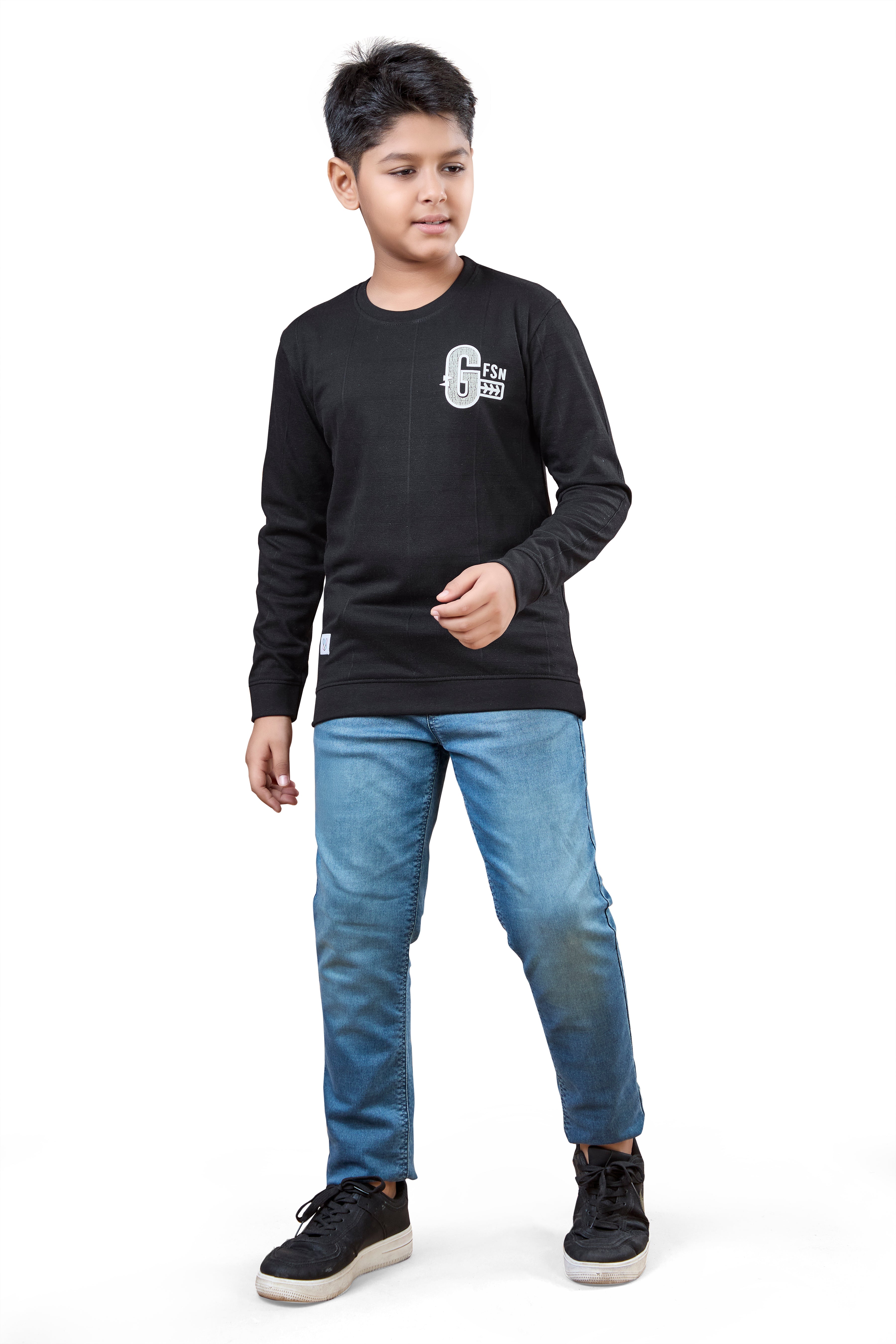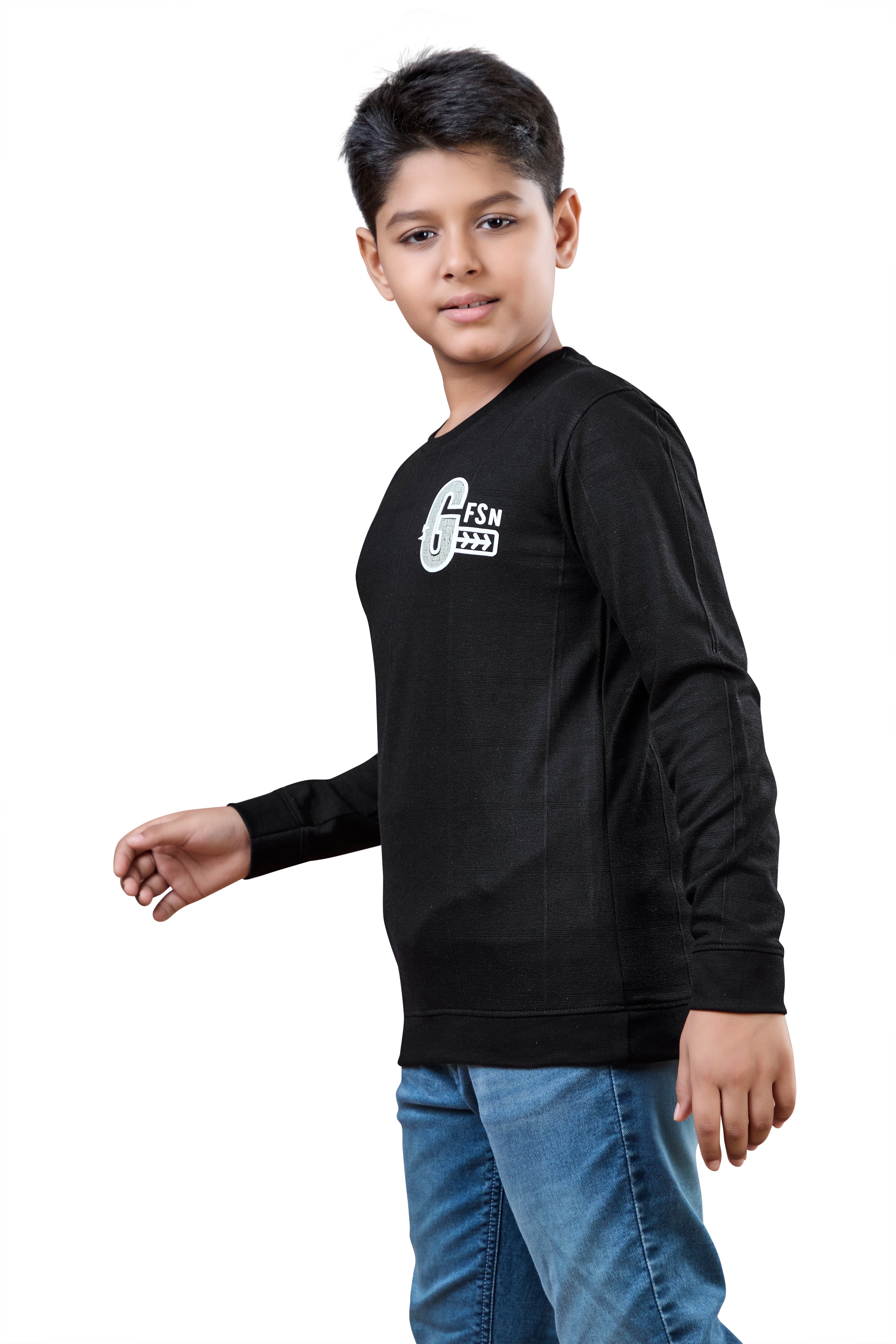 Black Minimal Graphic Boys Full Sleeves T-Shirt
