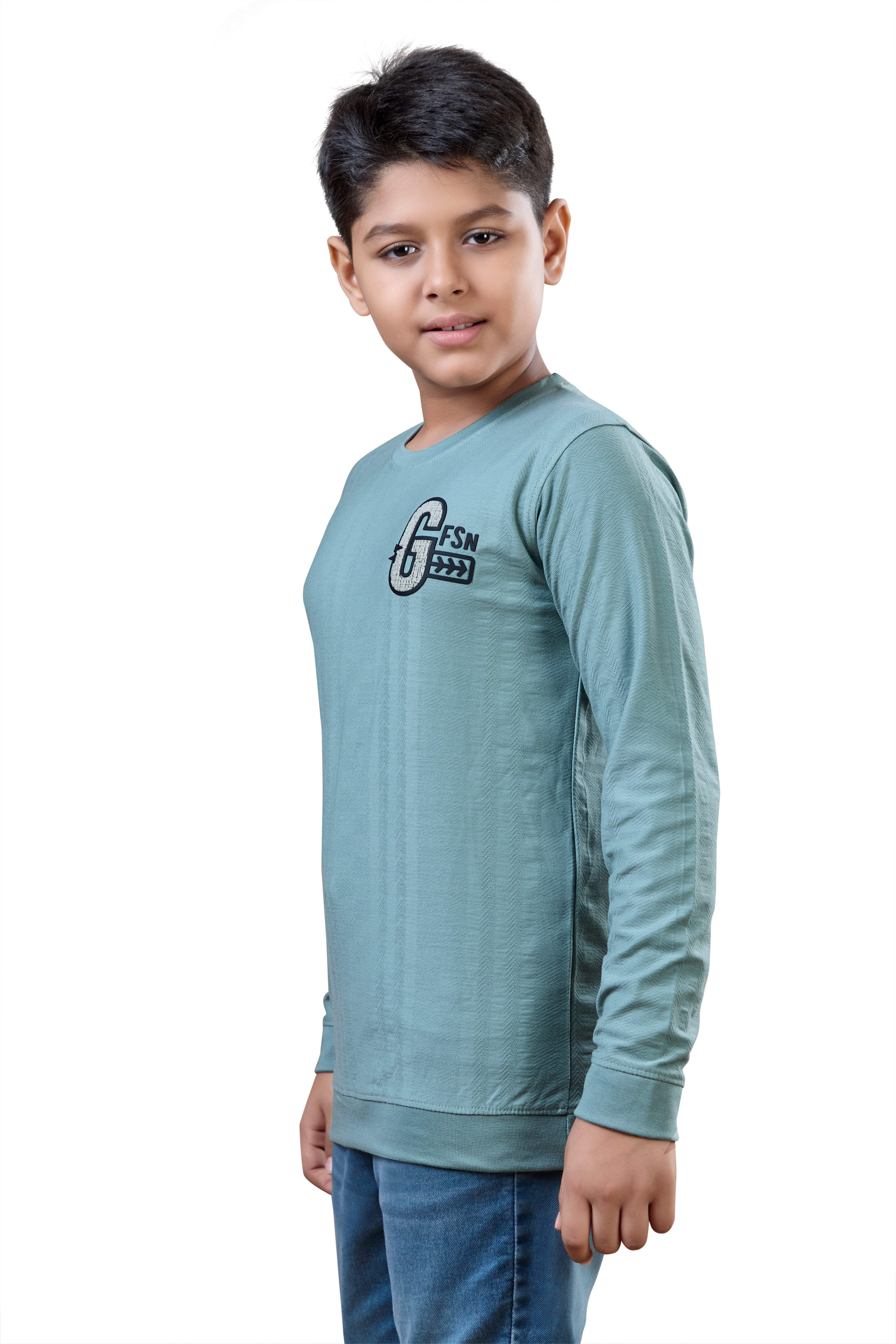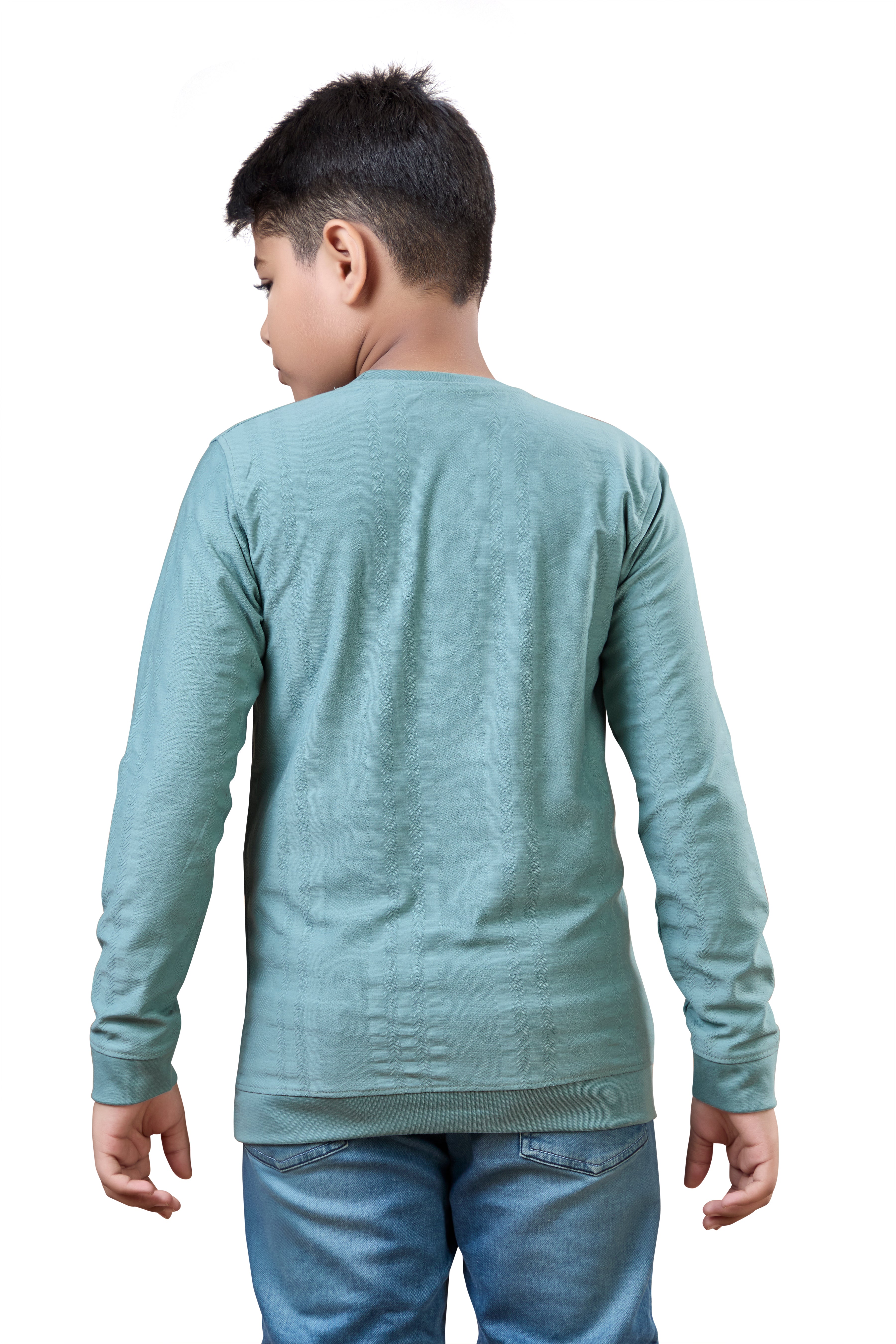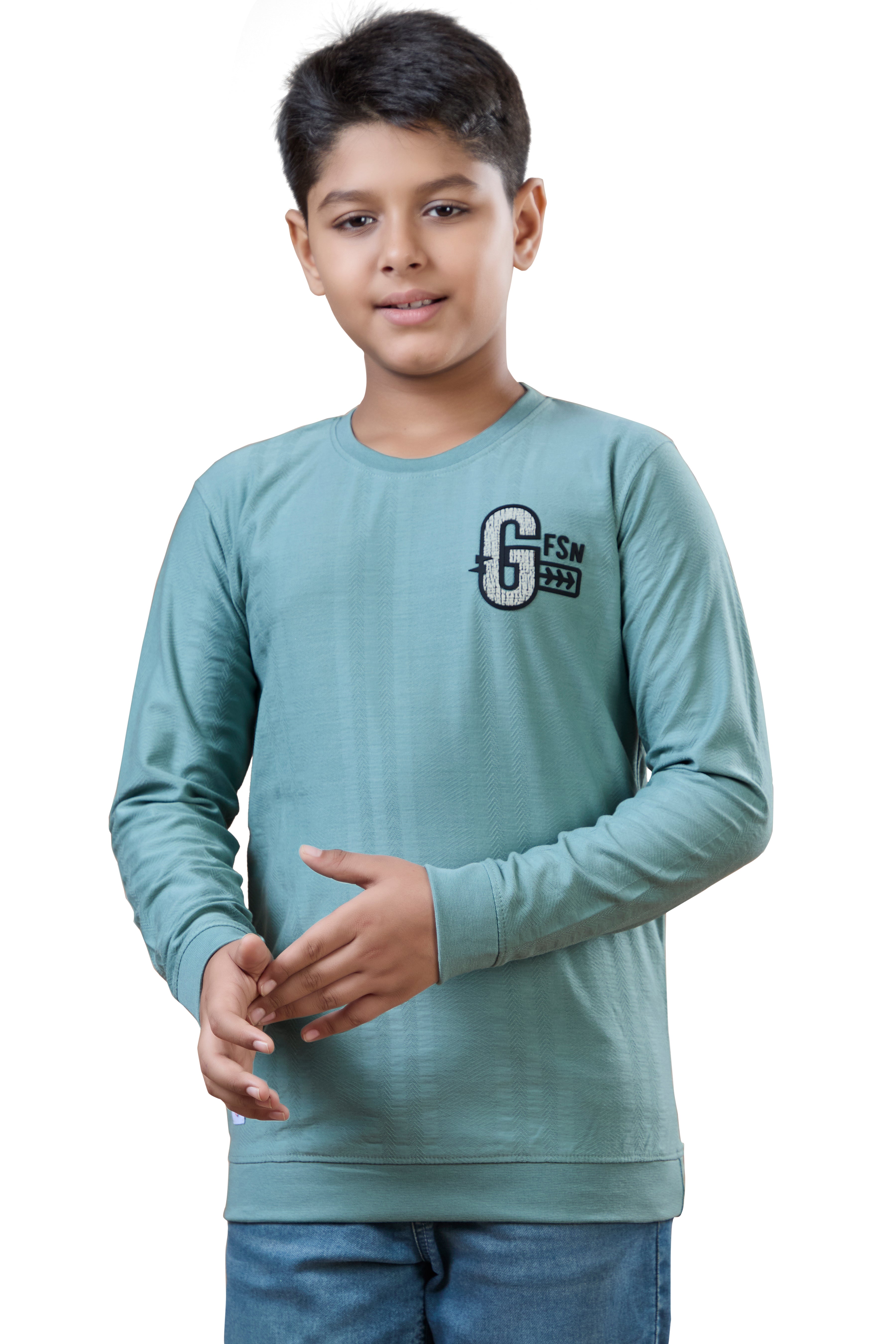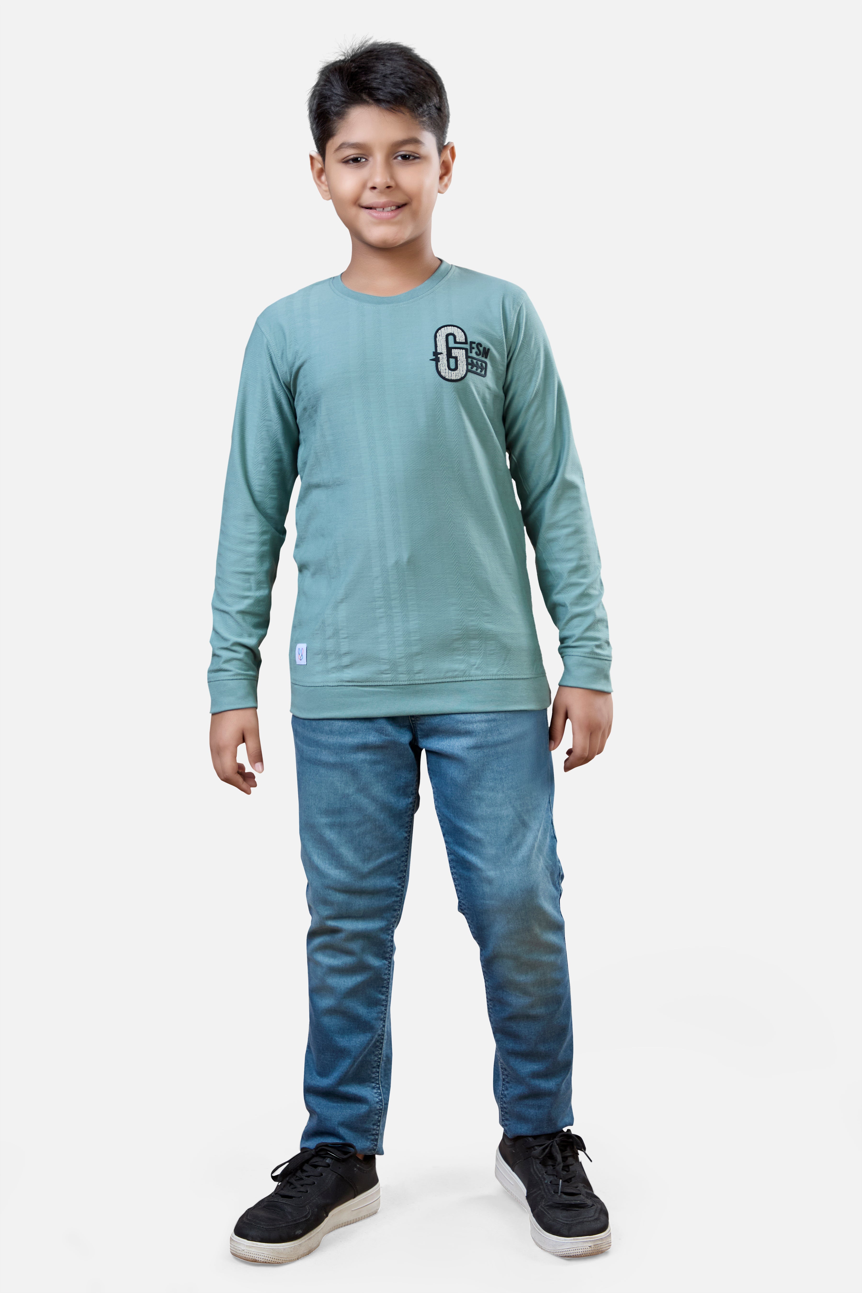 Sea Green Minimal Graphic Boys Full Sleeves T-Shirt