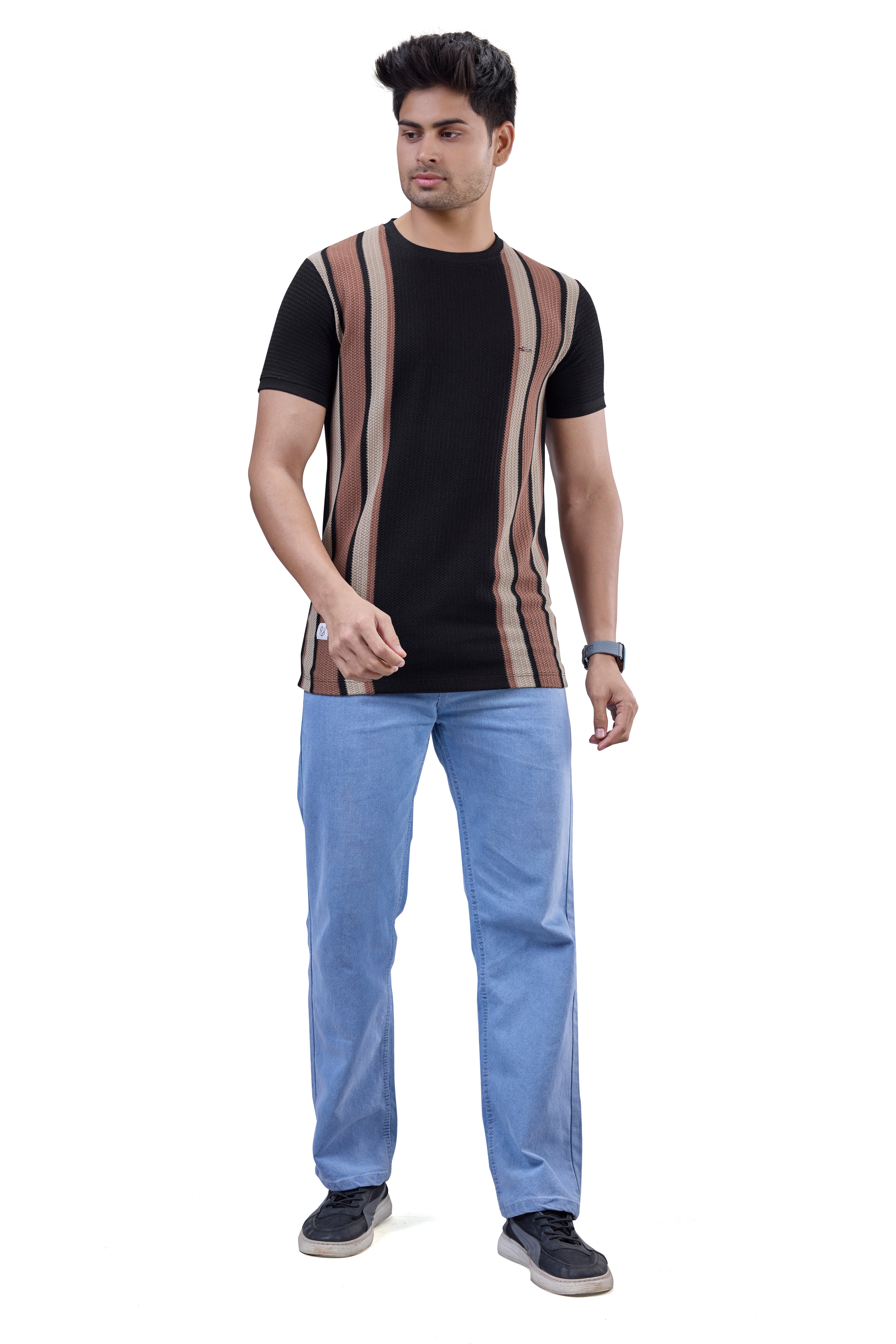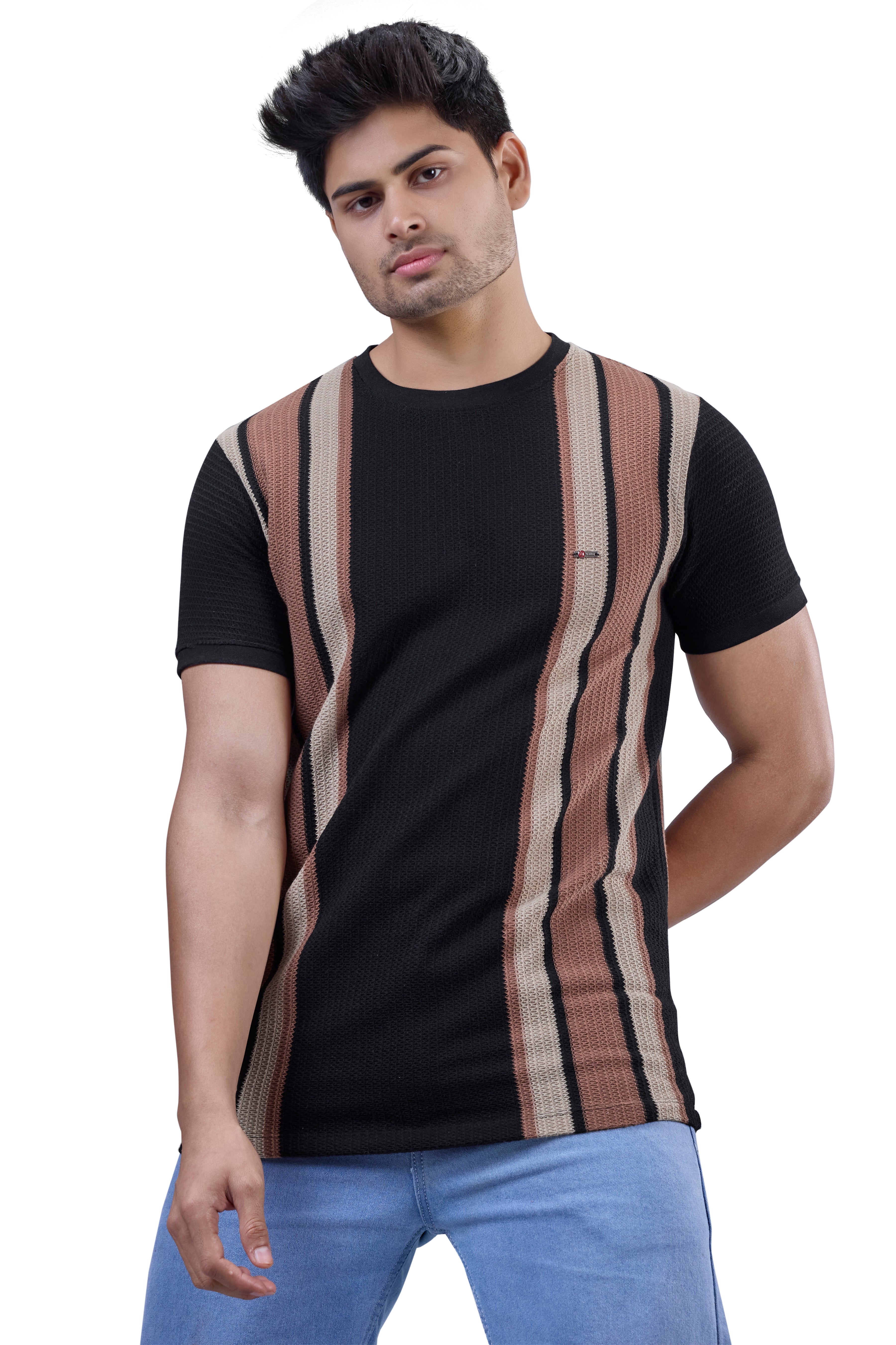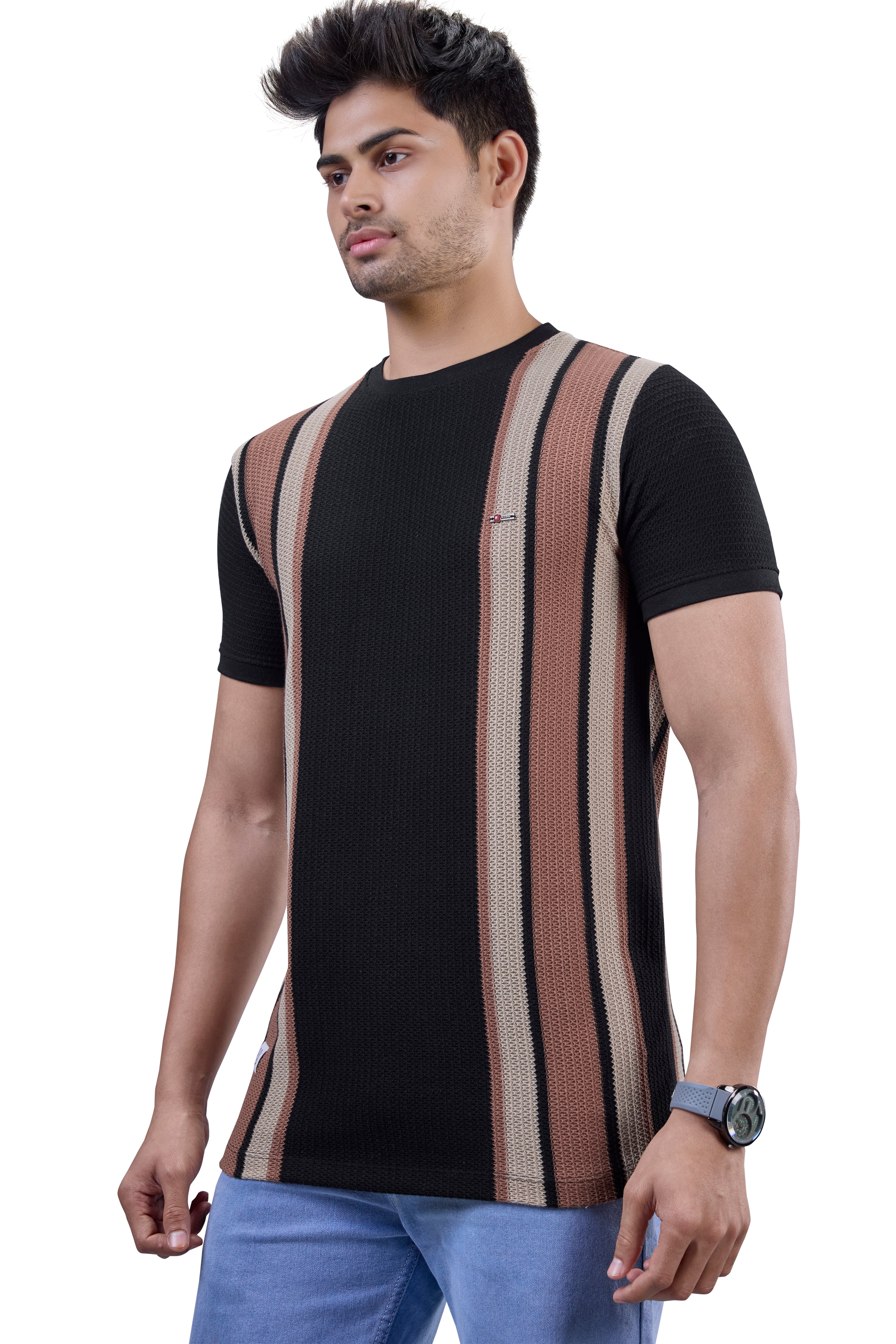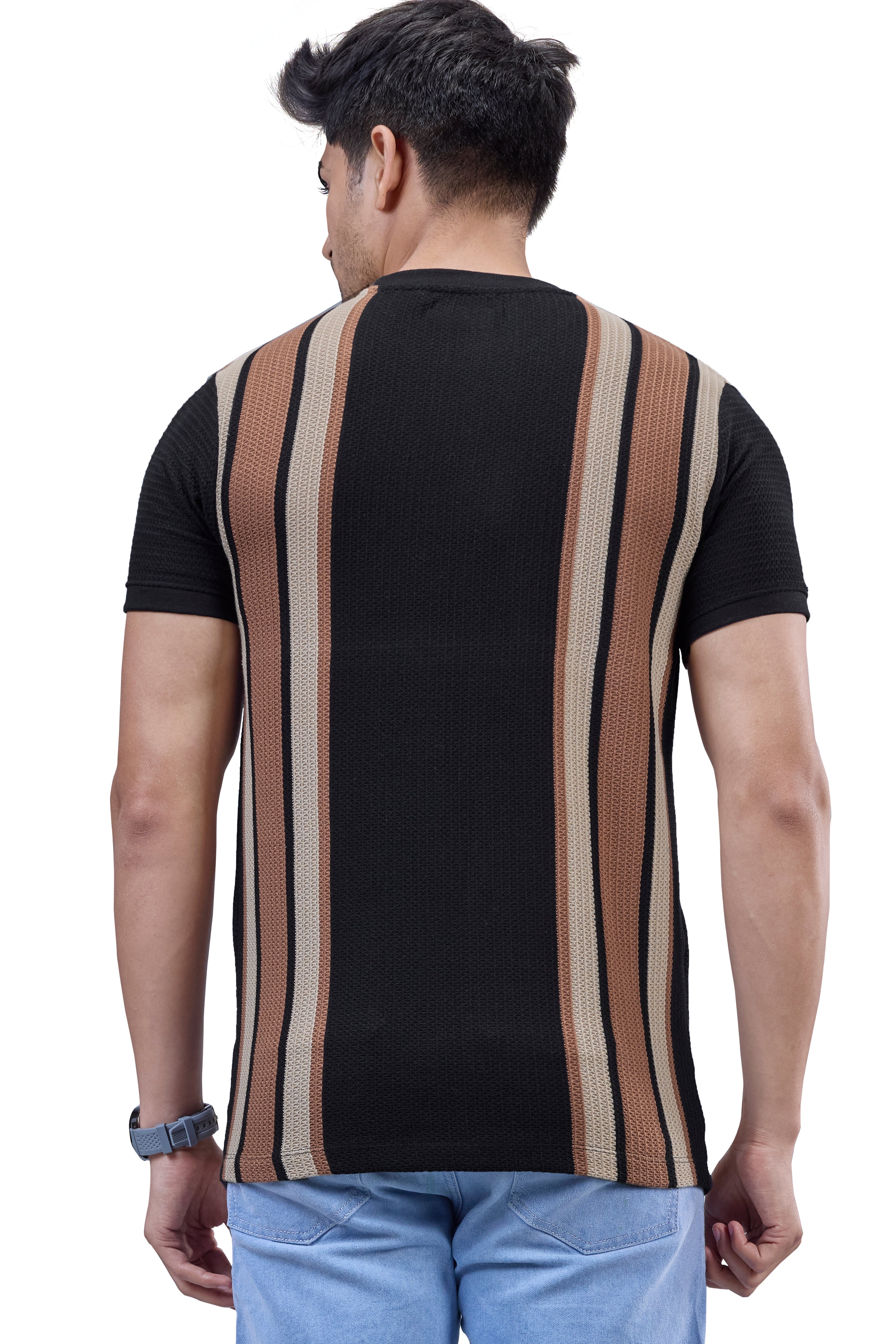 Earthy yet bold, this Black & Brown Striped Textured Crew Tee is designed for effortless, everyday style.