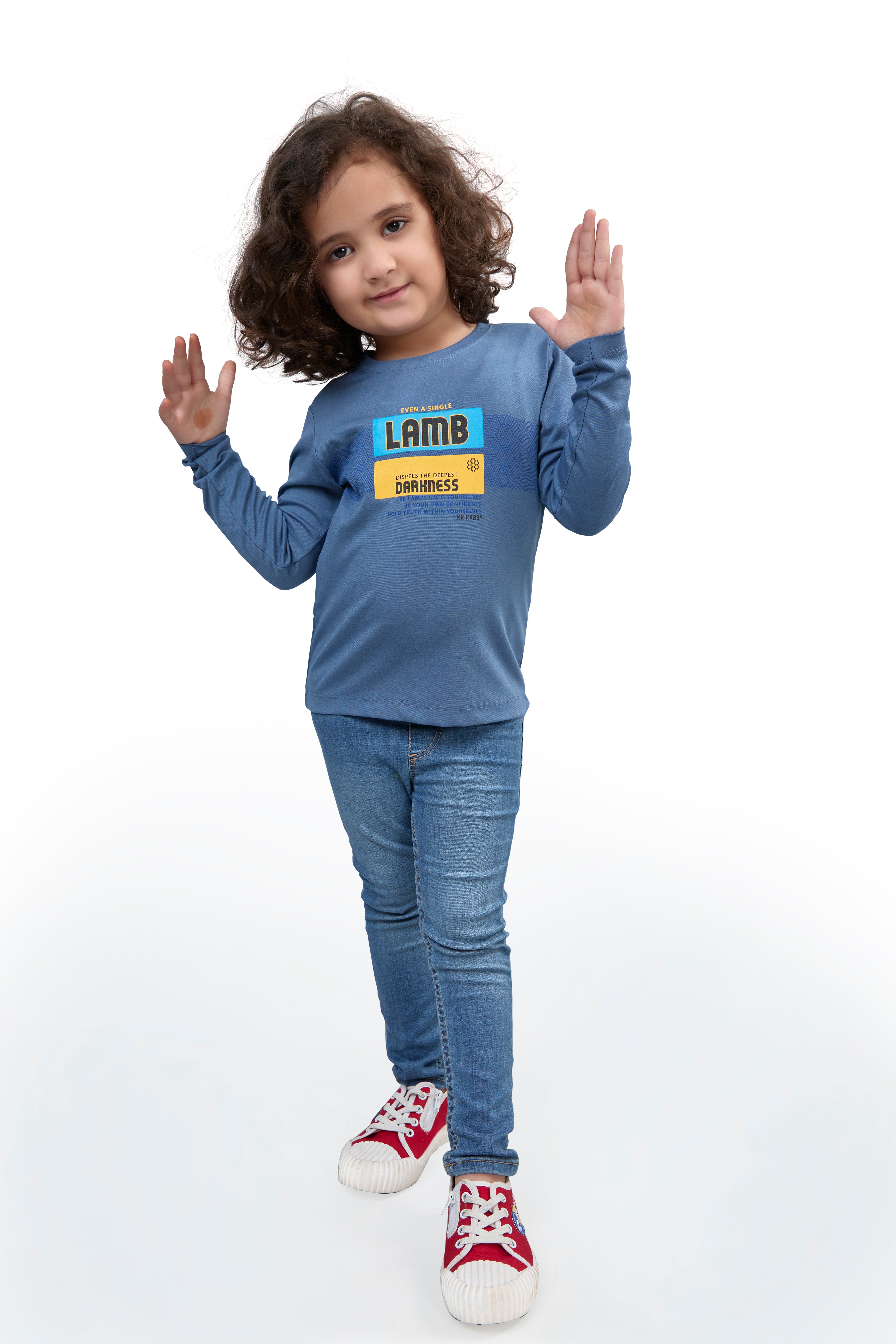 Ocean Blue Lamb & Darkness Graphic Girls’ Full Sleeves T-Shirt