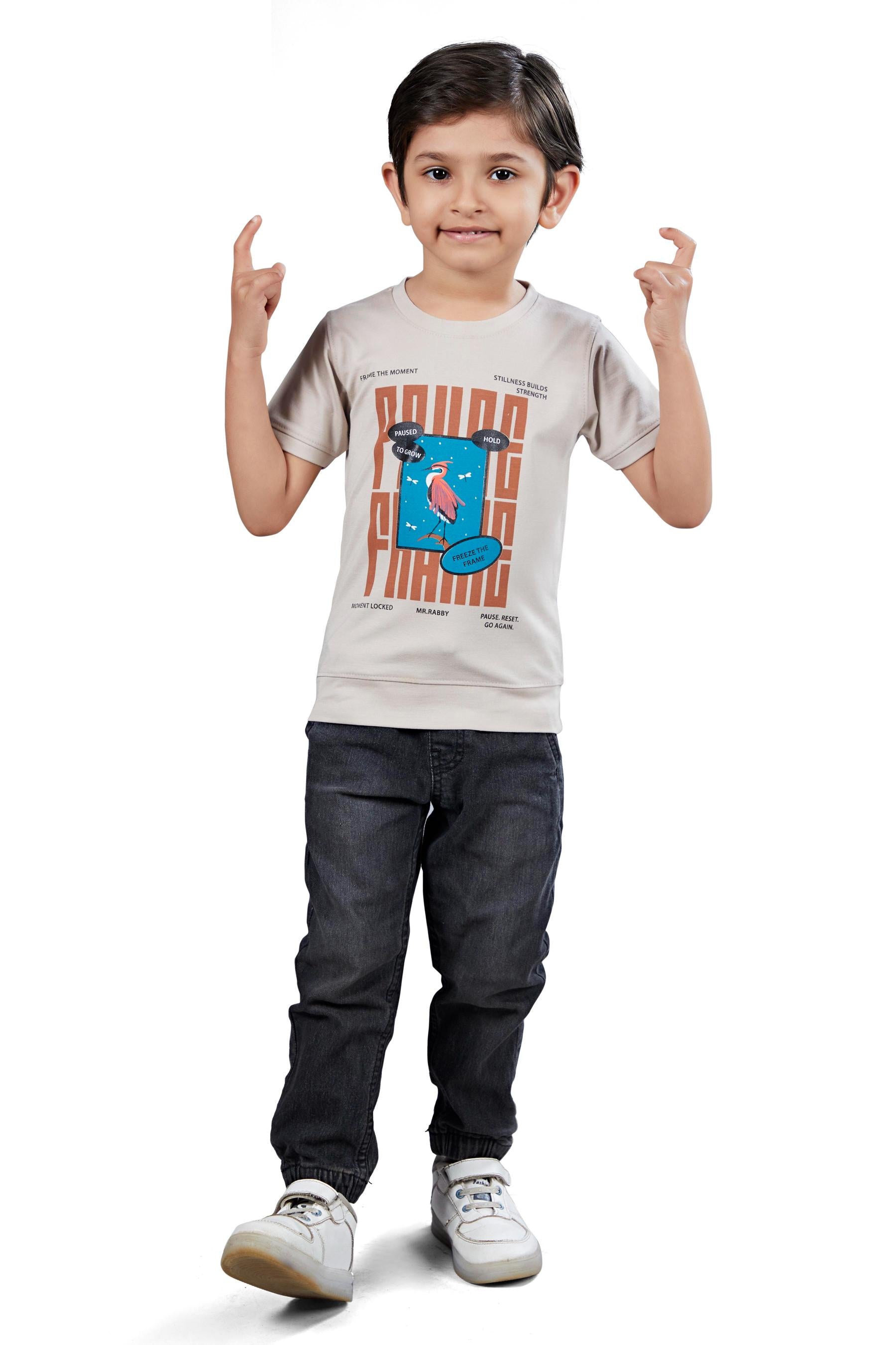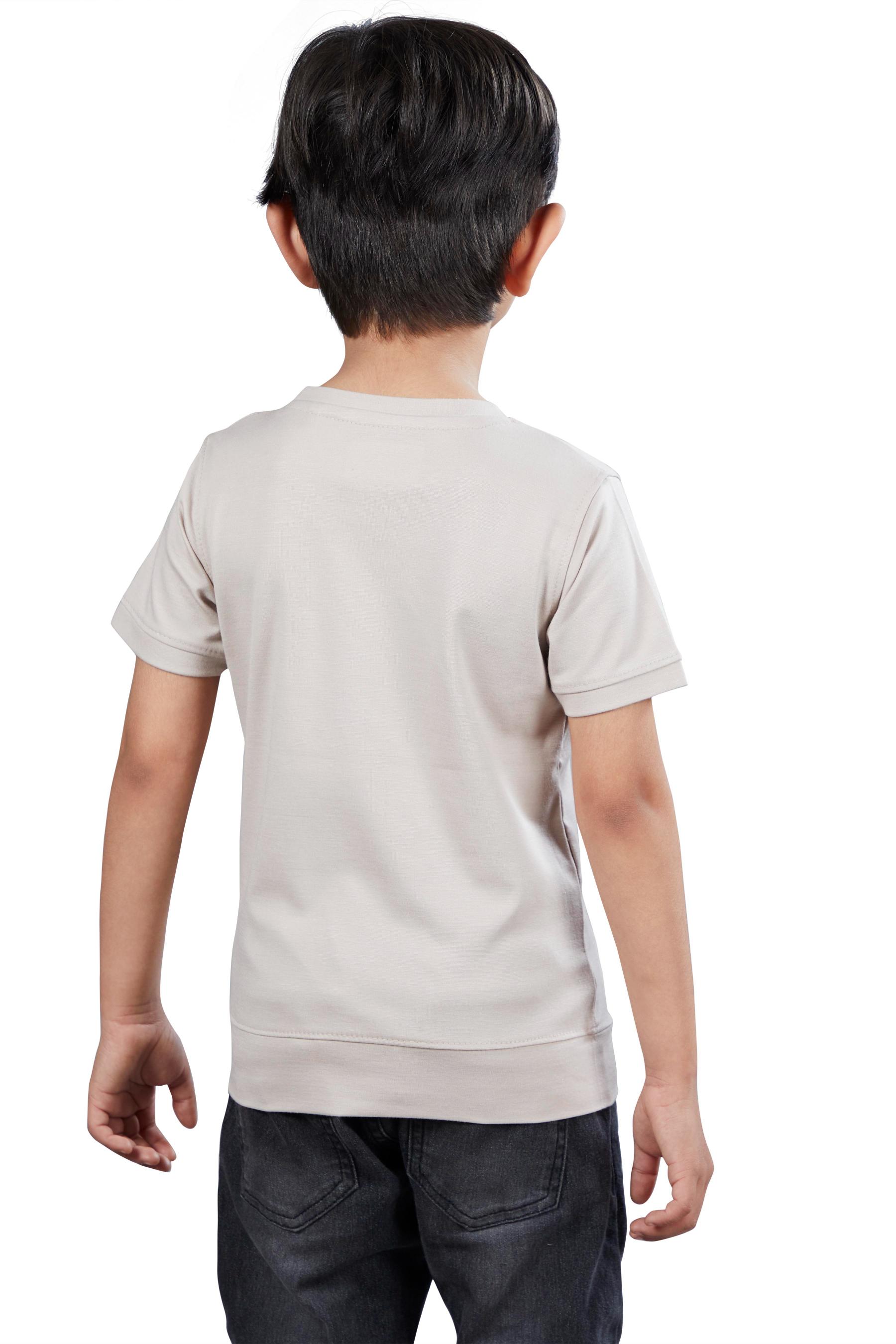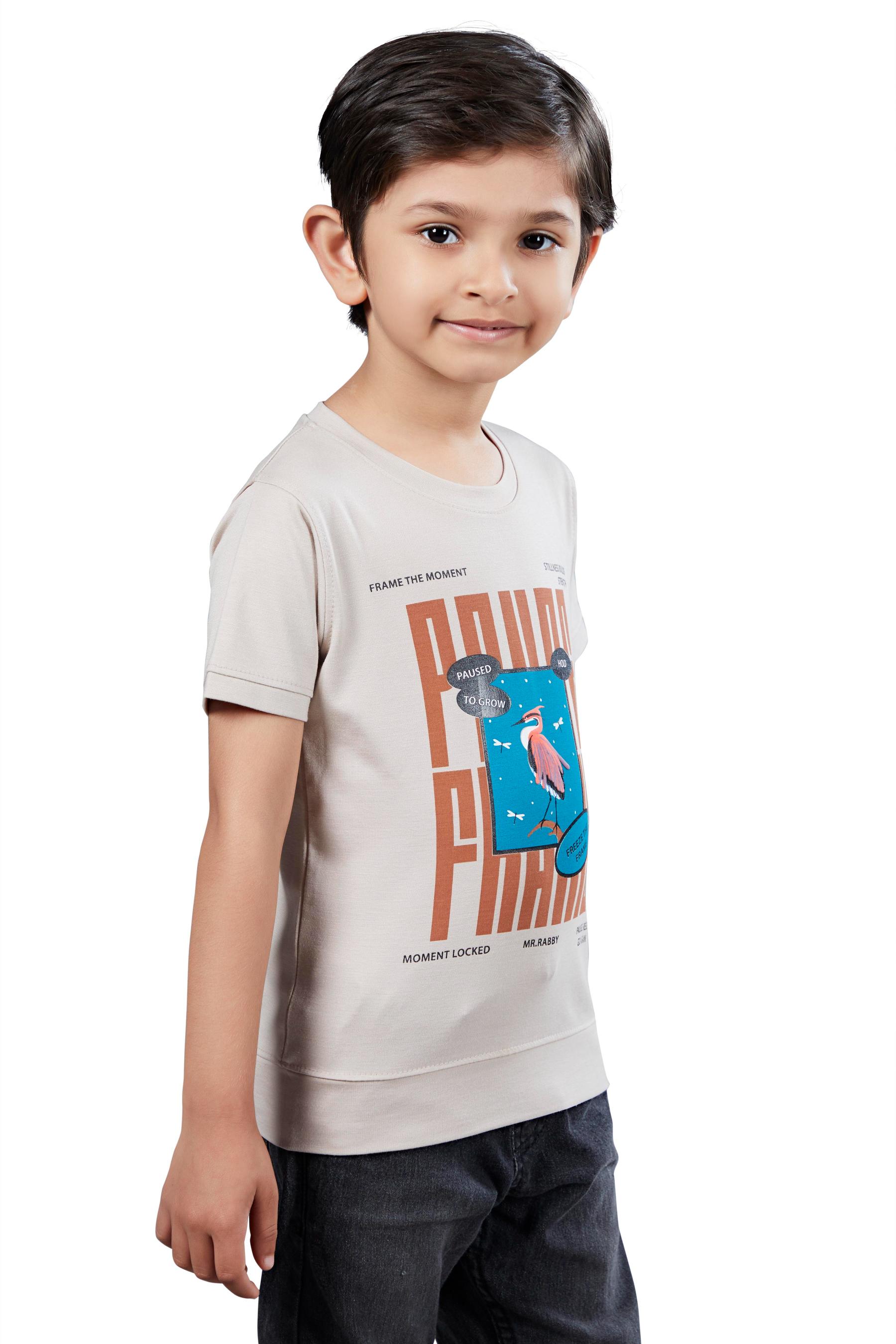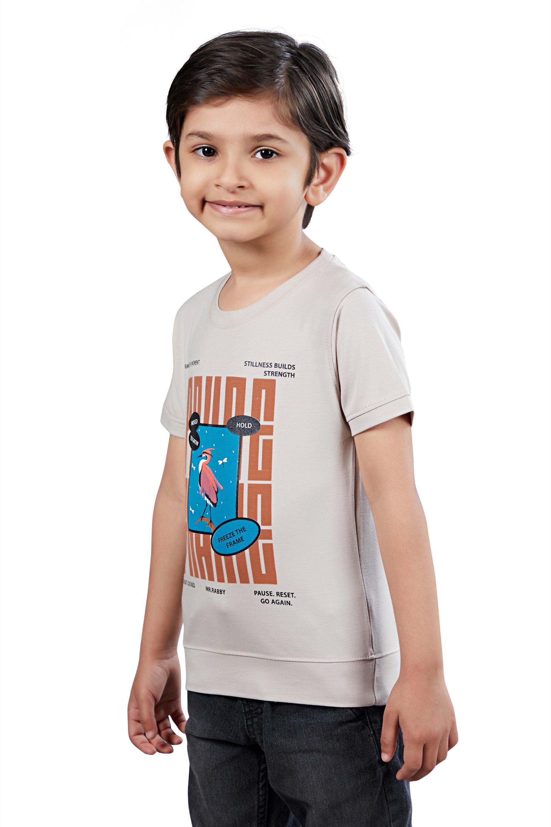 Boys Beige Graphic Printed Half Sleeves T-Shirt