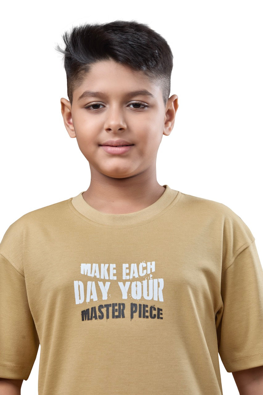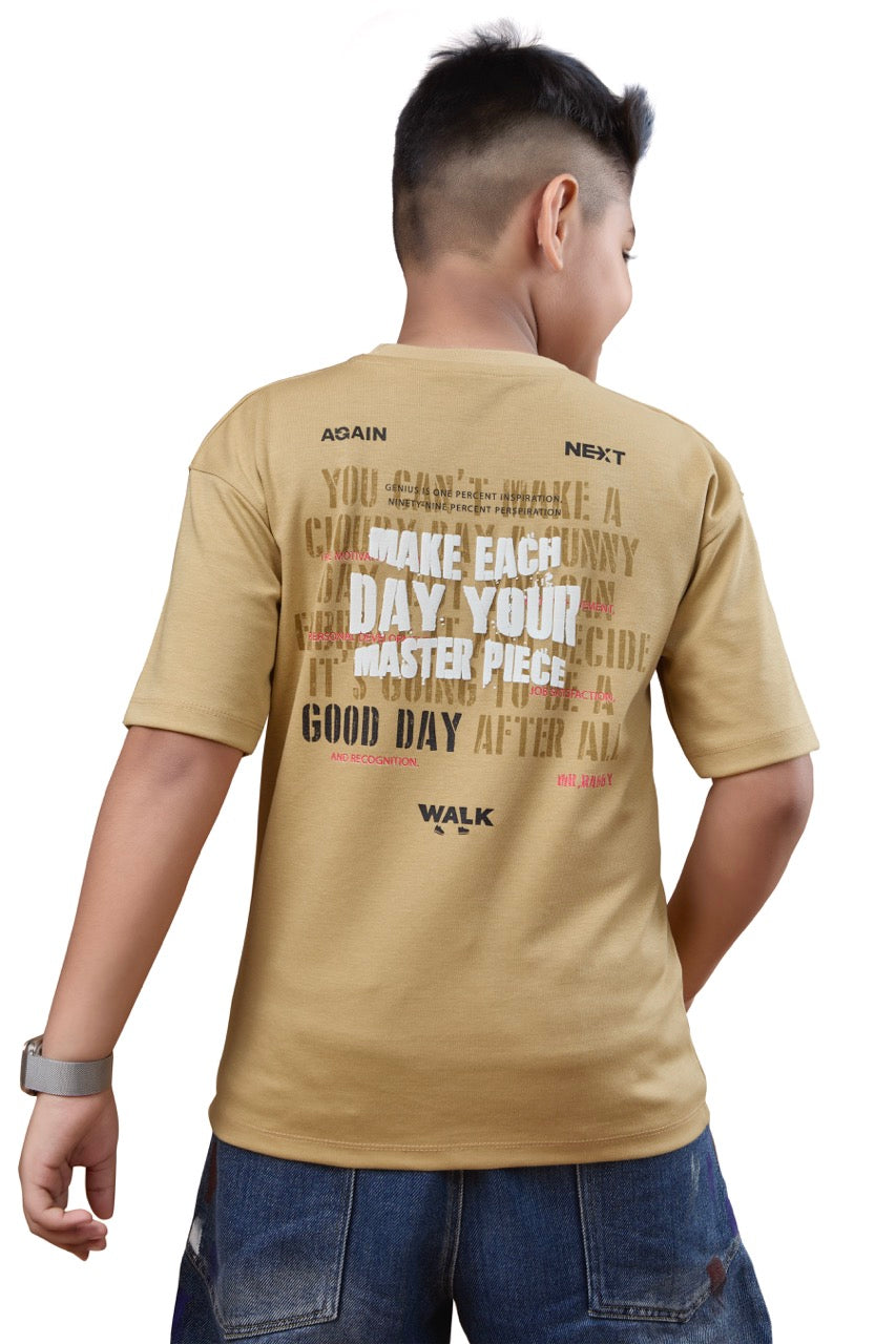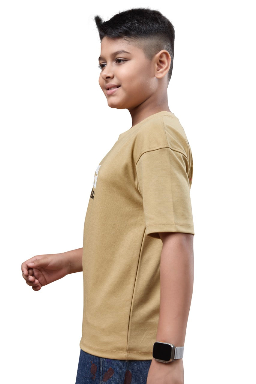 Boys Beige Half Sleeves Oversized Tshirt