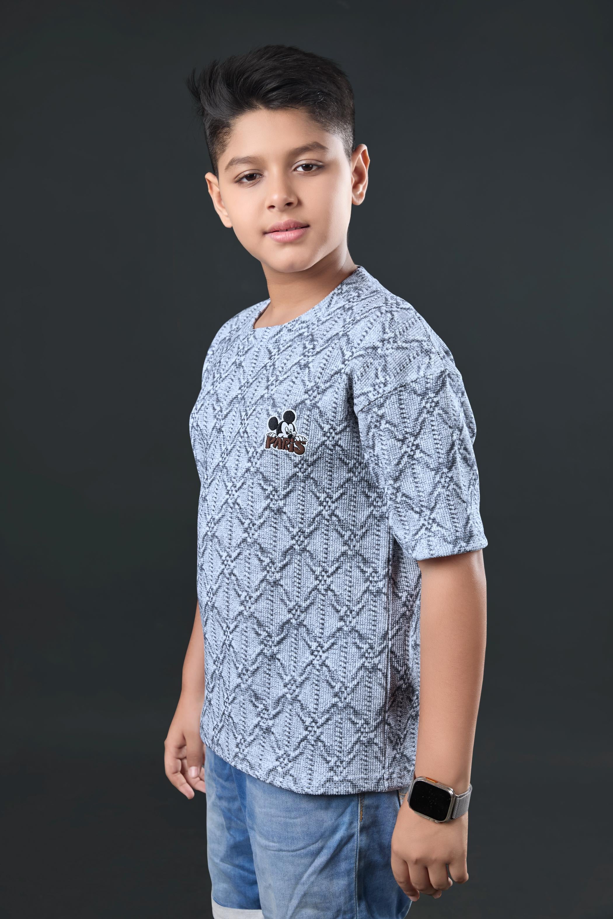 Boys Blue Textured Half Sleeves T-Shirt