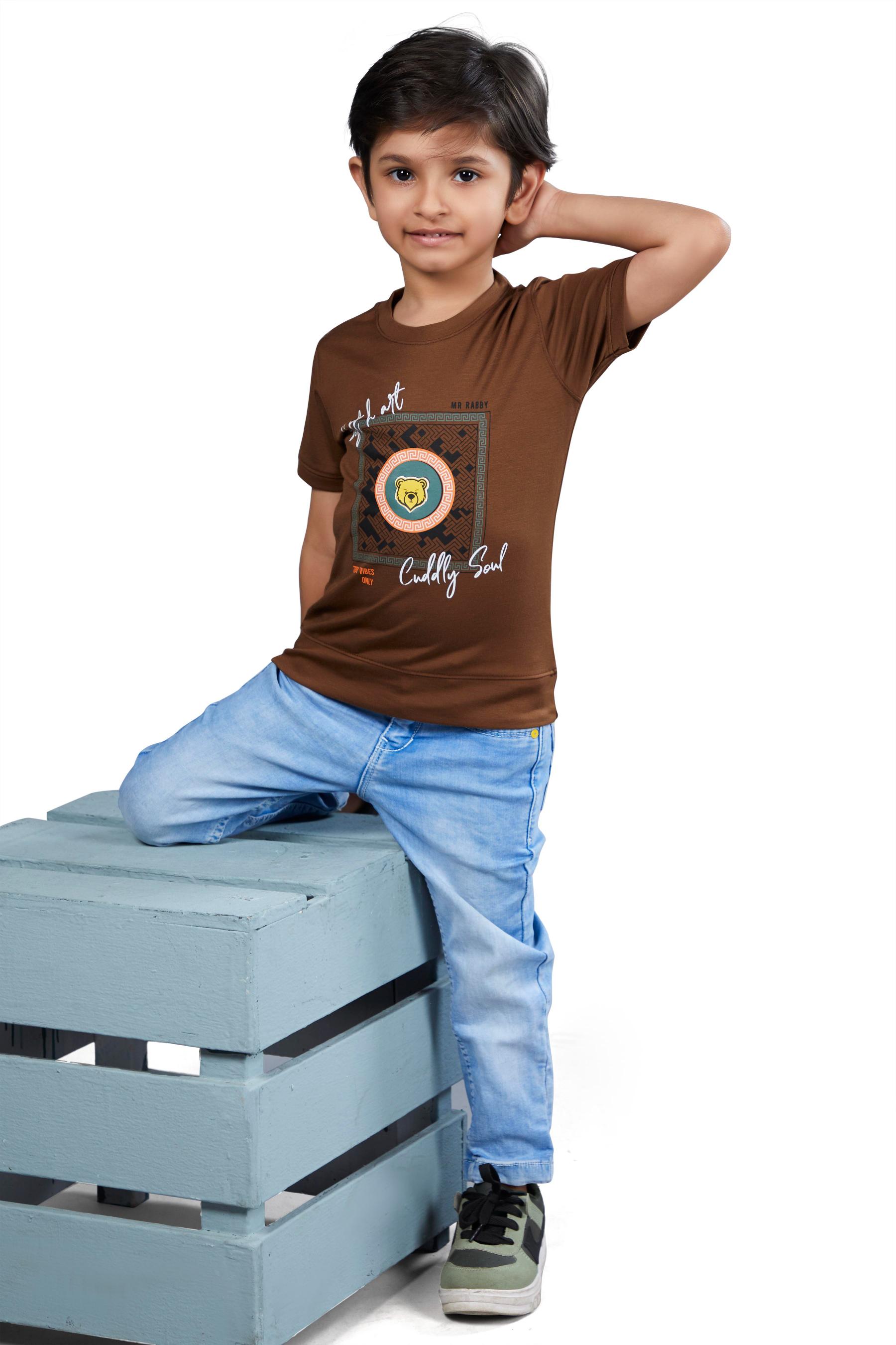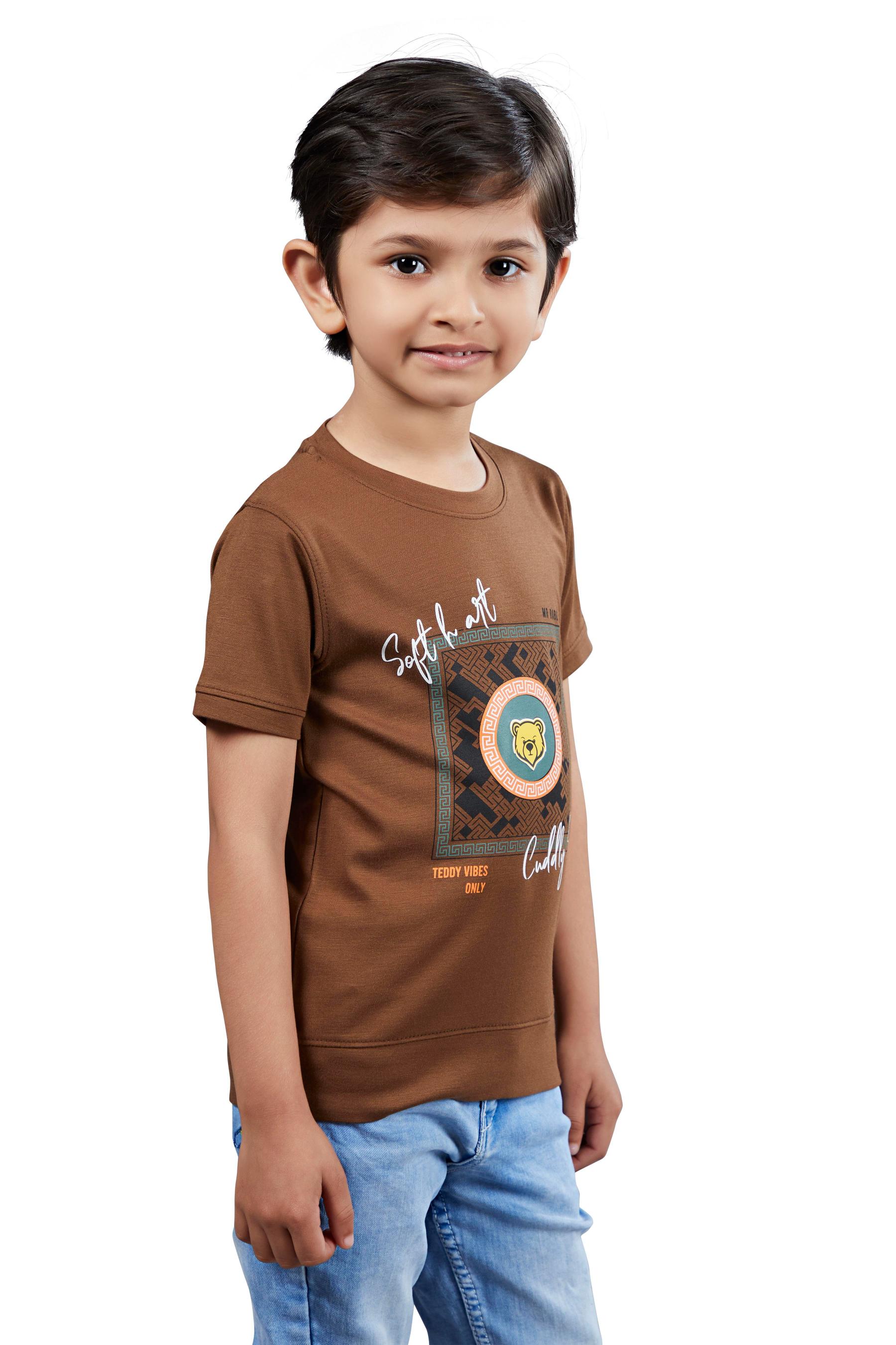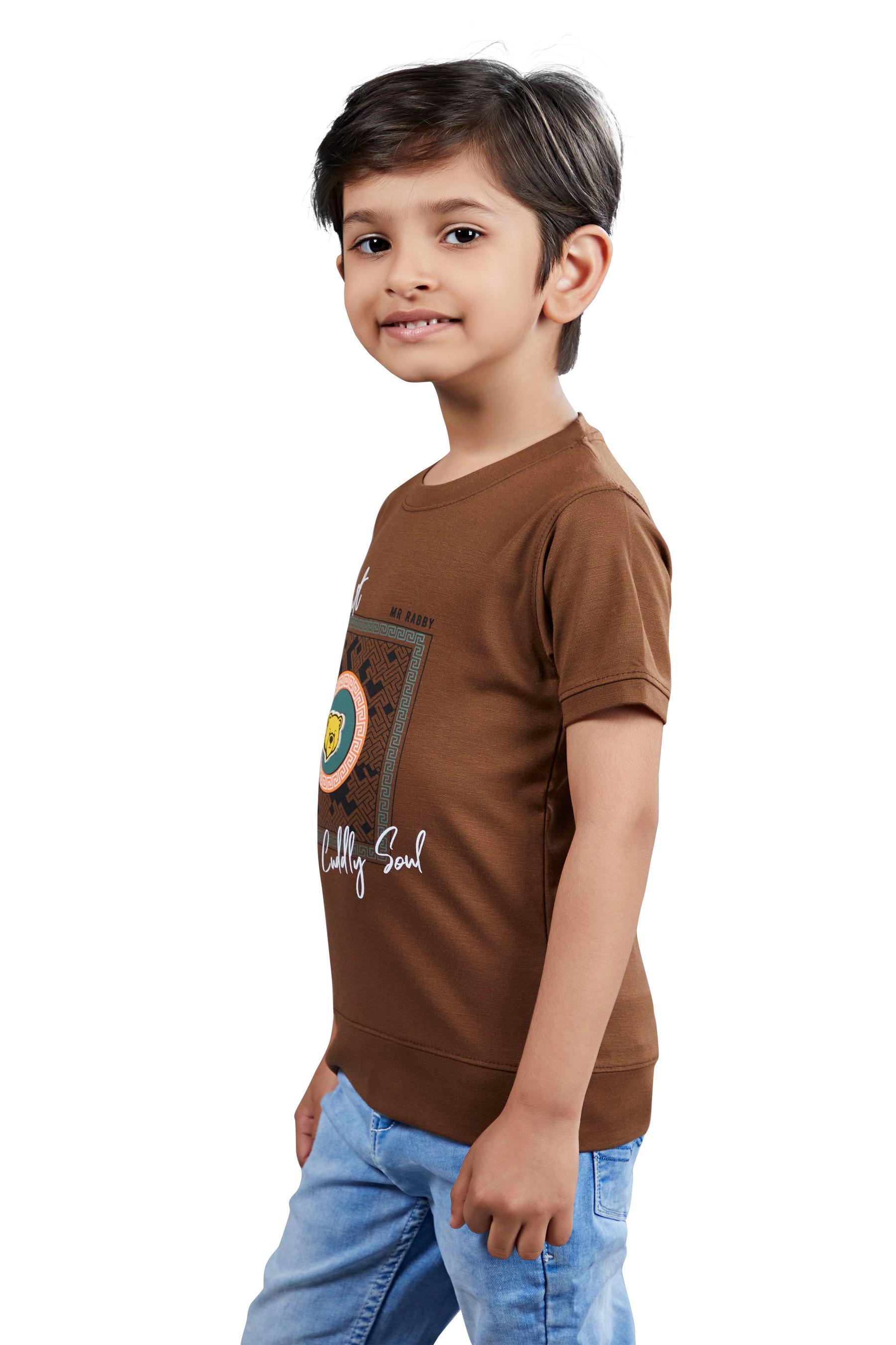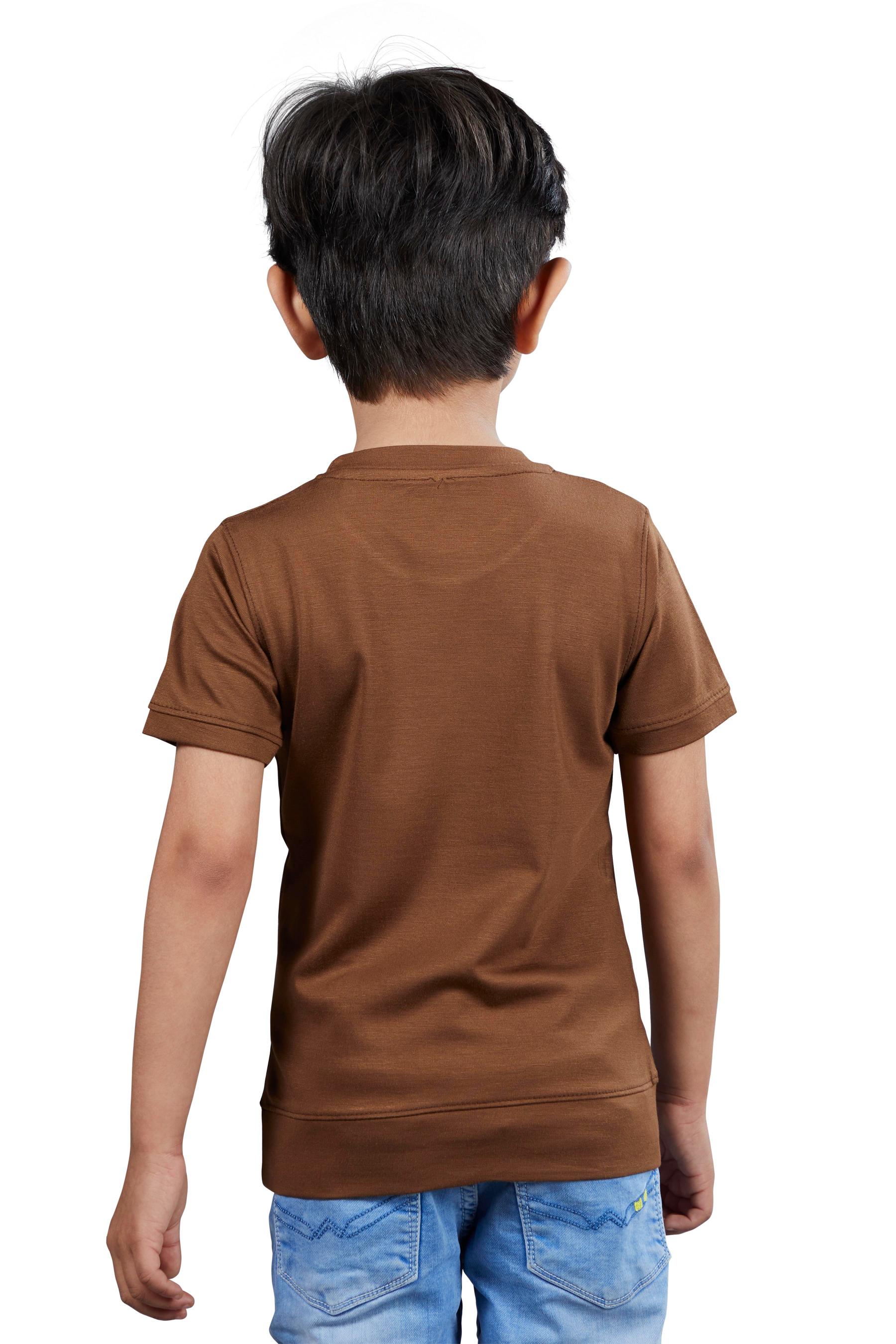 Boys Brown Graphic Printed Half Sleeves T-Shirt