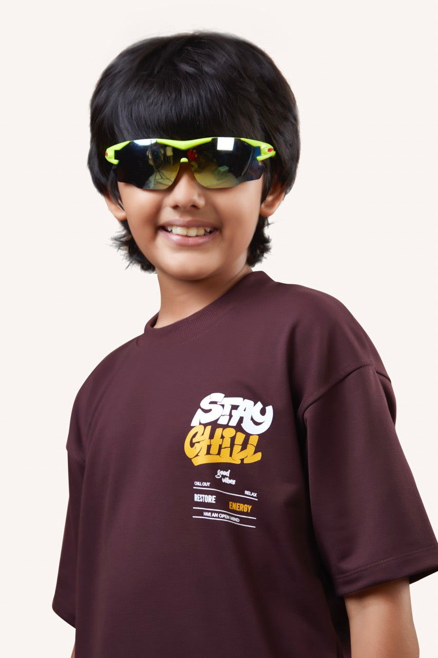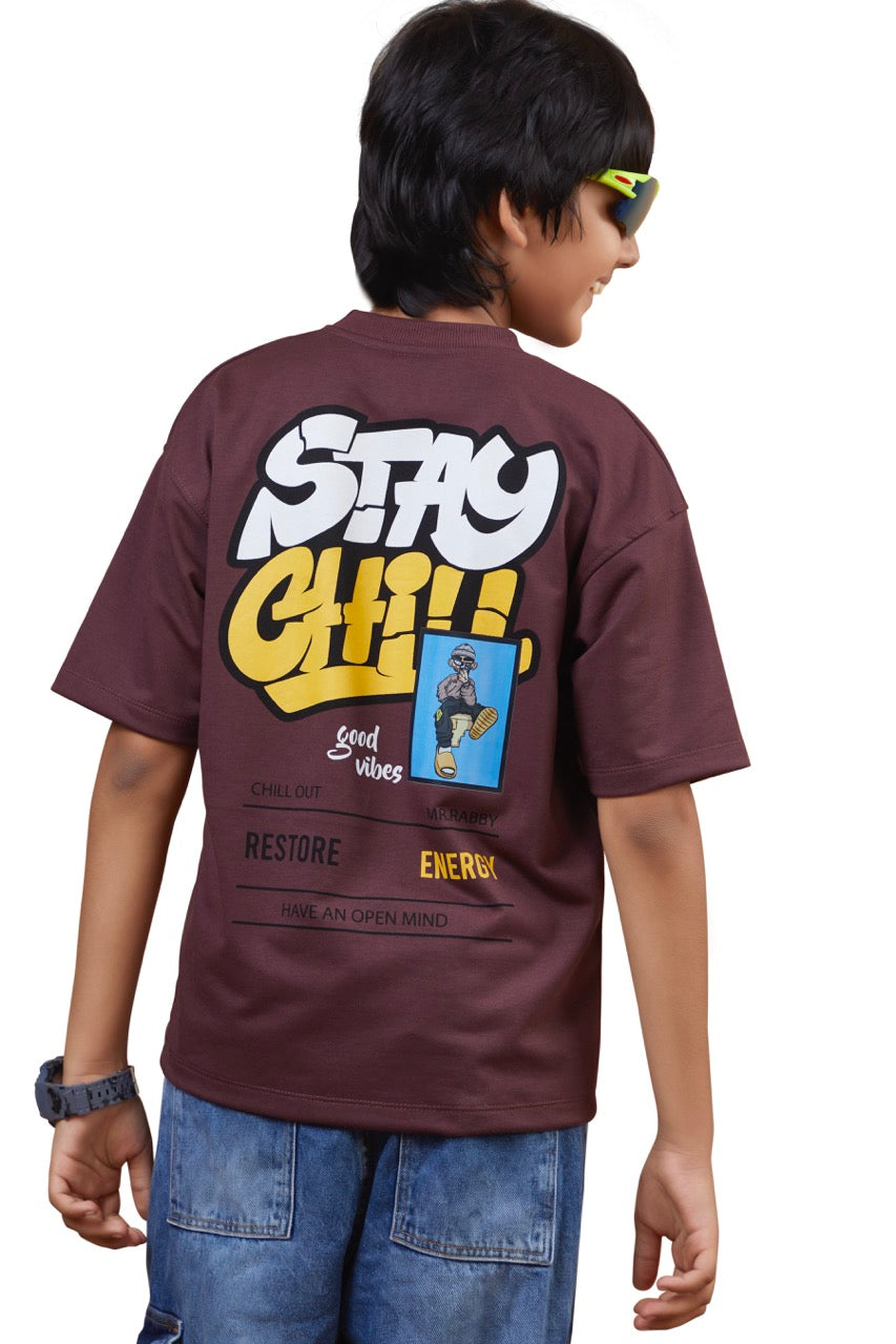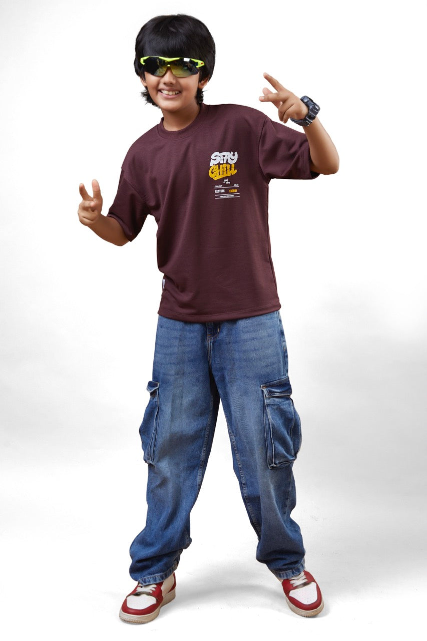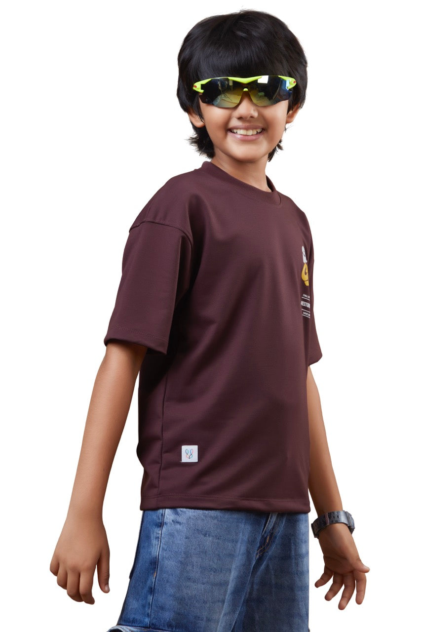 Boys Maroon Half Sleeves Drop-Shoulder Tshirt