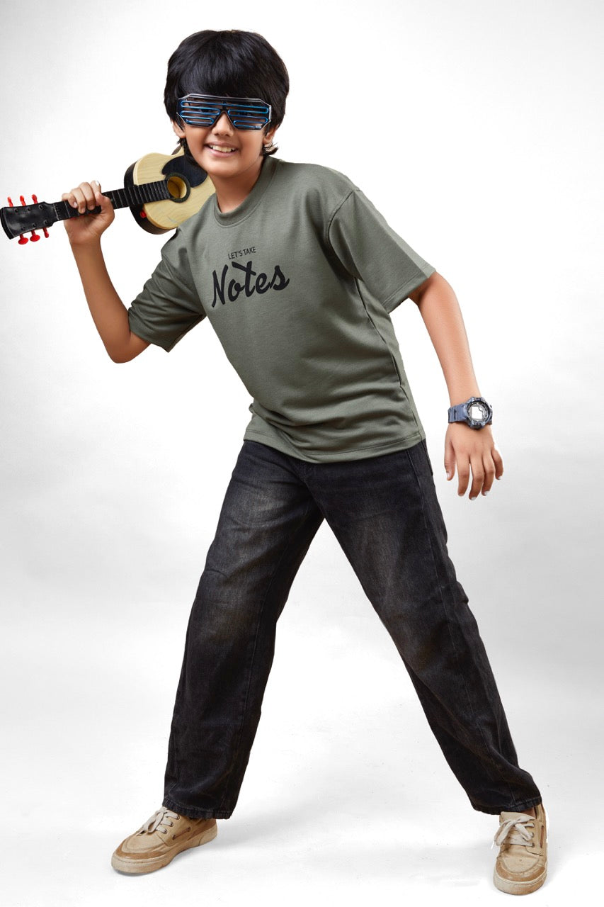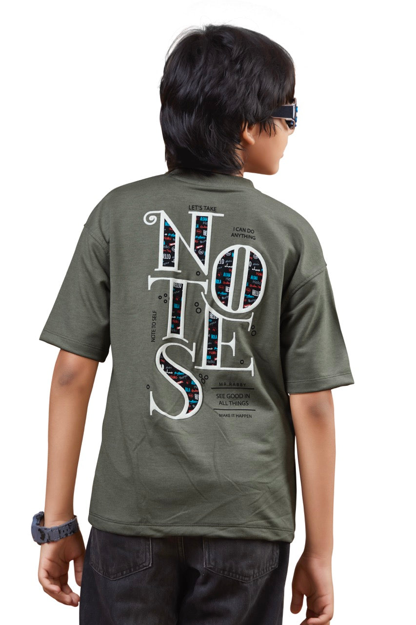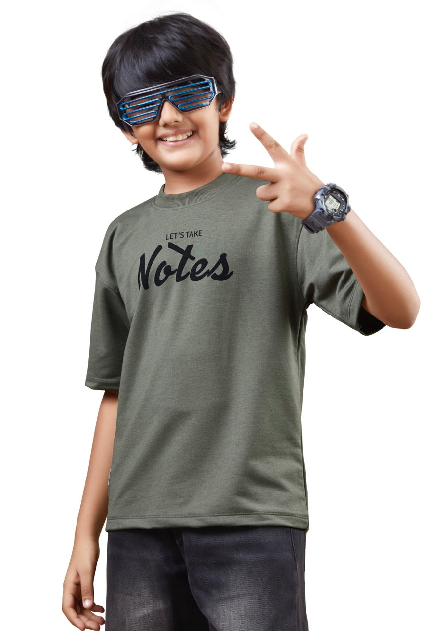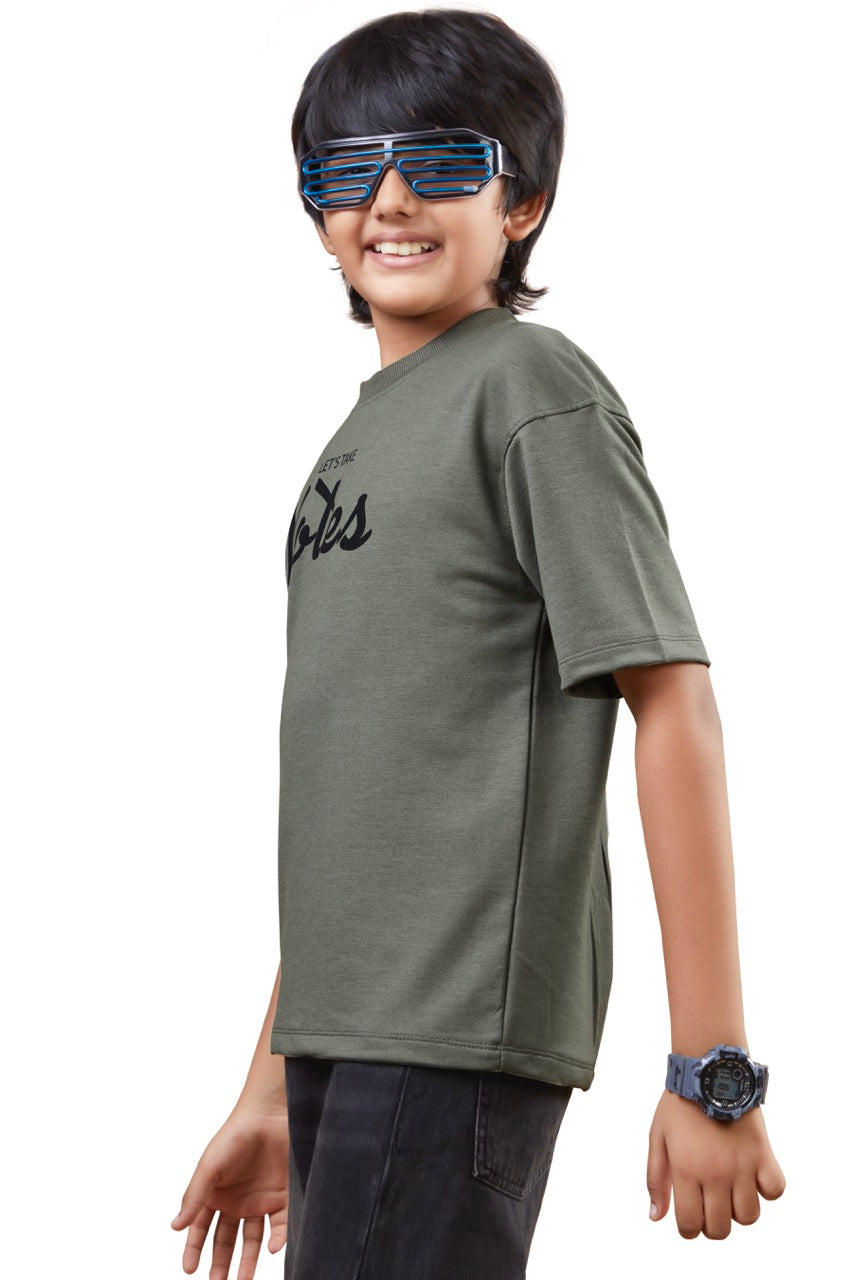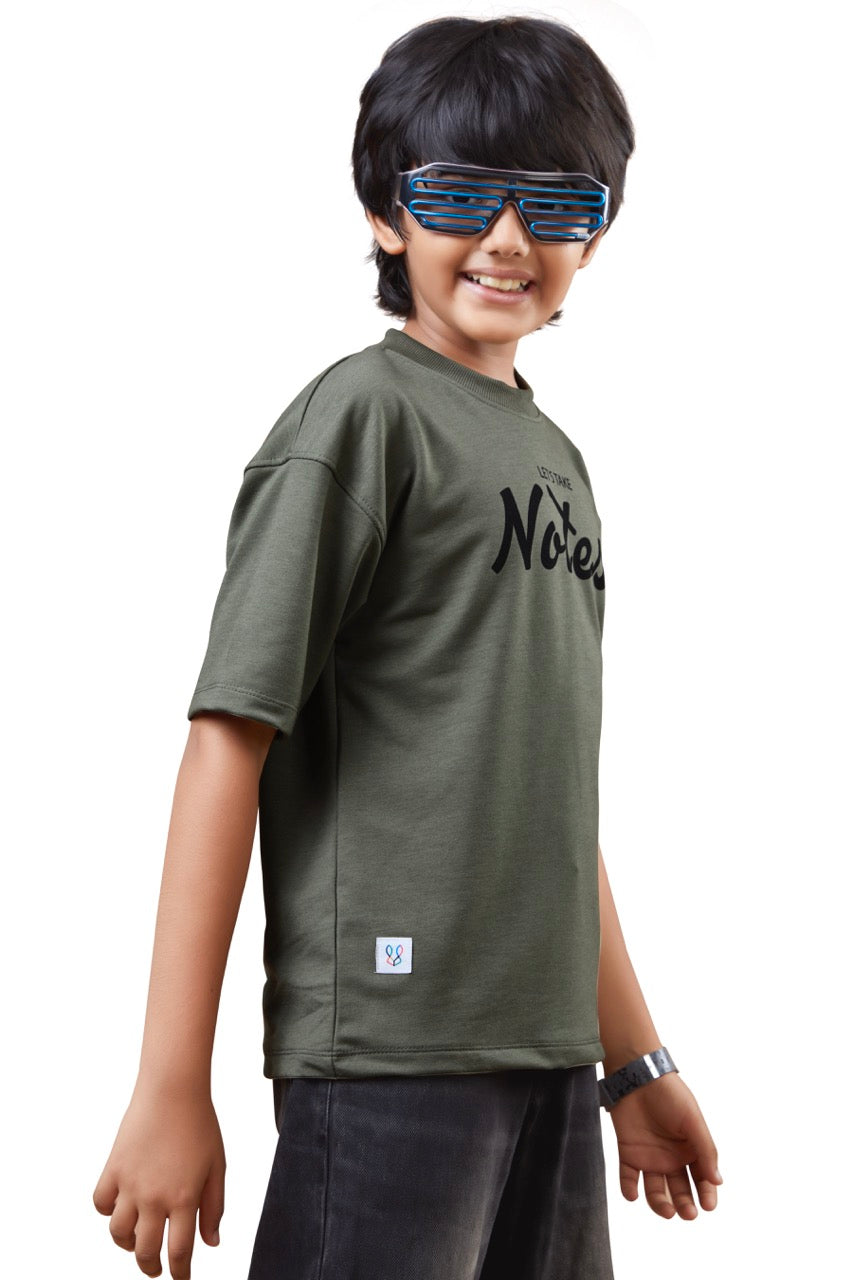 Boys OIlve Green Half Sleeves Drop-Shoulder Tshirt