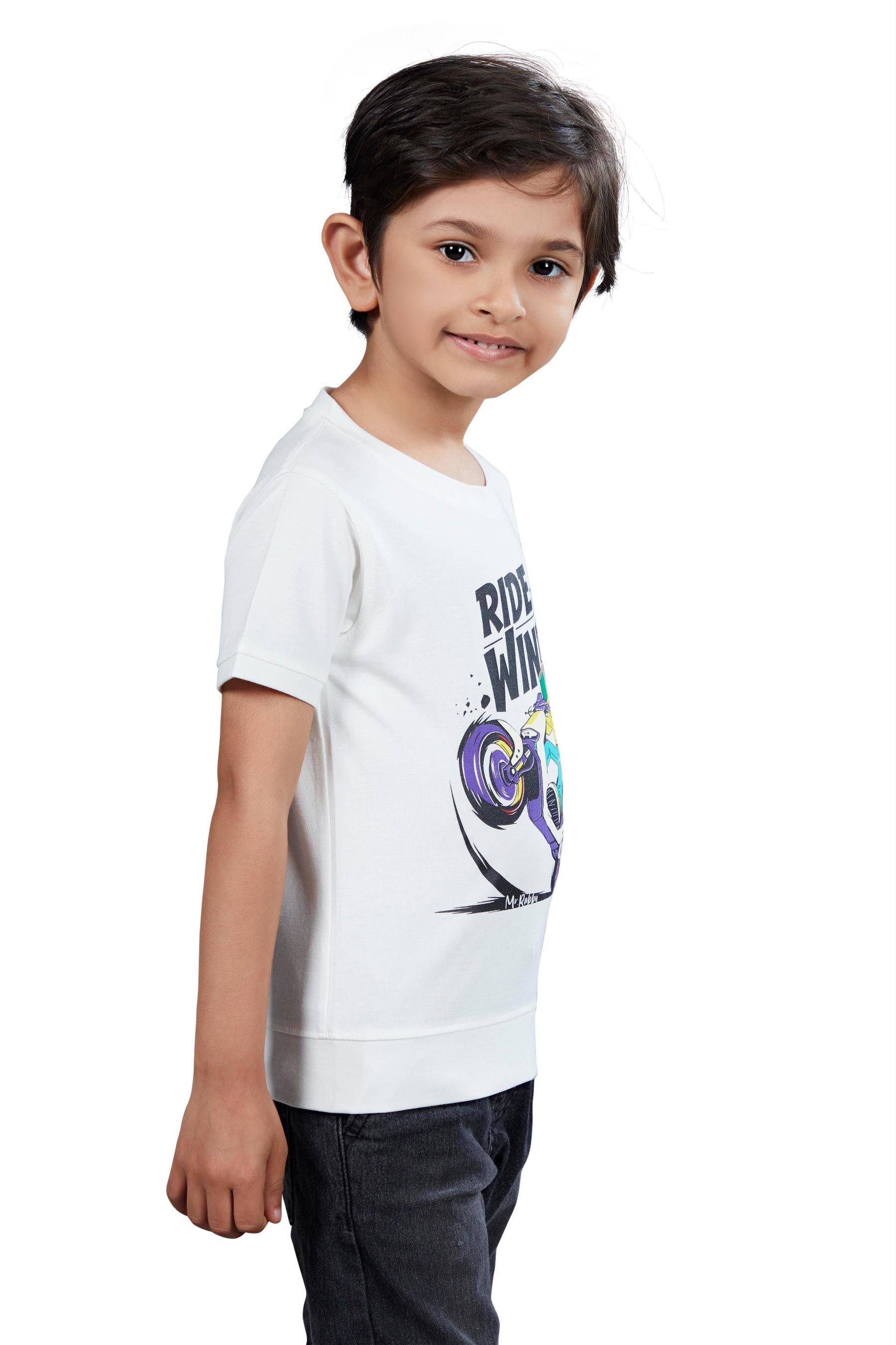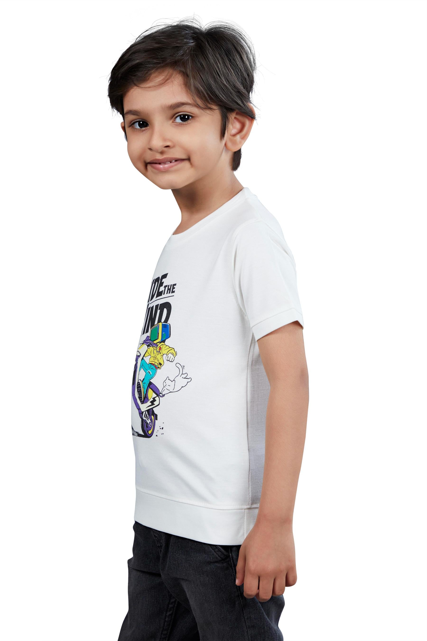Boys White Graphic Printed Half Sleeves T-Shirt