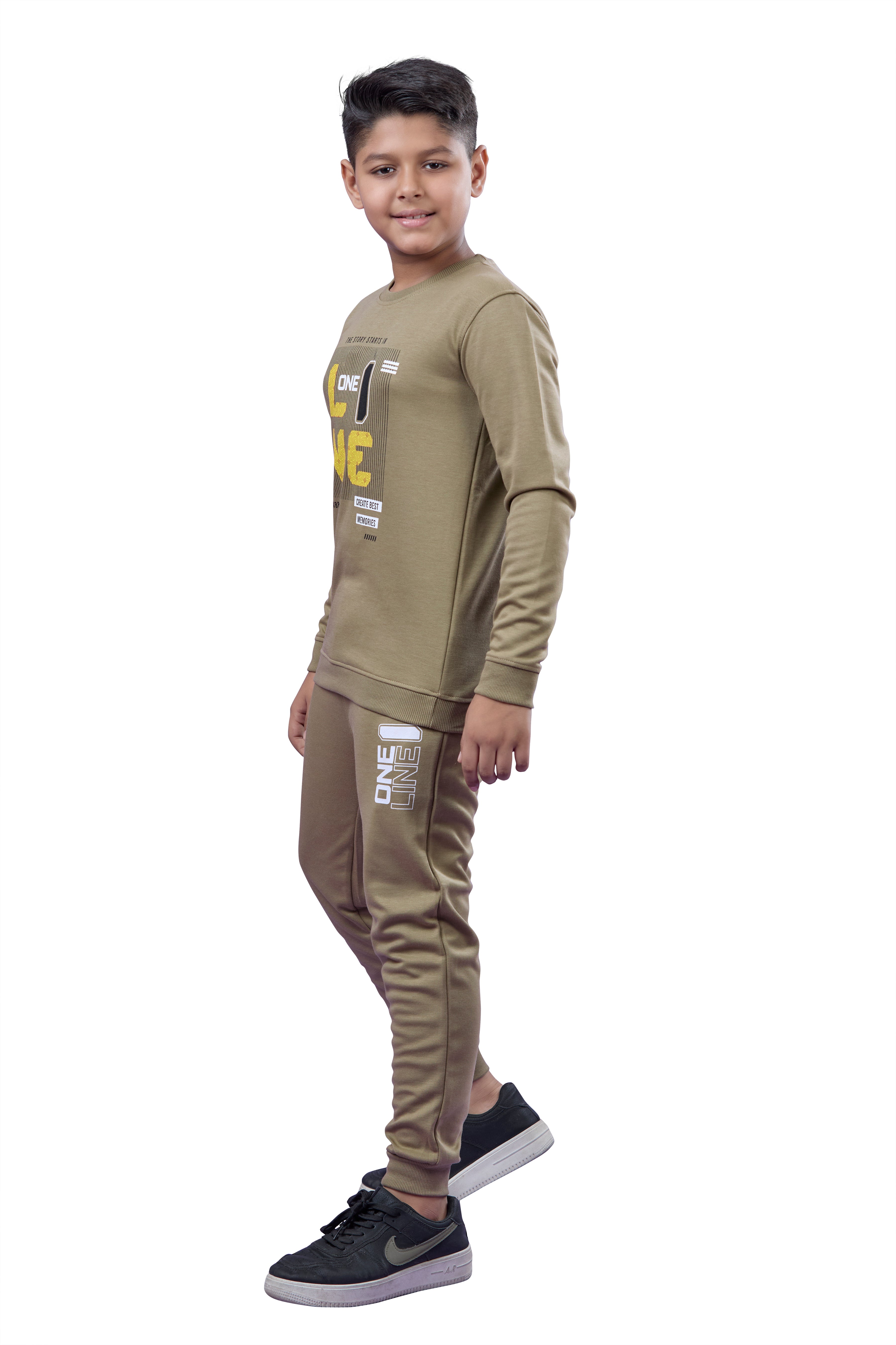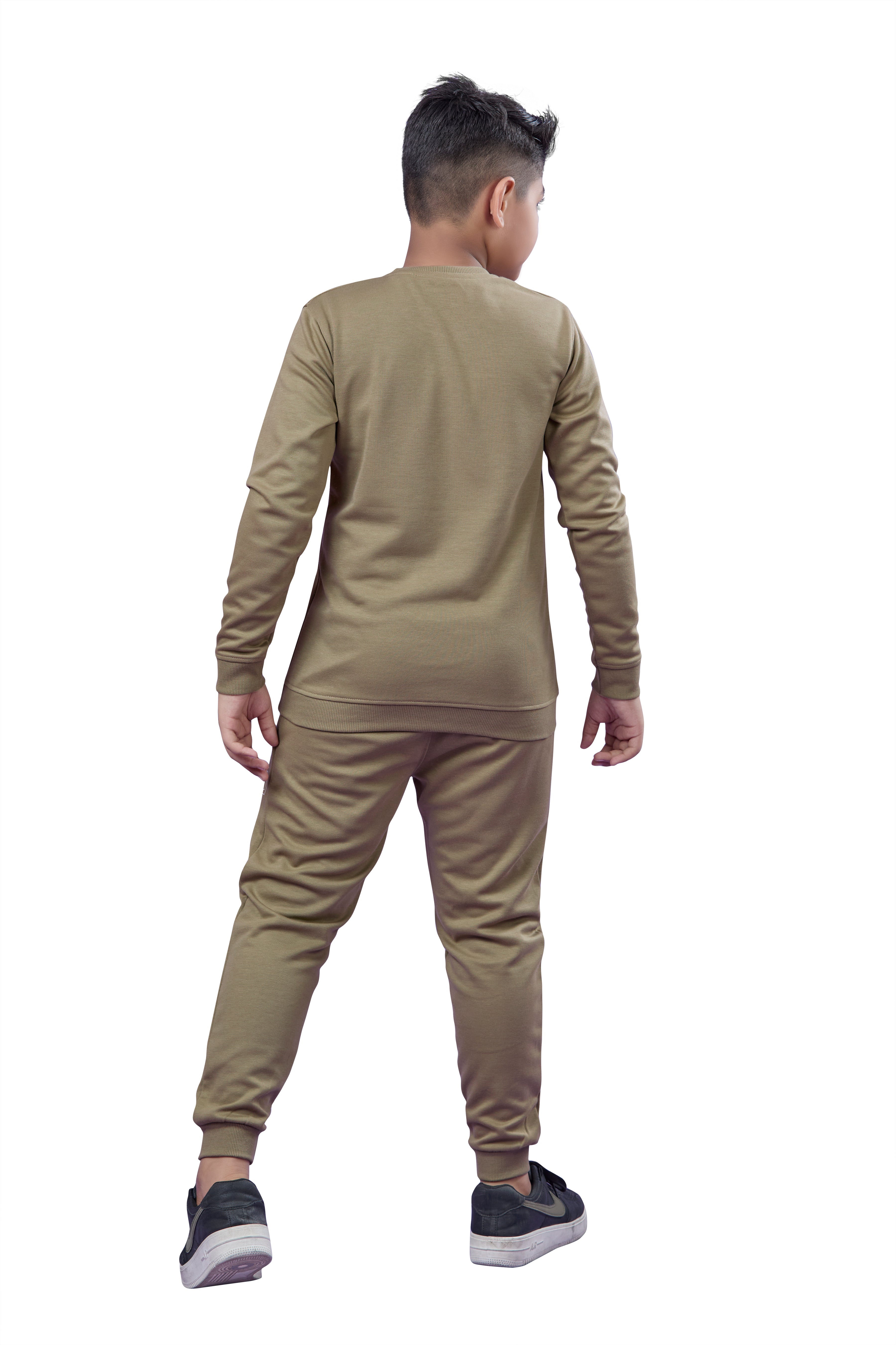 Brown Printed Boys Co-Ord Set (Sweatshirts & Joggers)