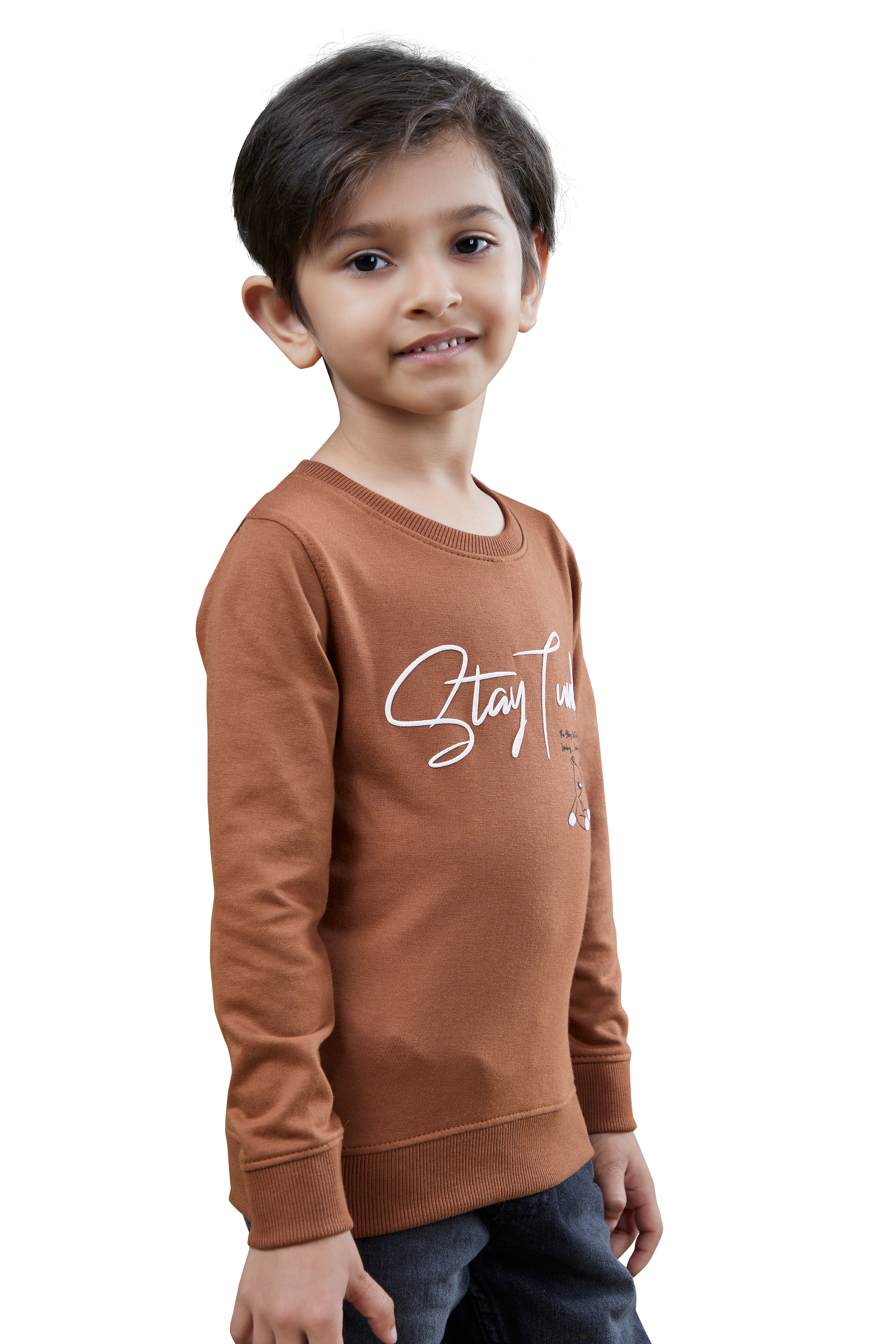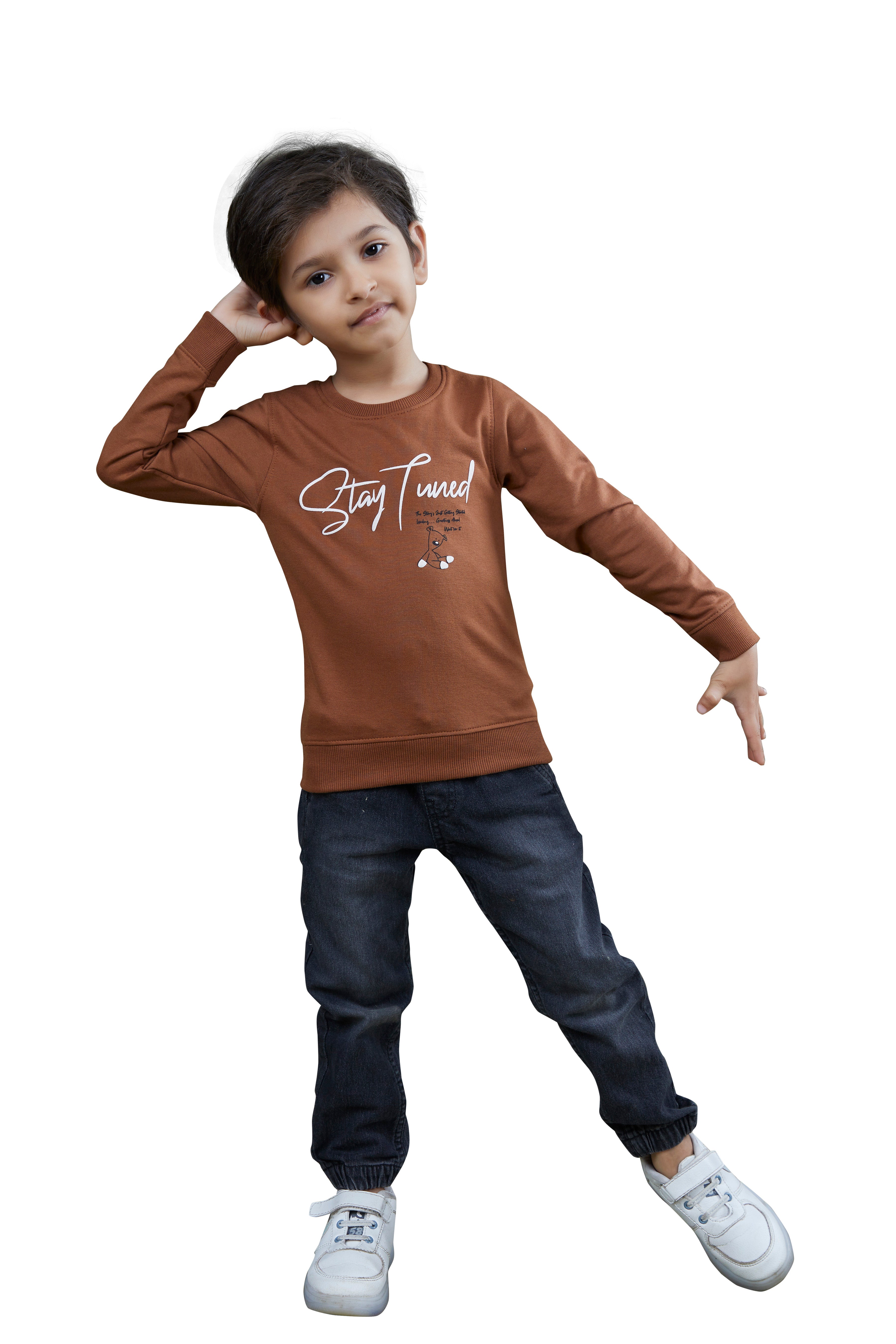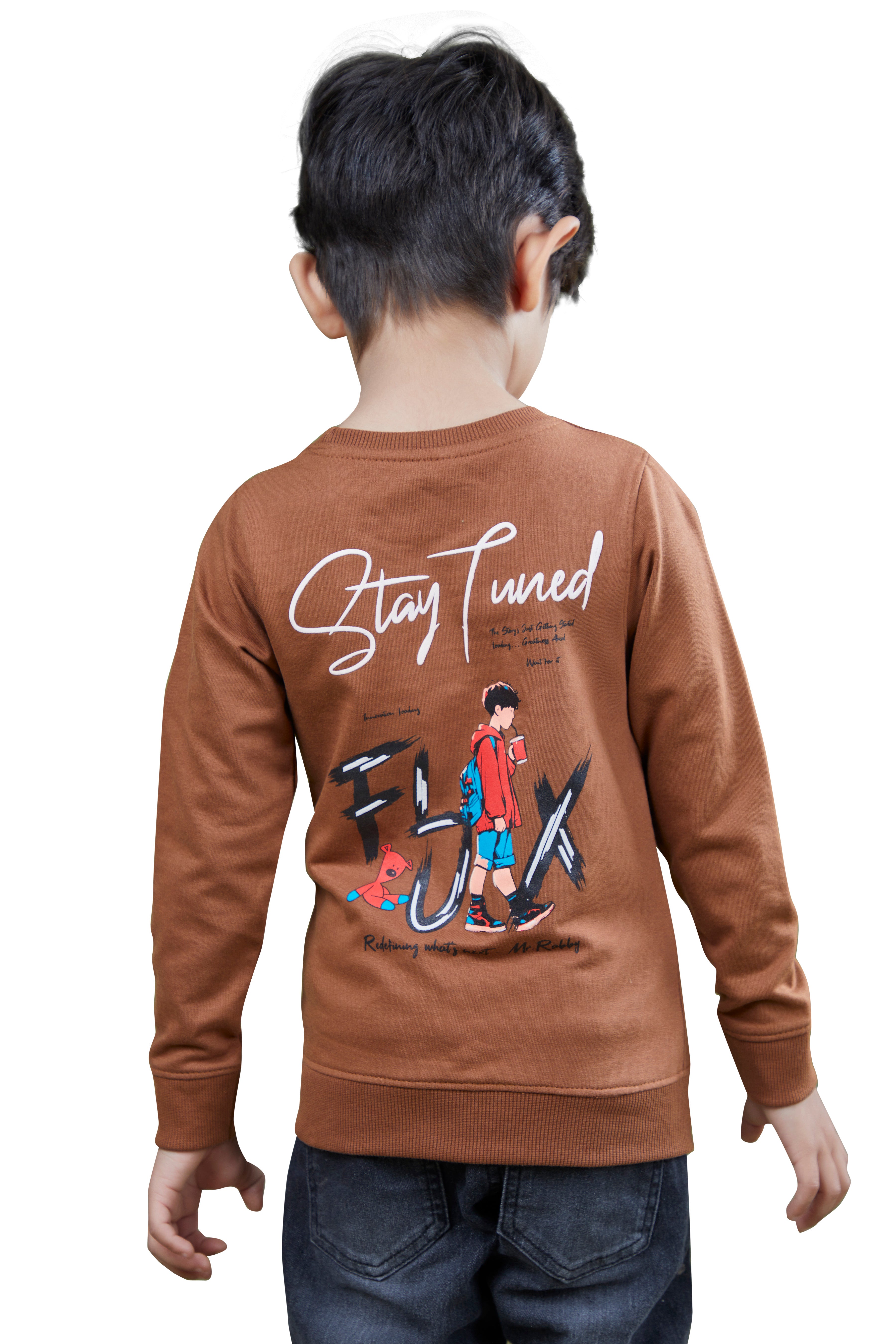 Brown Printed Boys Full Sleeves Sweatshirts