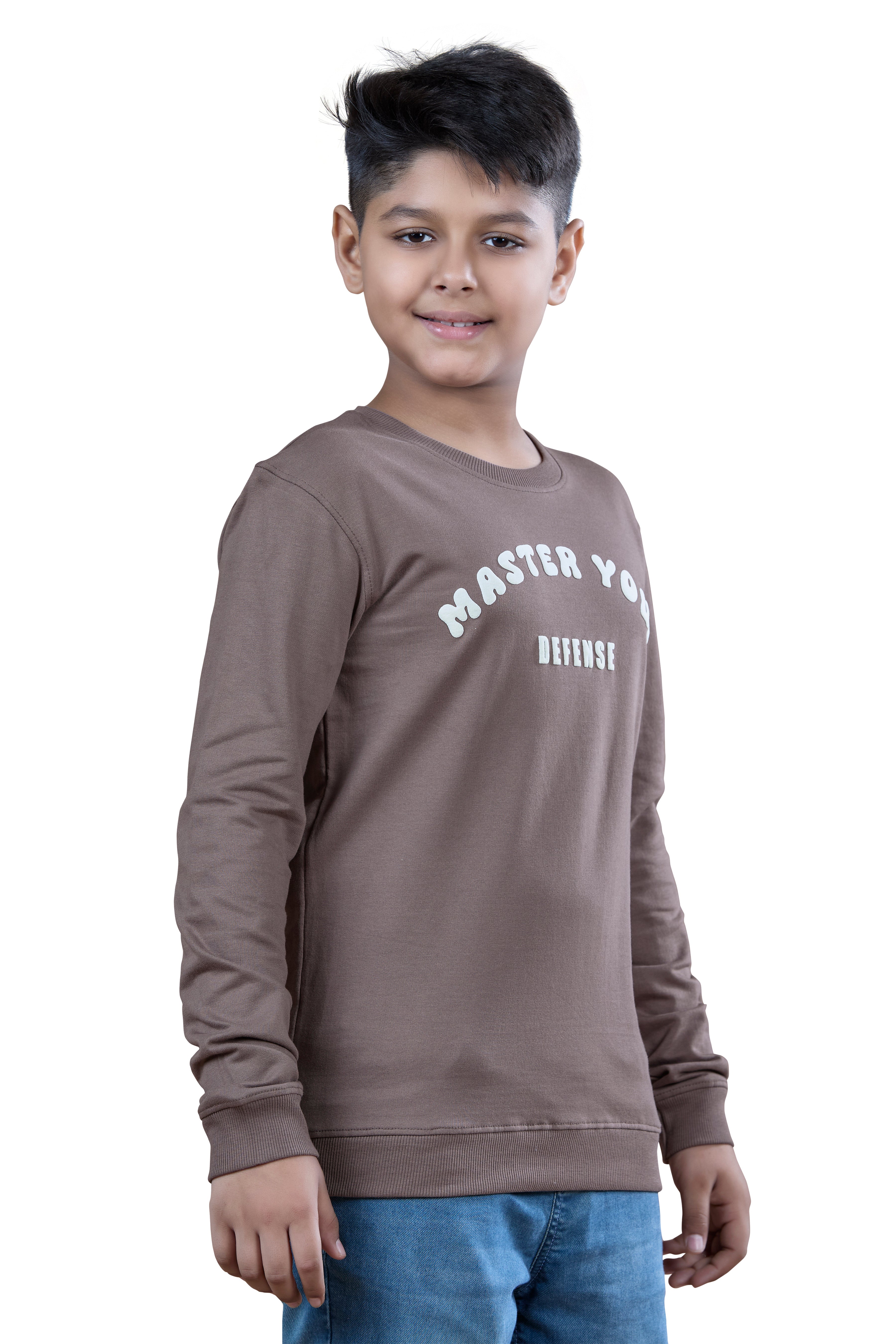 Brown Printed Graphic Boys Full Sleeves T-Shirt