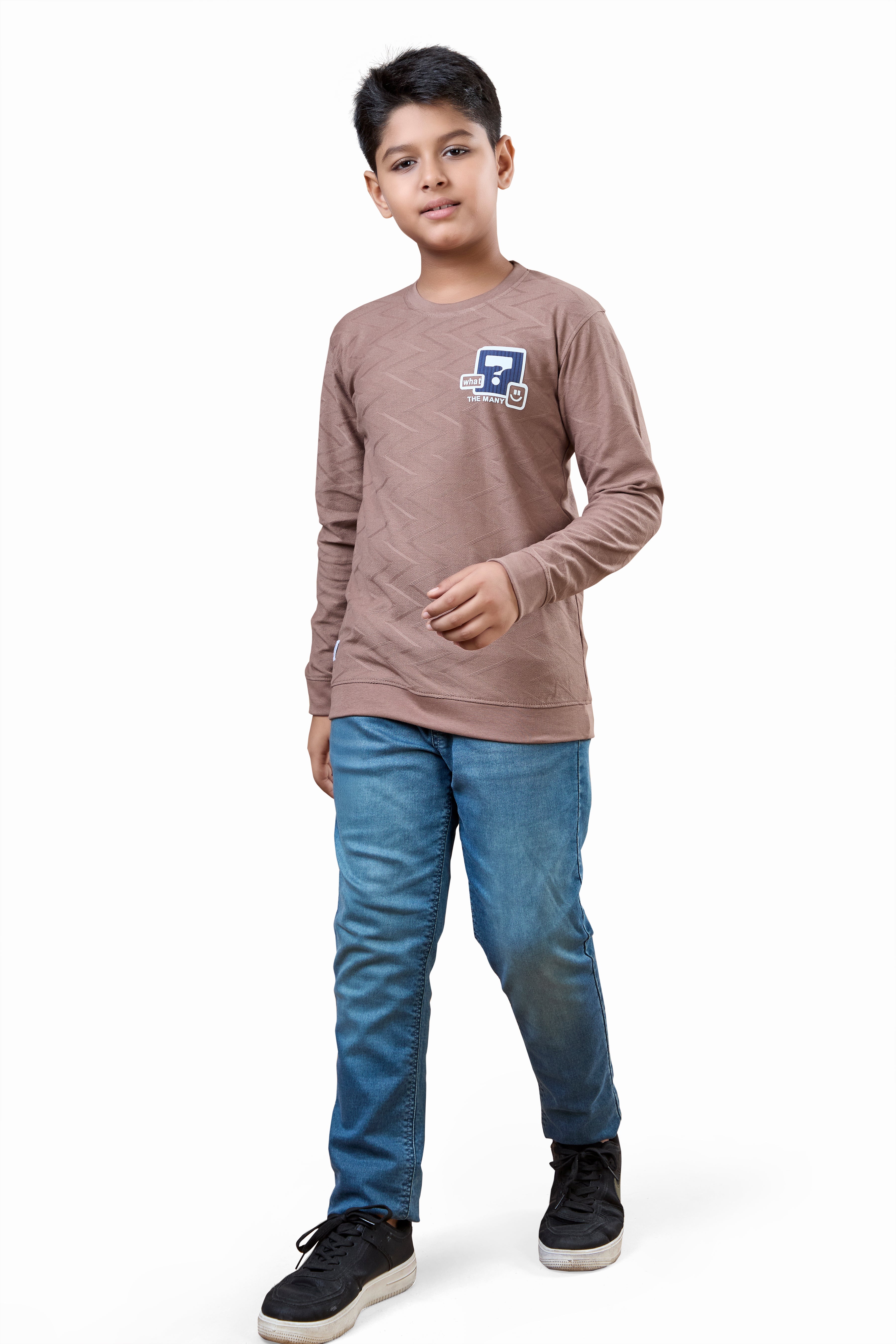 Camel Brown Minimal Graphic Boys  Full Sleeves T-Shirt