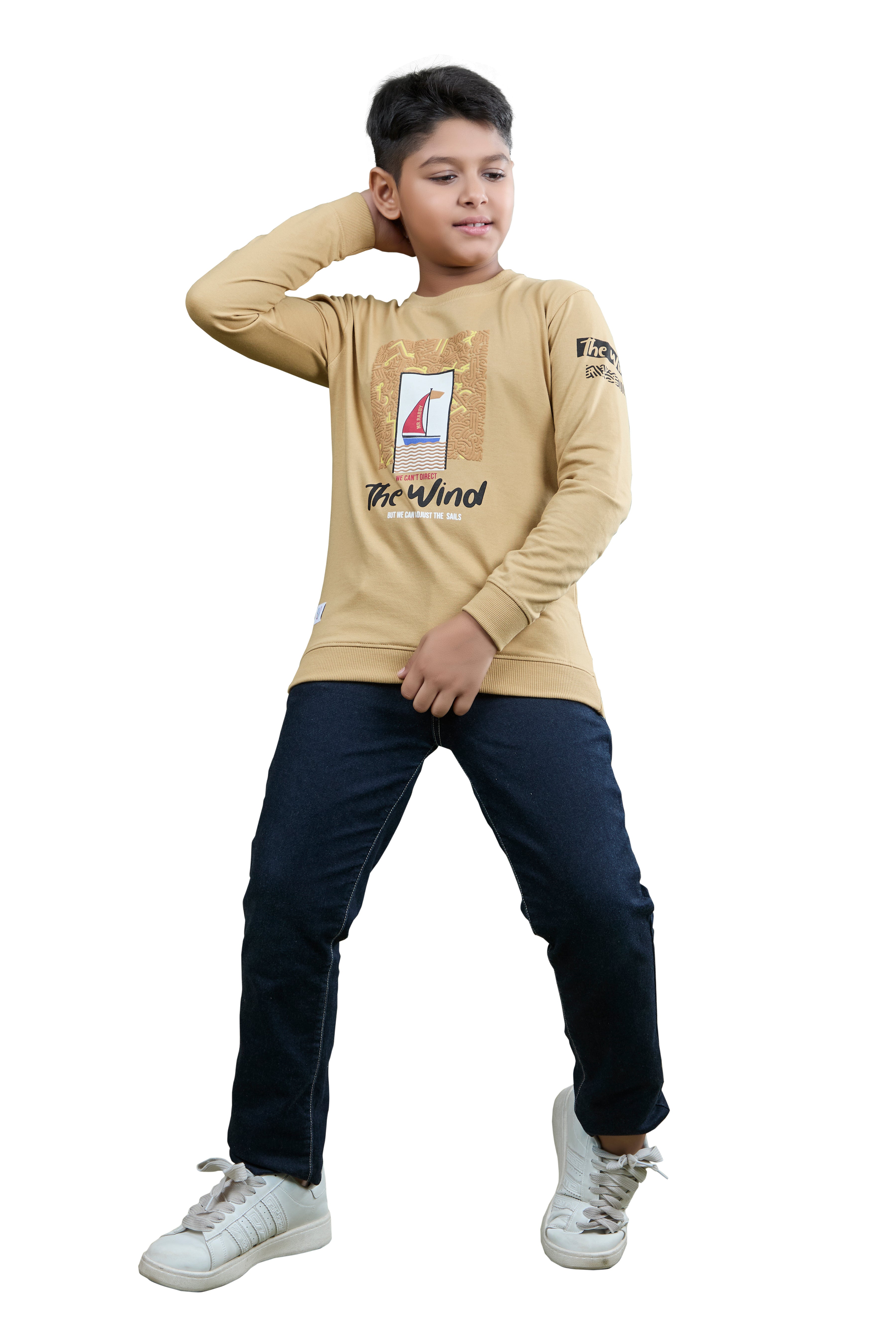 For boys who love adventure, the Camel Brown The Wind Sweatshirt is a must-have. Designed in a soft cotton blend with a bold graphic print, it delivers comfort and effortless style for school days and weekend outings.