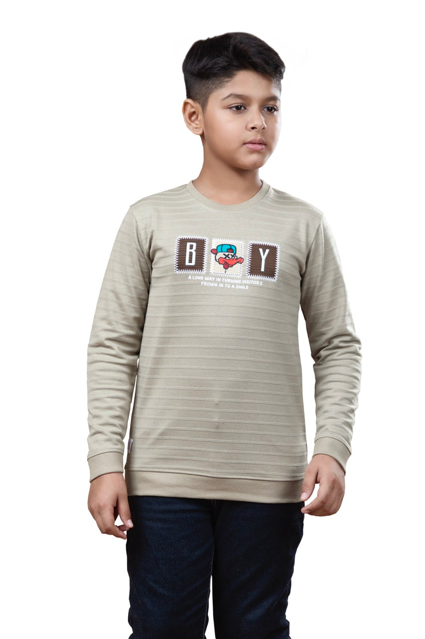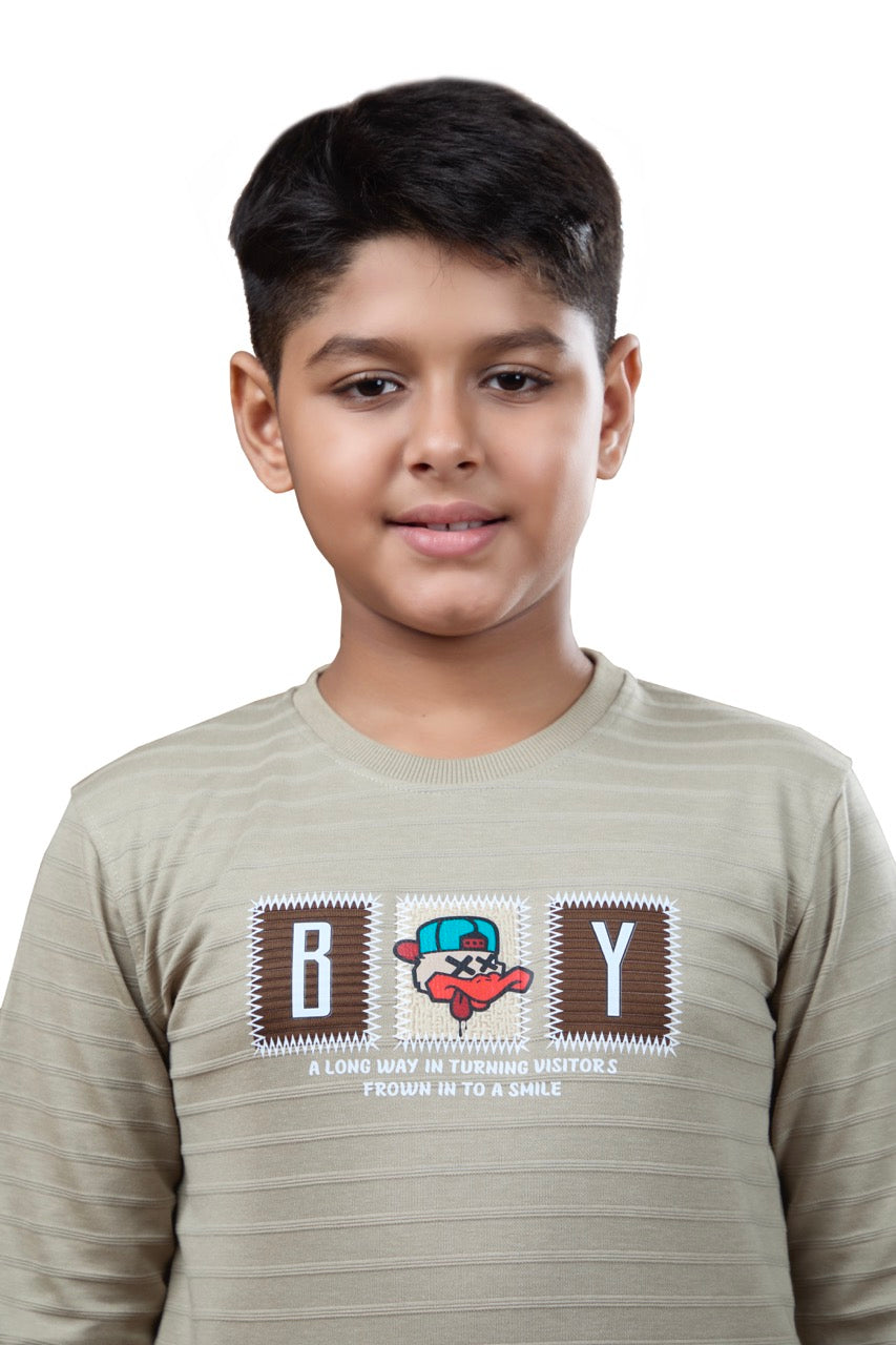 Subtle yet stylish, the Beige Graphic Print Full Sleeves Tee keeps your boy looking cool while staying comfy all day.