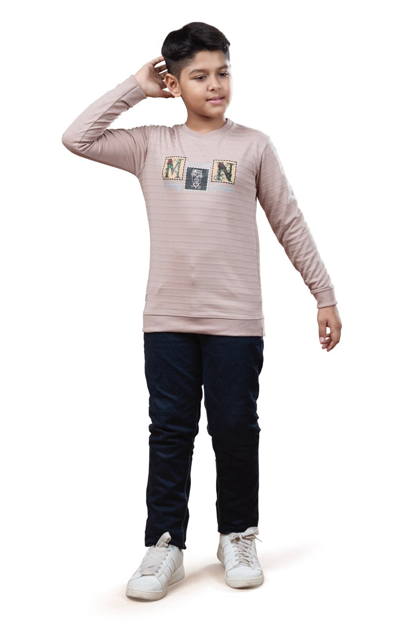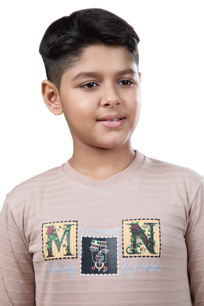 Subtle yet stylish, the Beige Graphic Print Full Sleeves Tee keeps your boy looking cool while staying comfy all day.