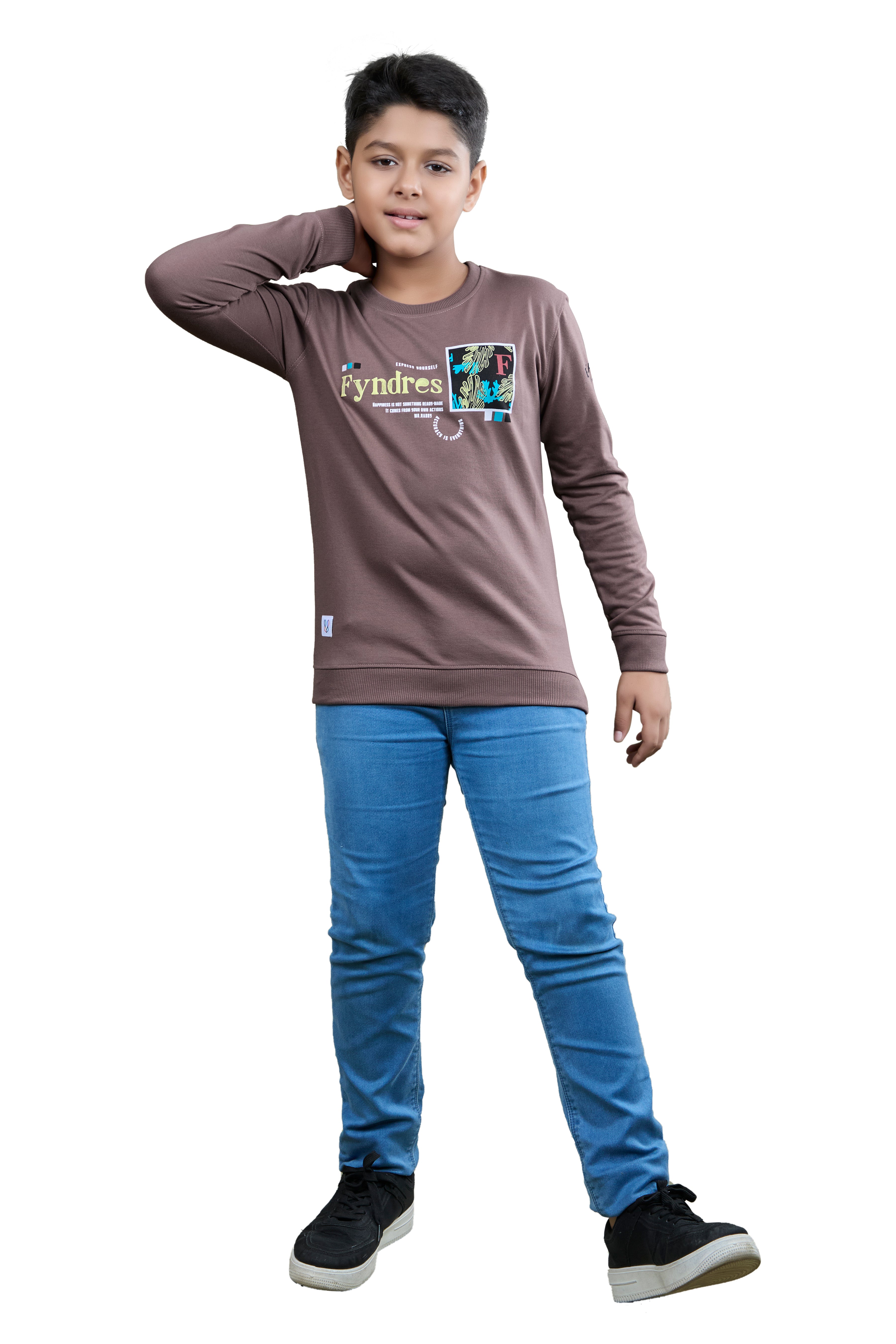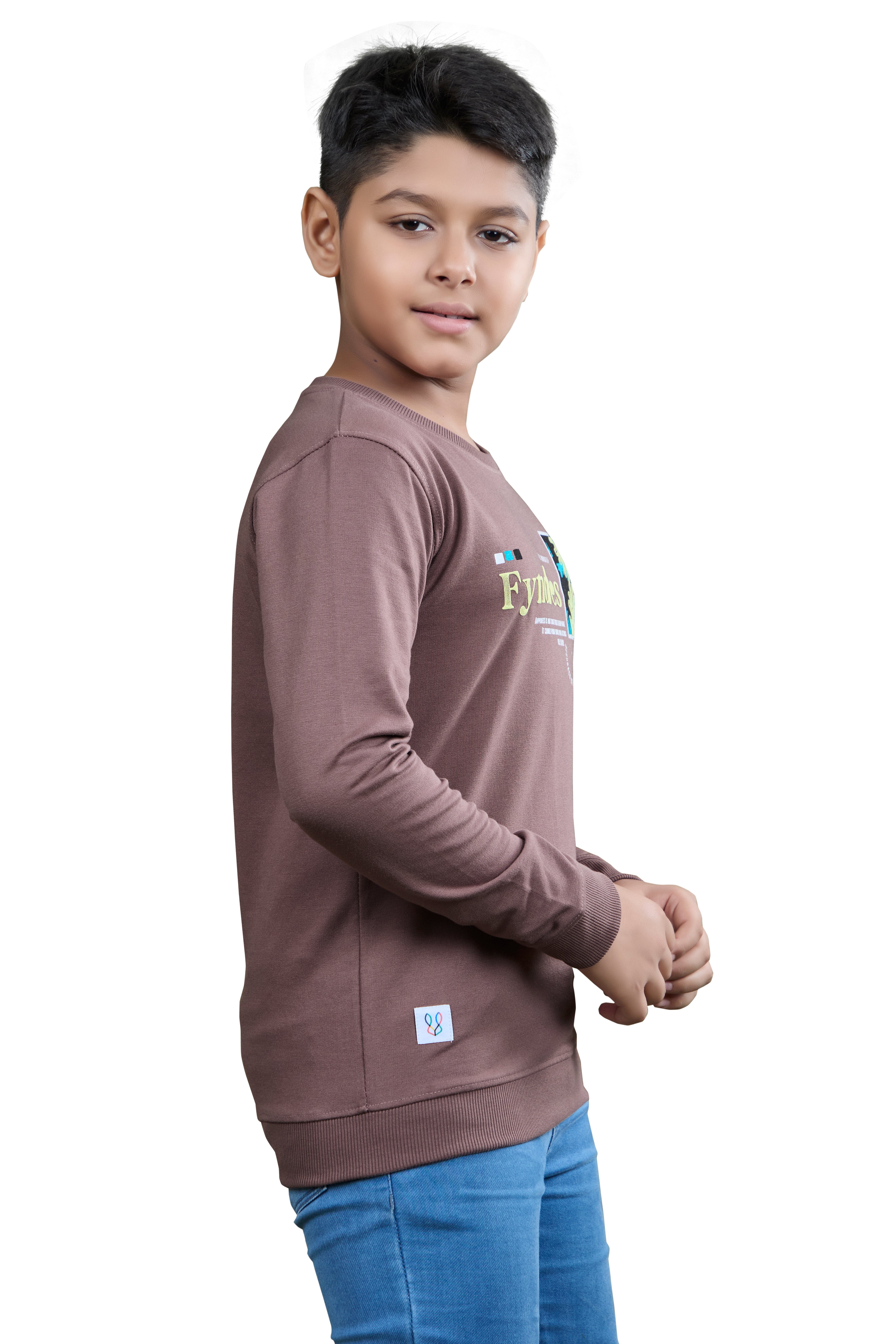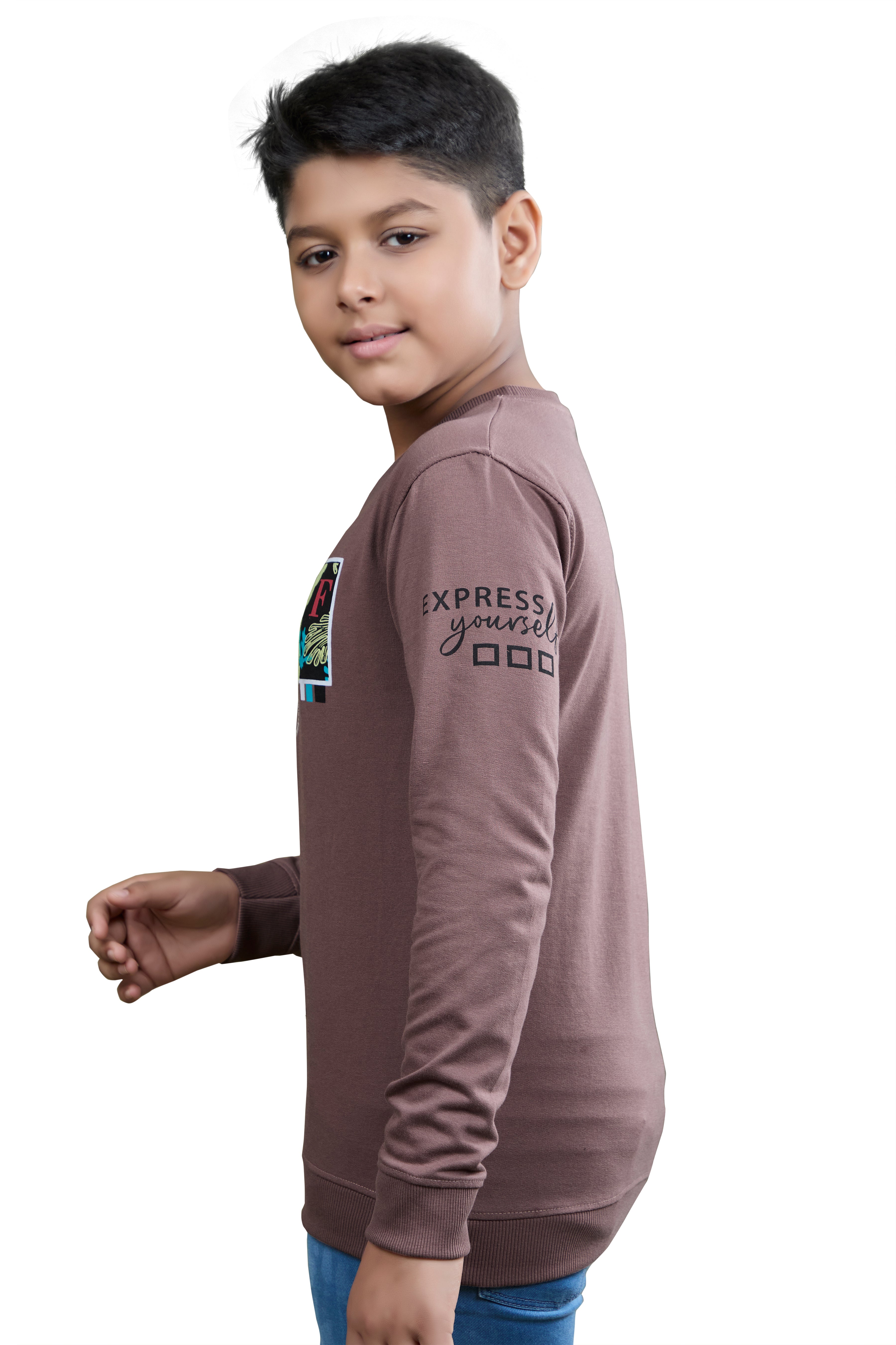 Coffee Brown Fyndres Graphic Boys Sweatshirt