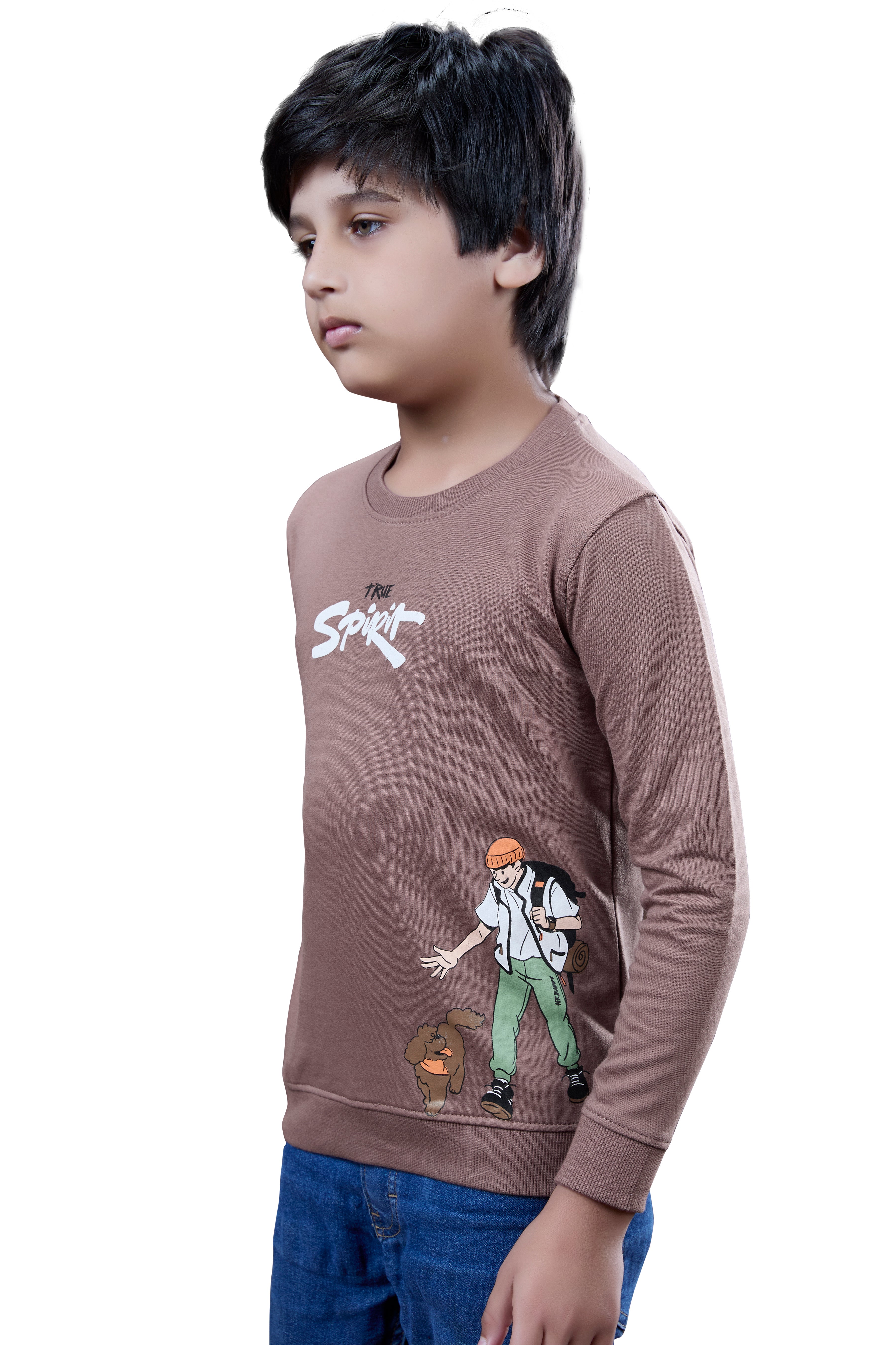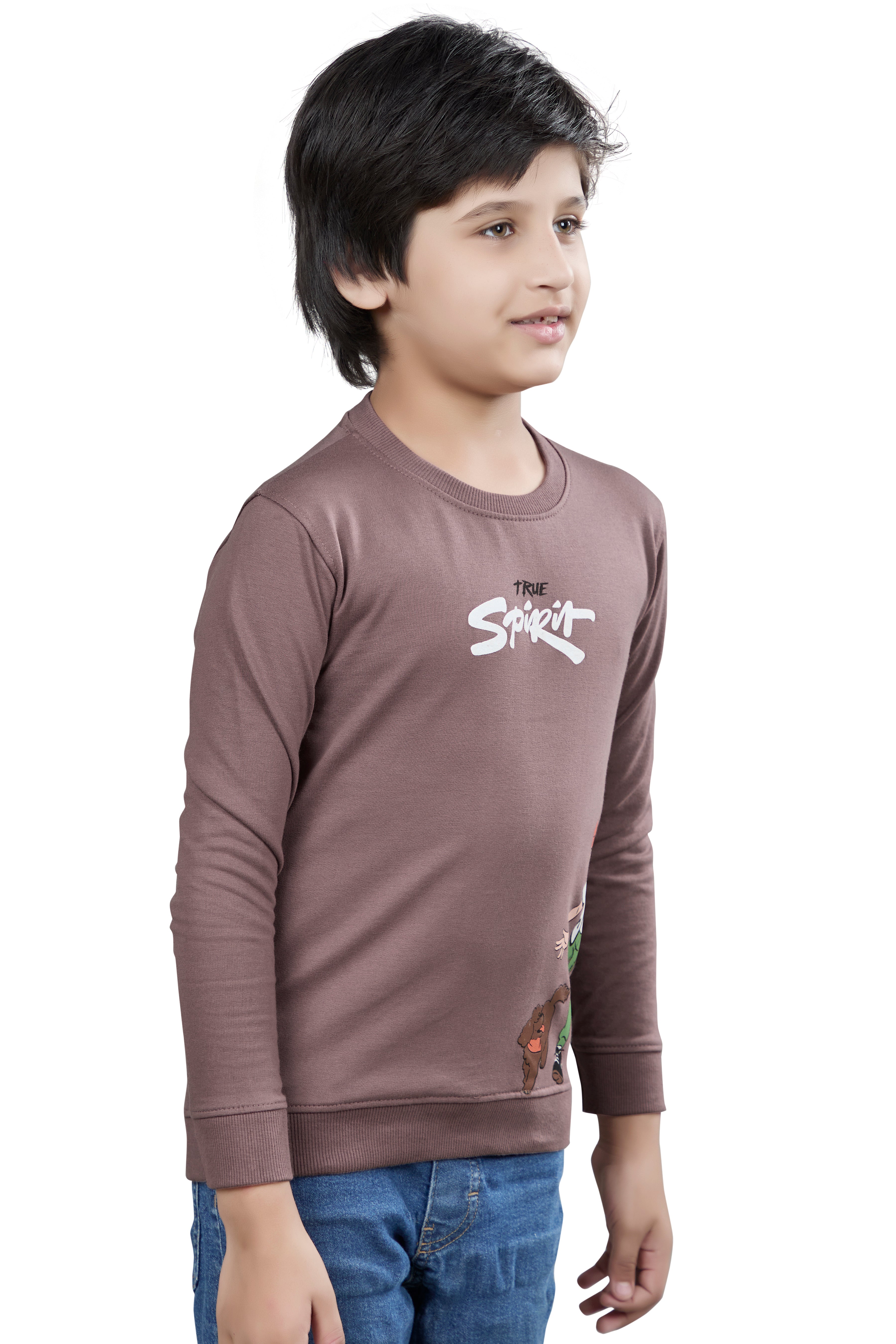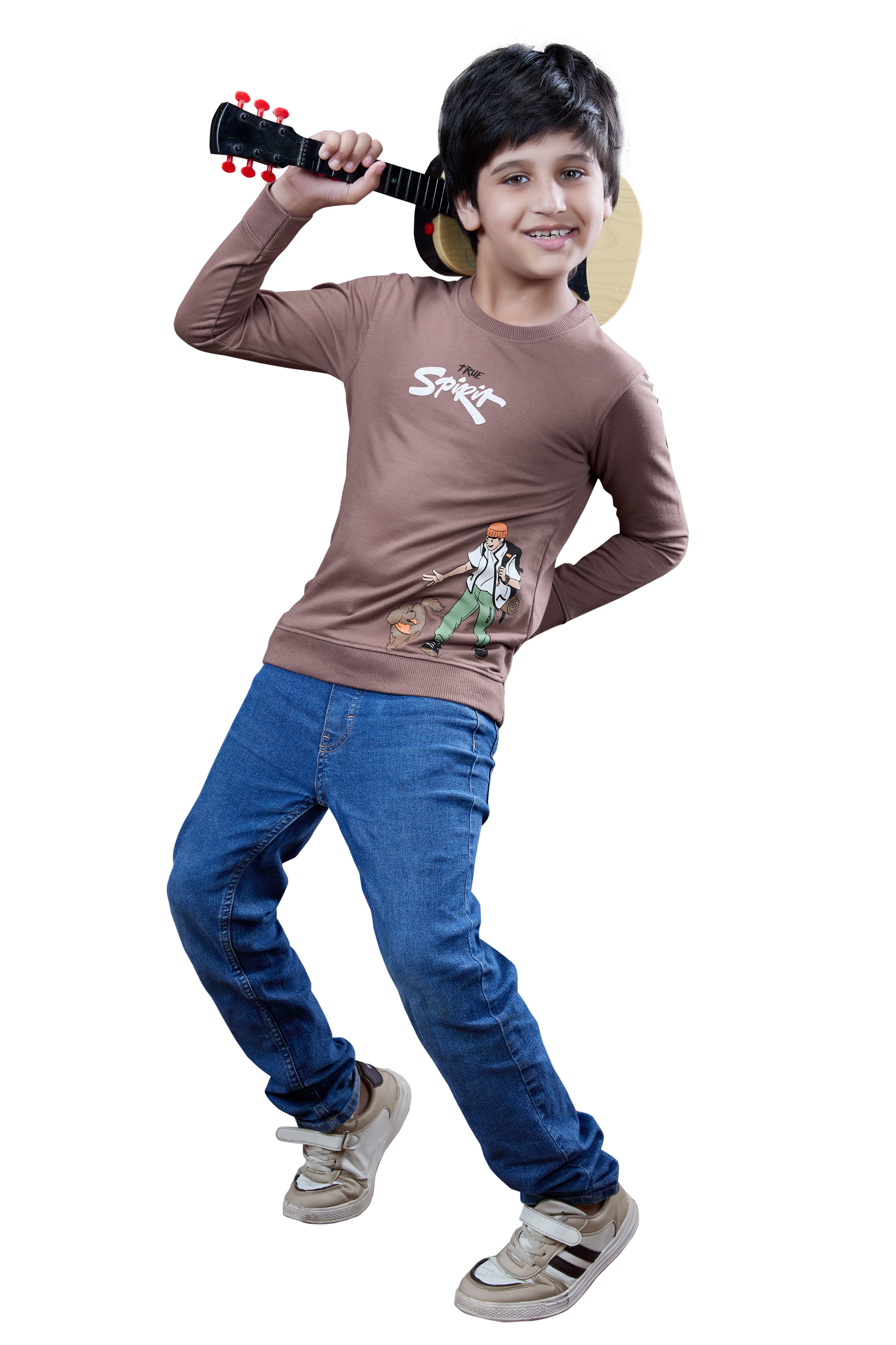 Dark Brown Graphic Print Boys Full Sleeves T-Shirt