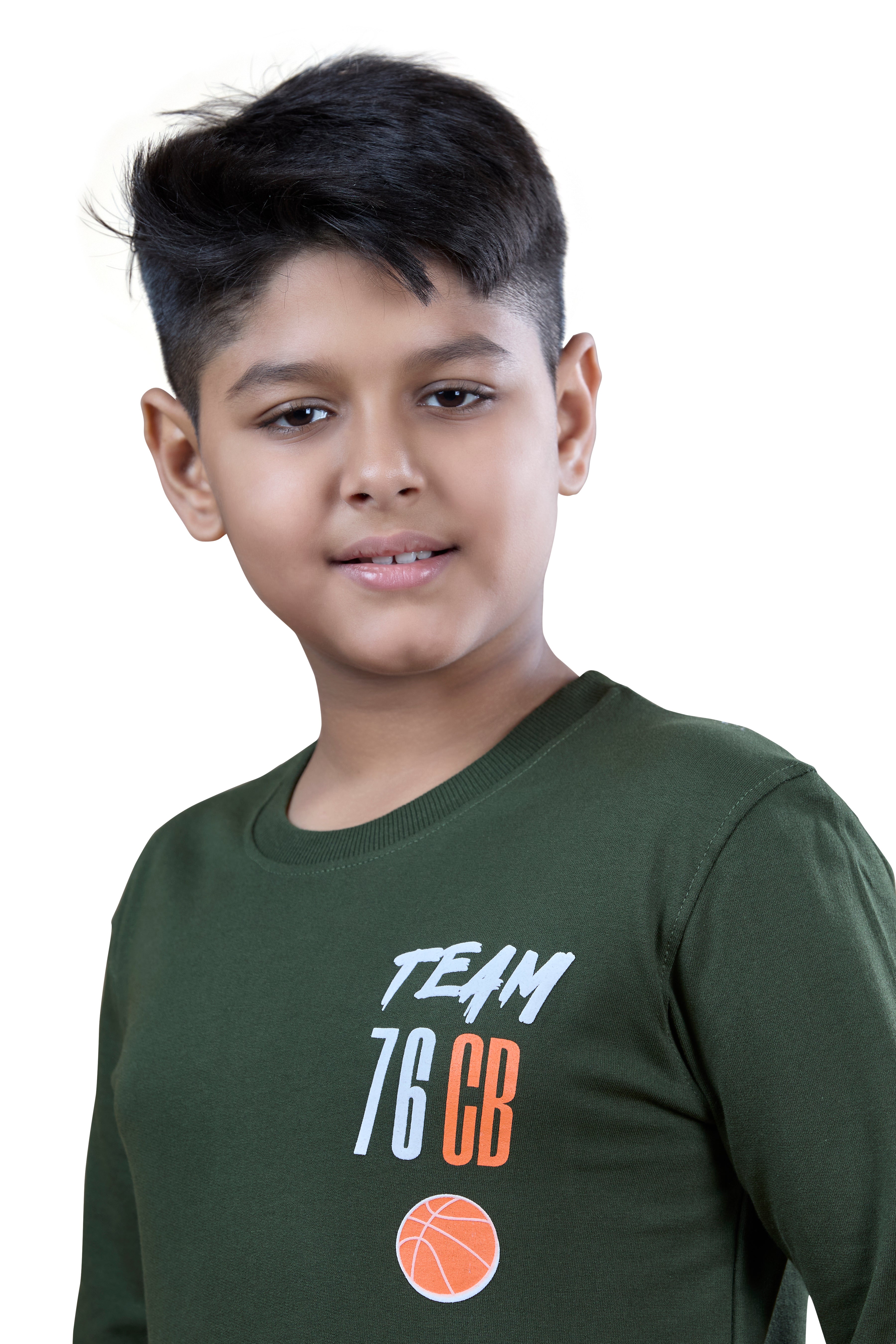 Dark Green Printed Graphic Boys Full Sleeves T-Shirt