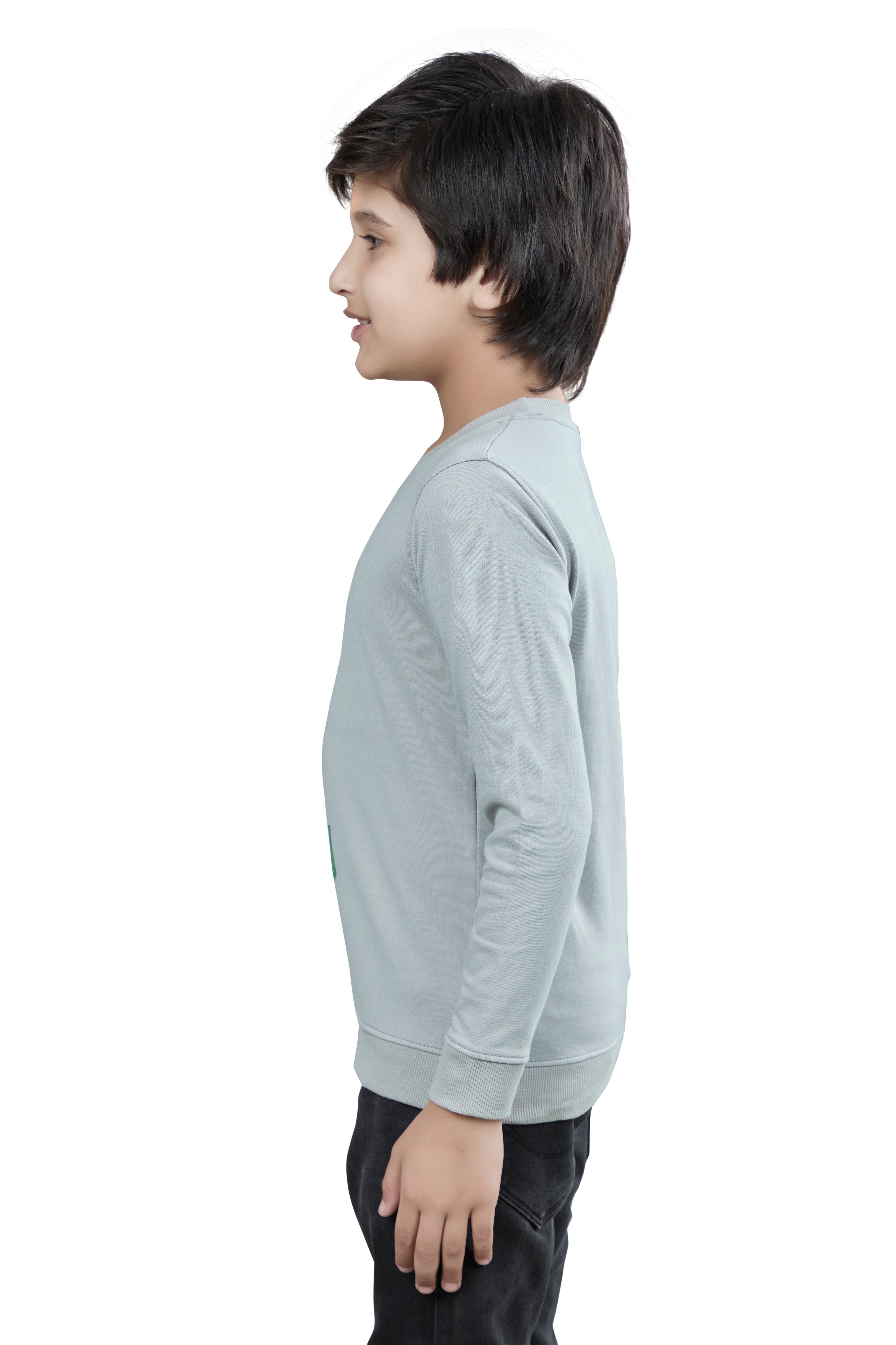 Dark Grey Graphic Print Boys Full Sleeves T-Shirt