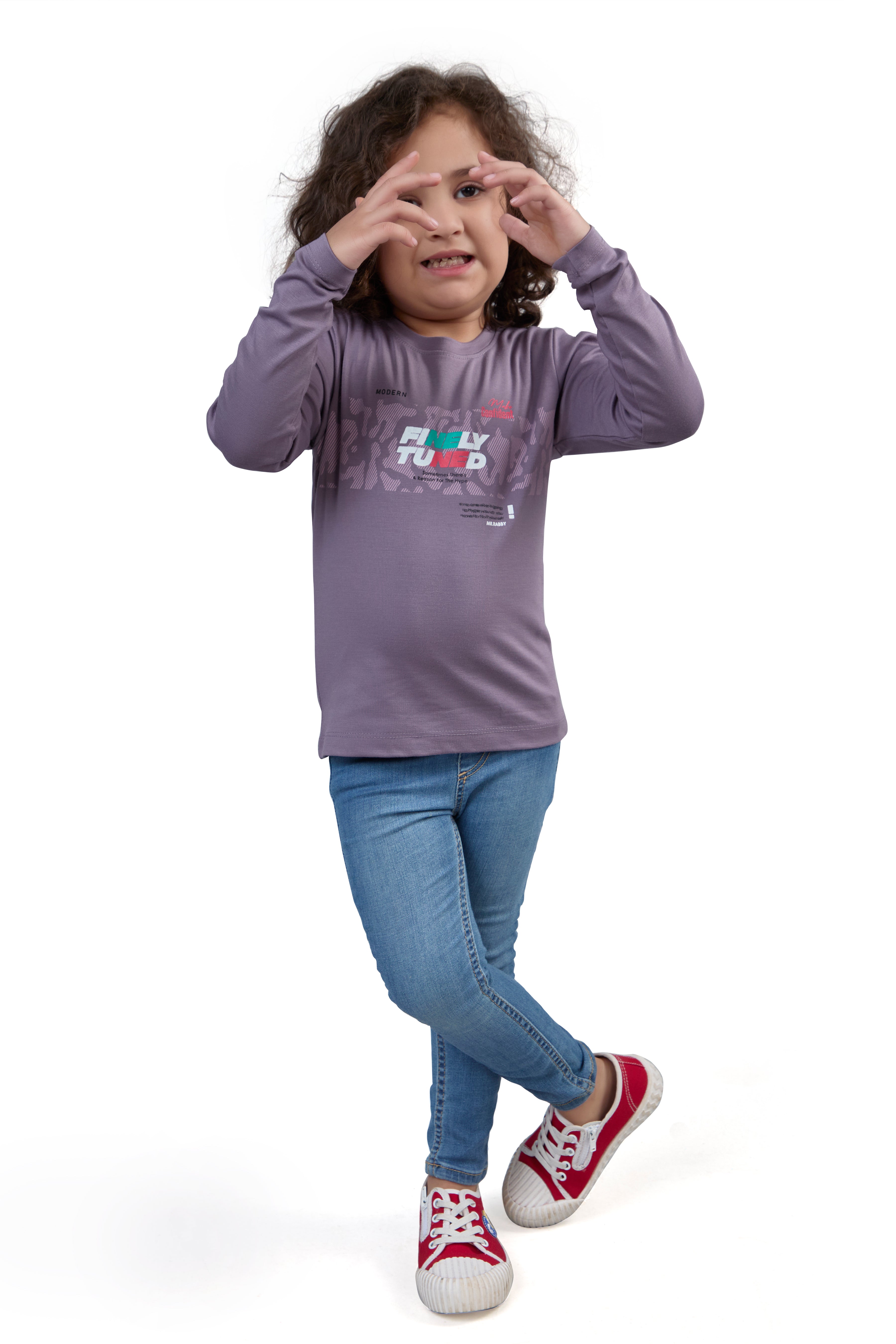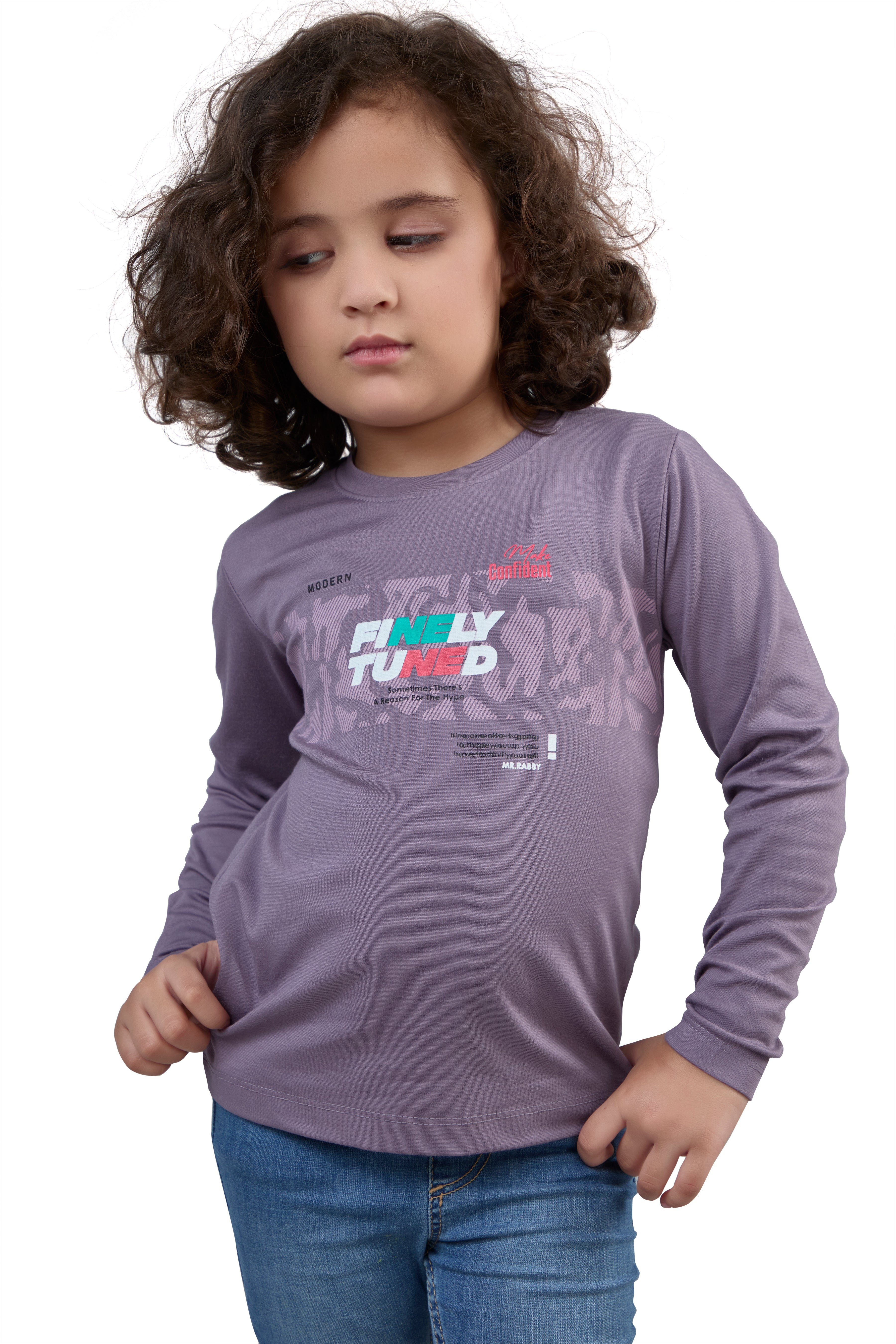 Dusty Lavender Finely Tuned Graphic Girls’ Full Sleeves T-Shirt