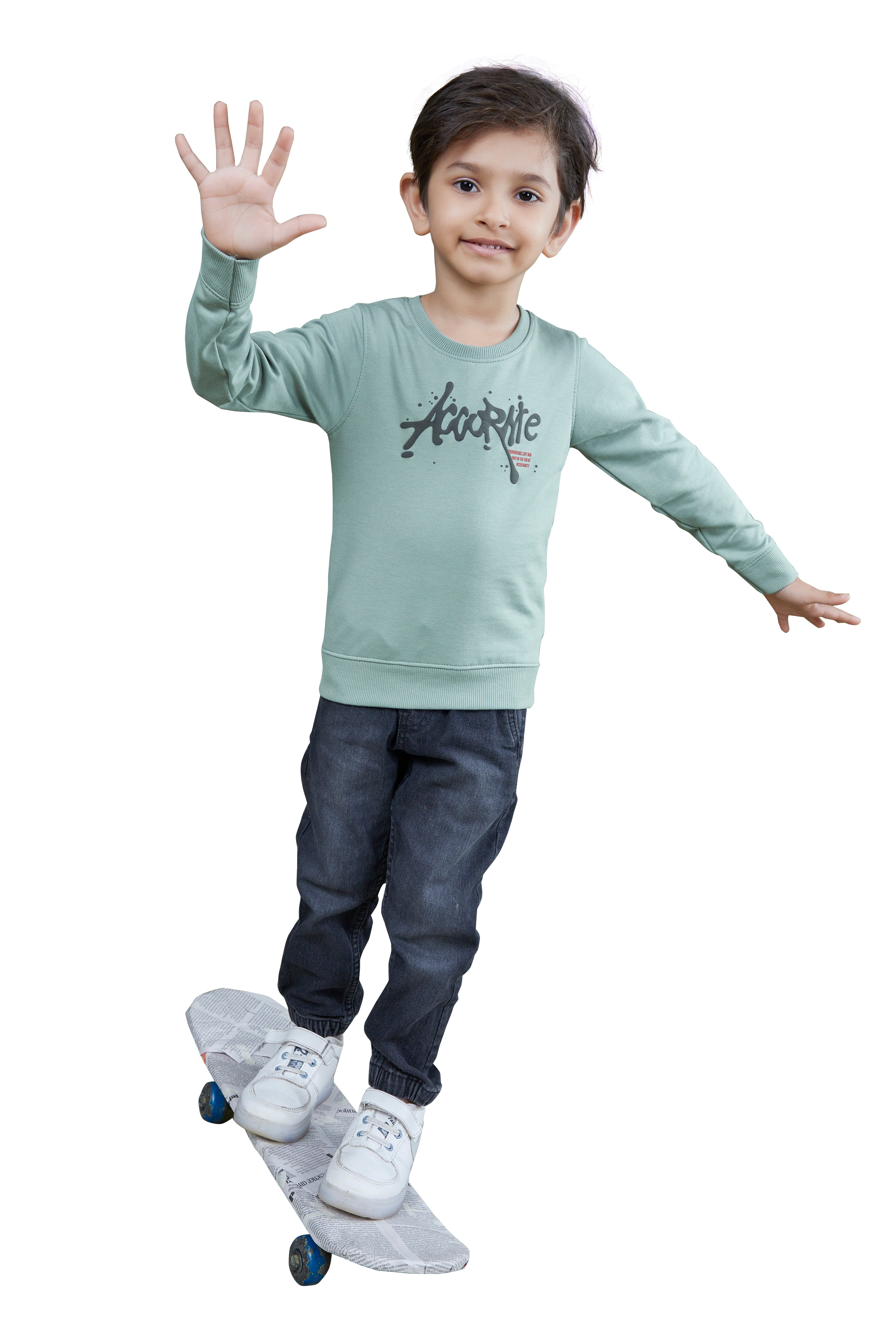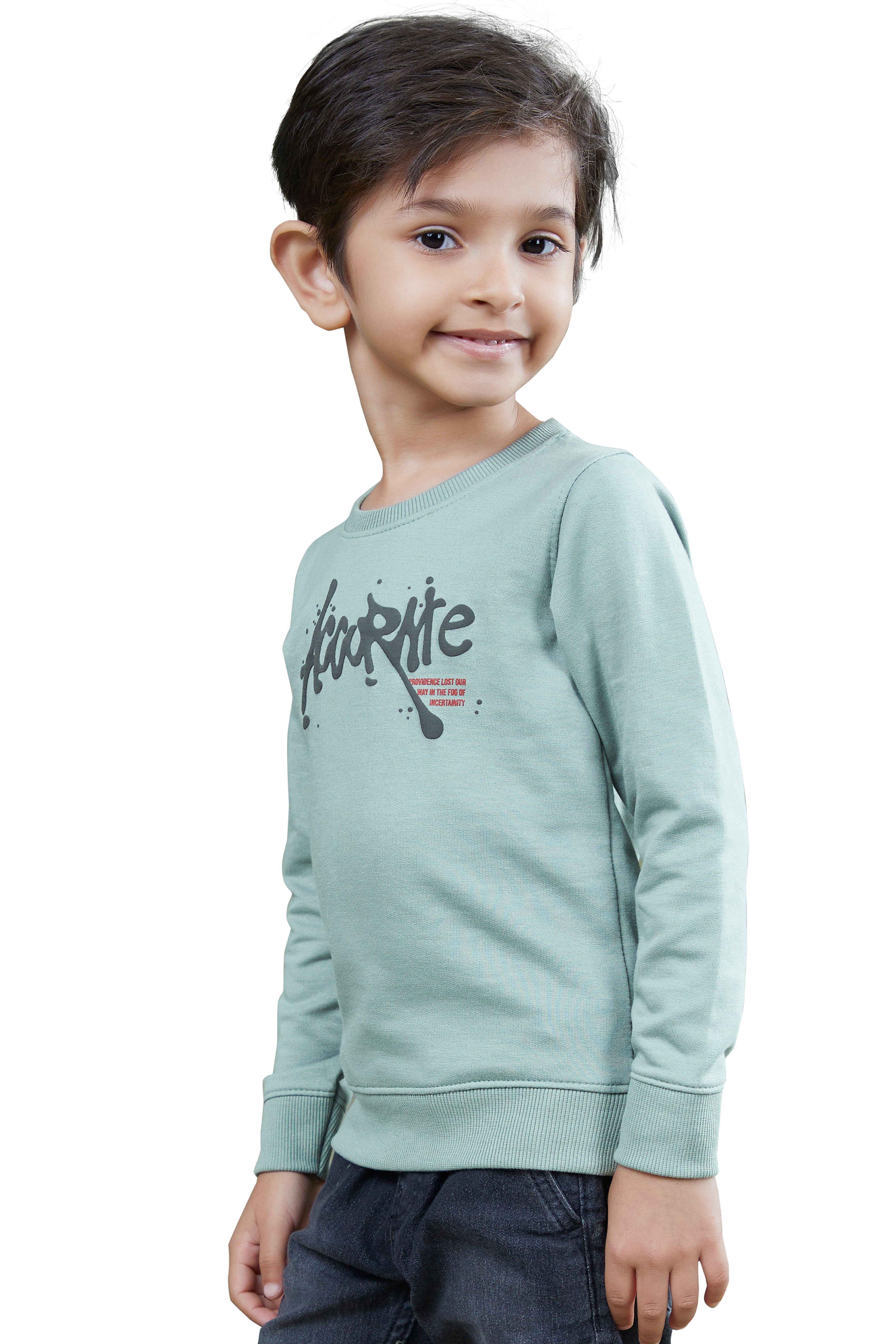 Green Printed Boys Full Sleeves Sweatshirts