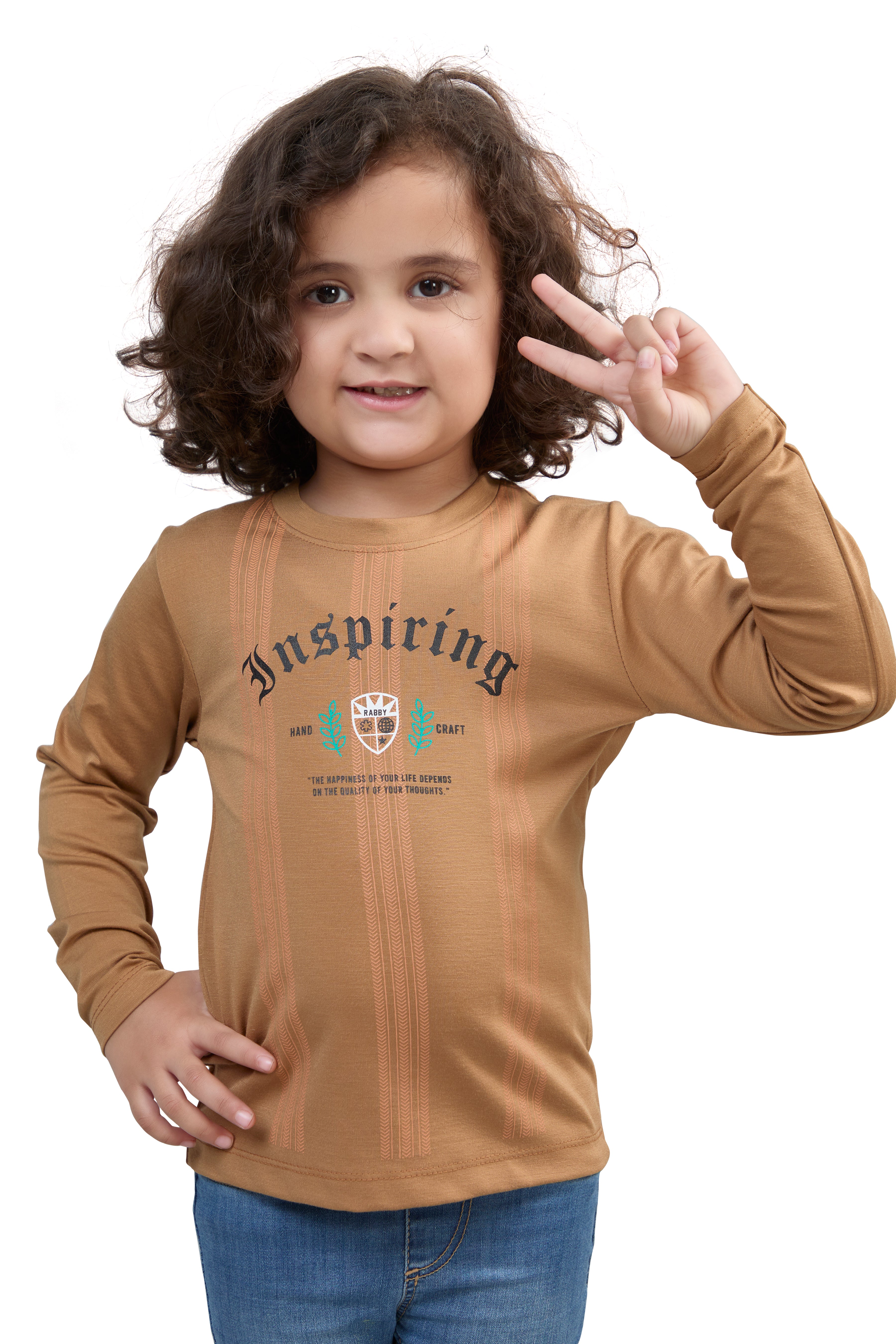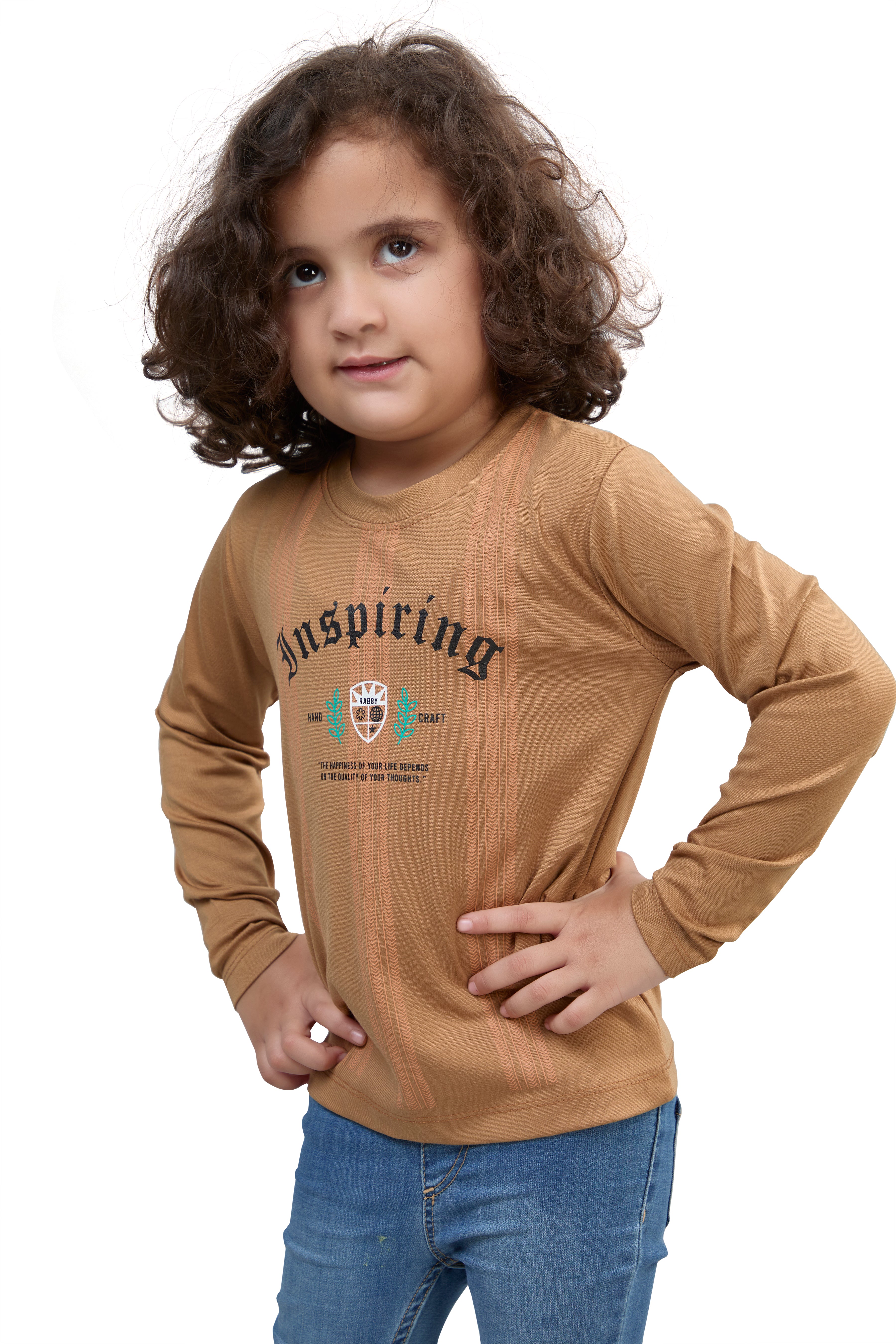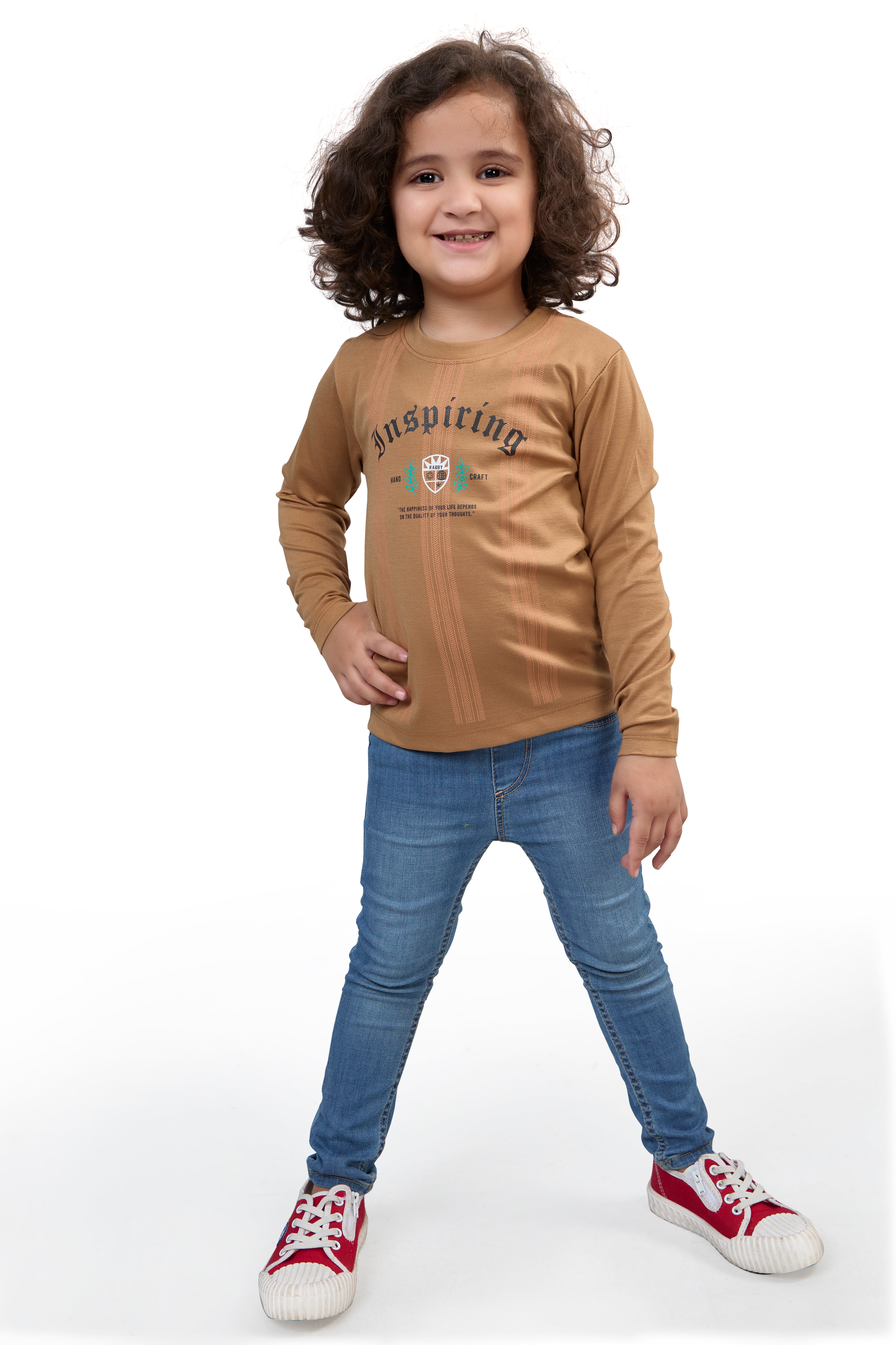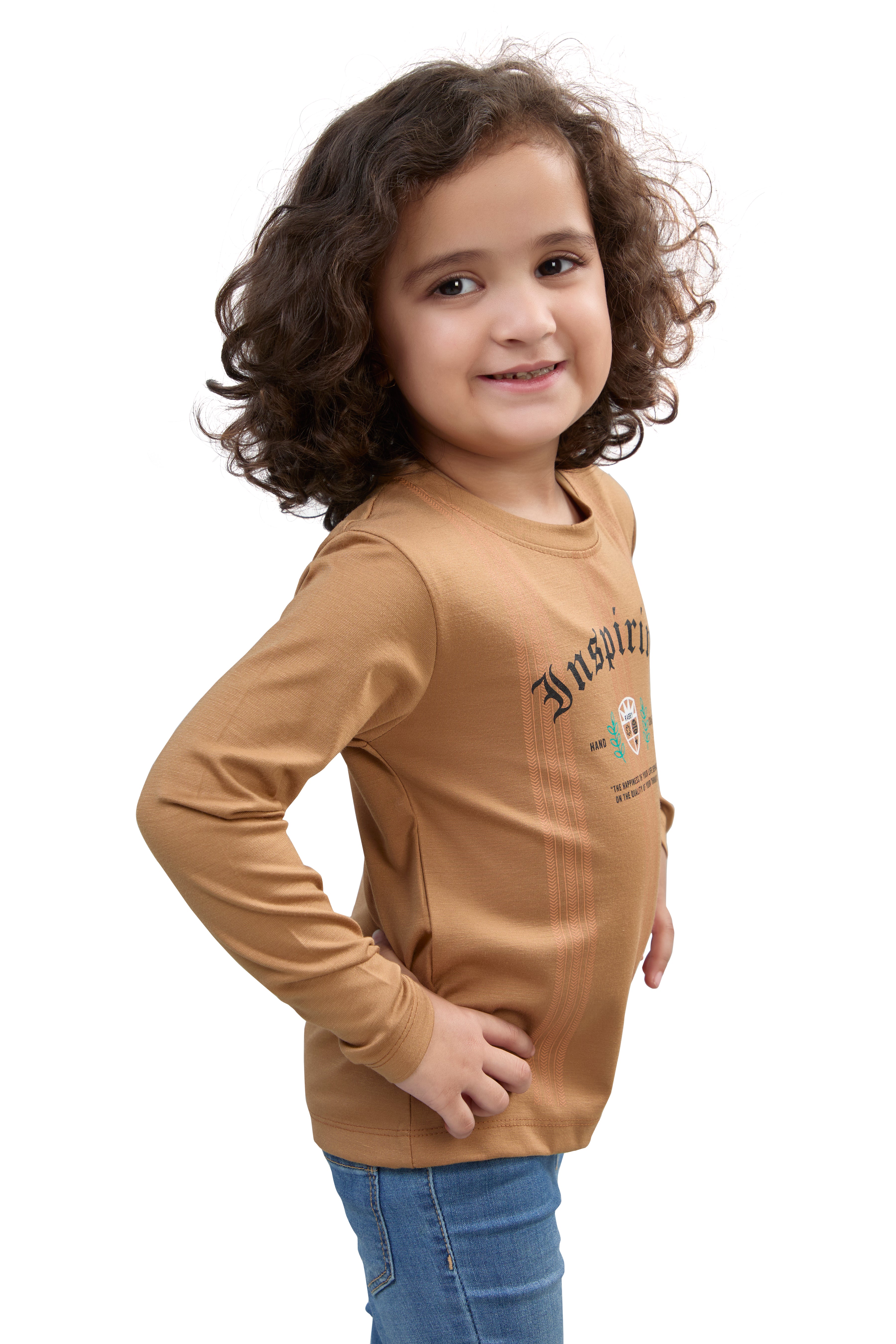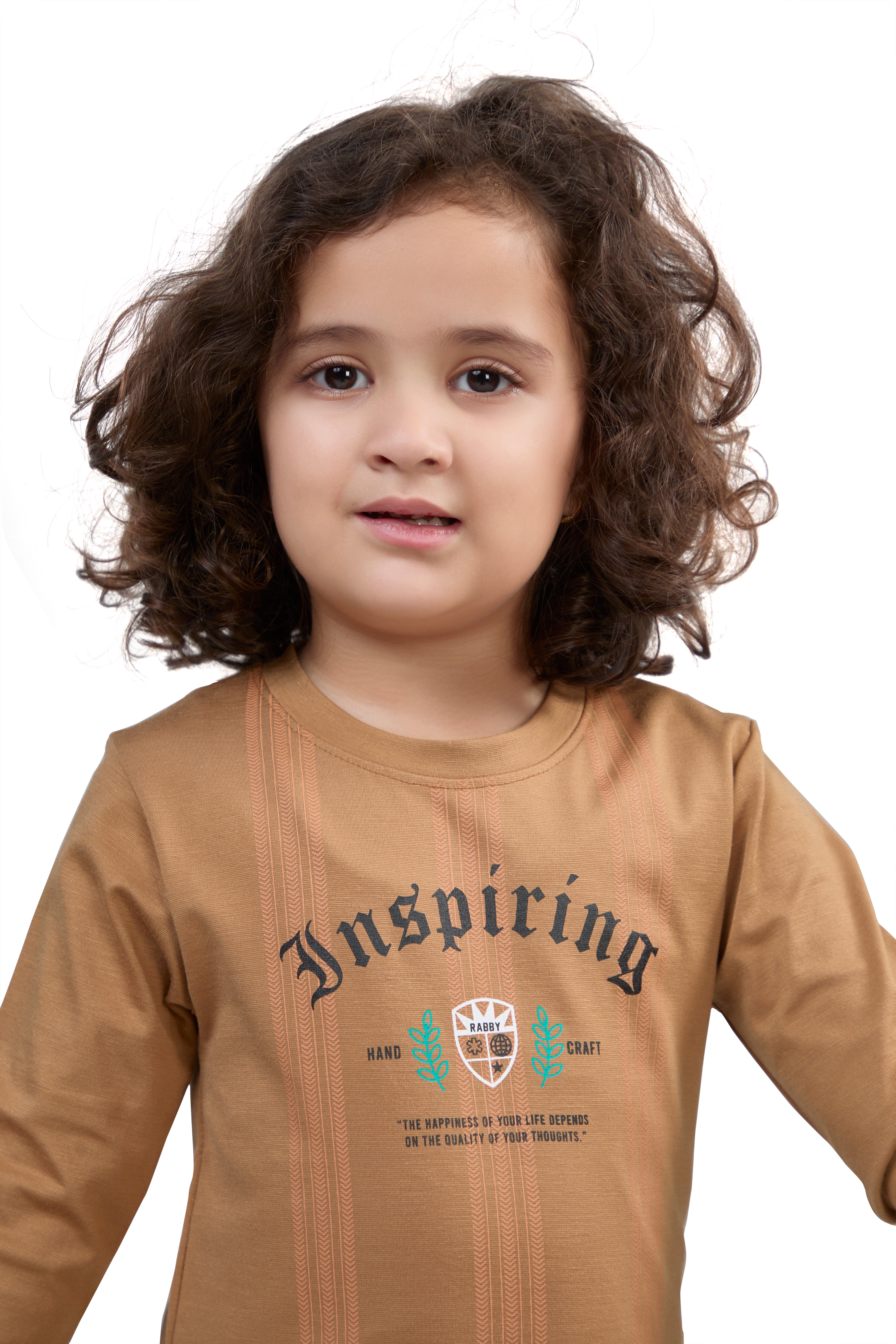 Camel Brown Inspiring Graphic Girls’ Full Sleeves T-Shirt