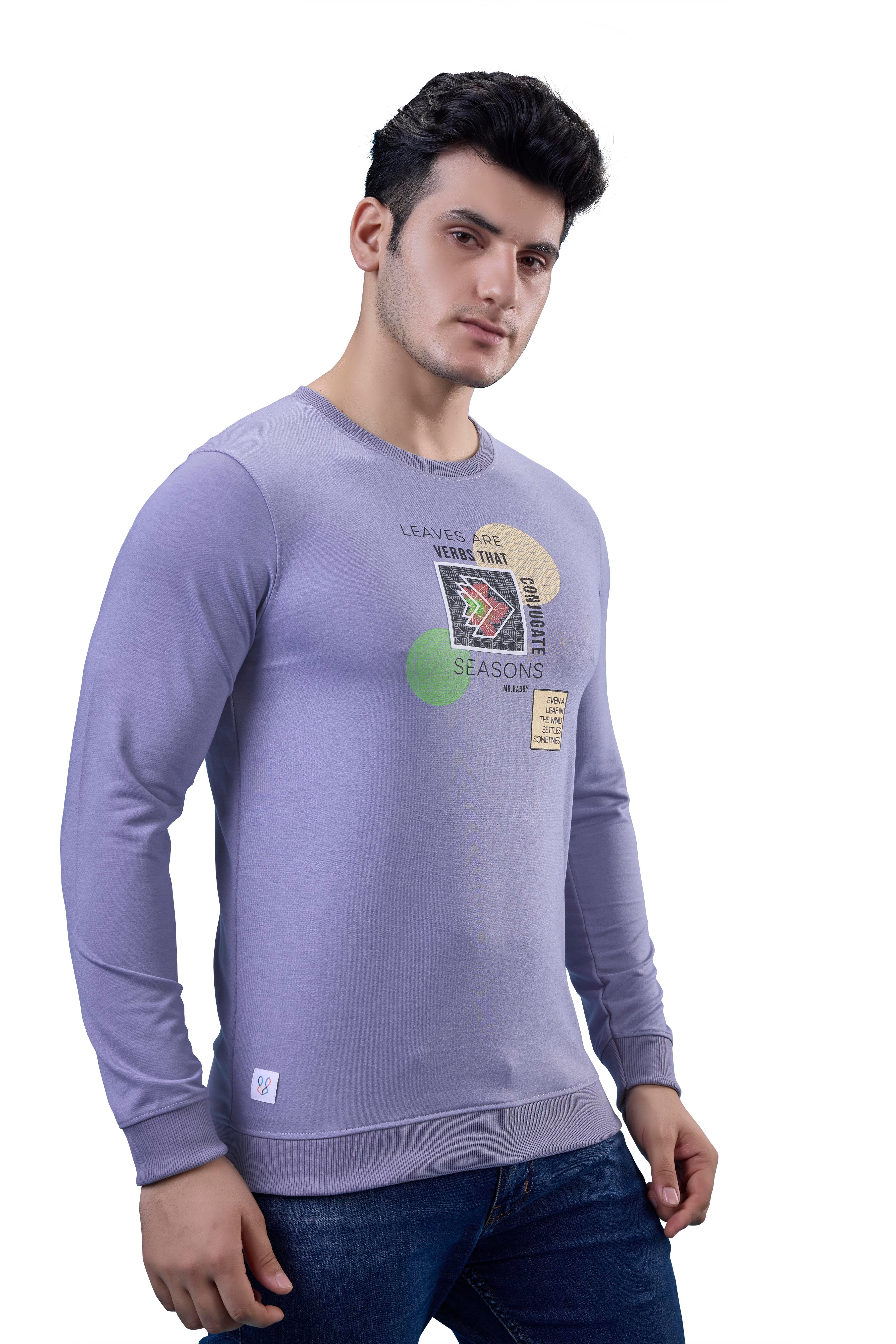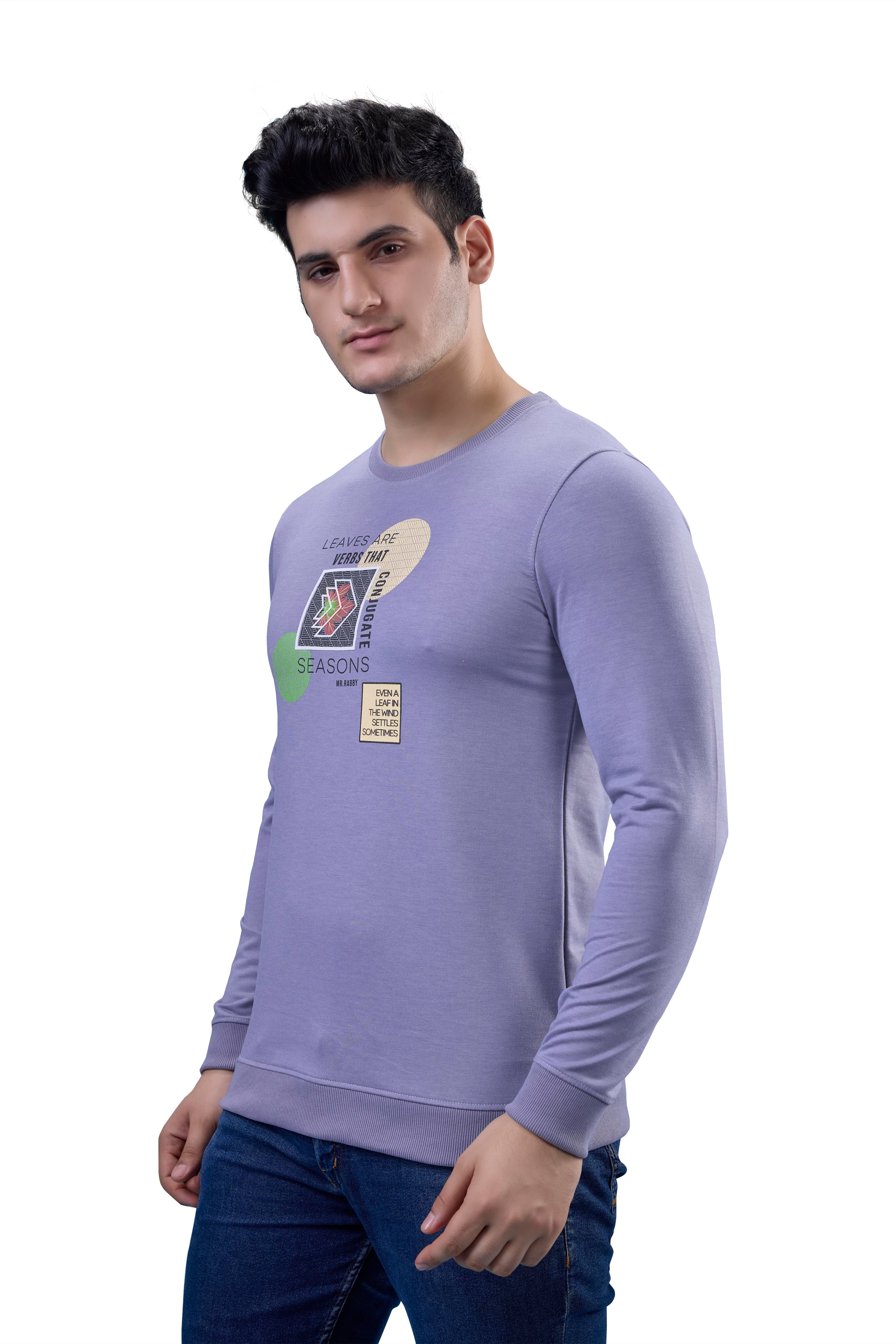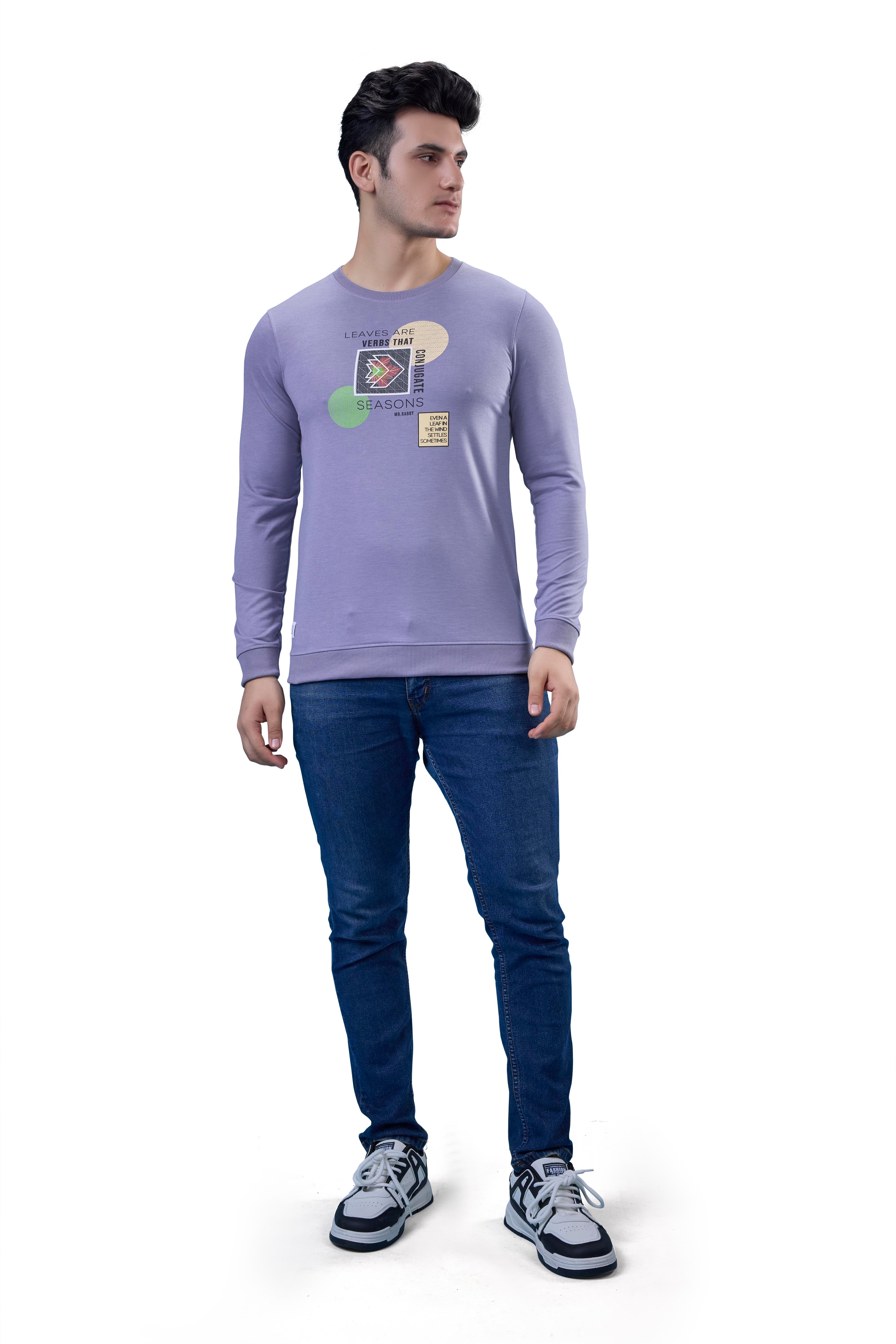 Soft yet stylish, this Lavender Graphic Full Sleeves Tee adds a pop of color and comfort to daily dressing.