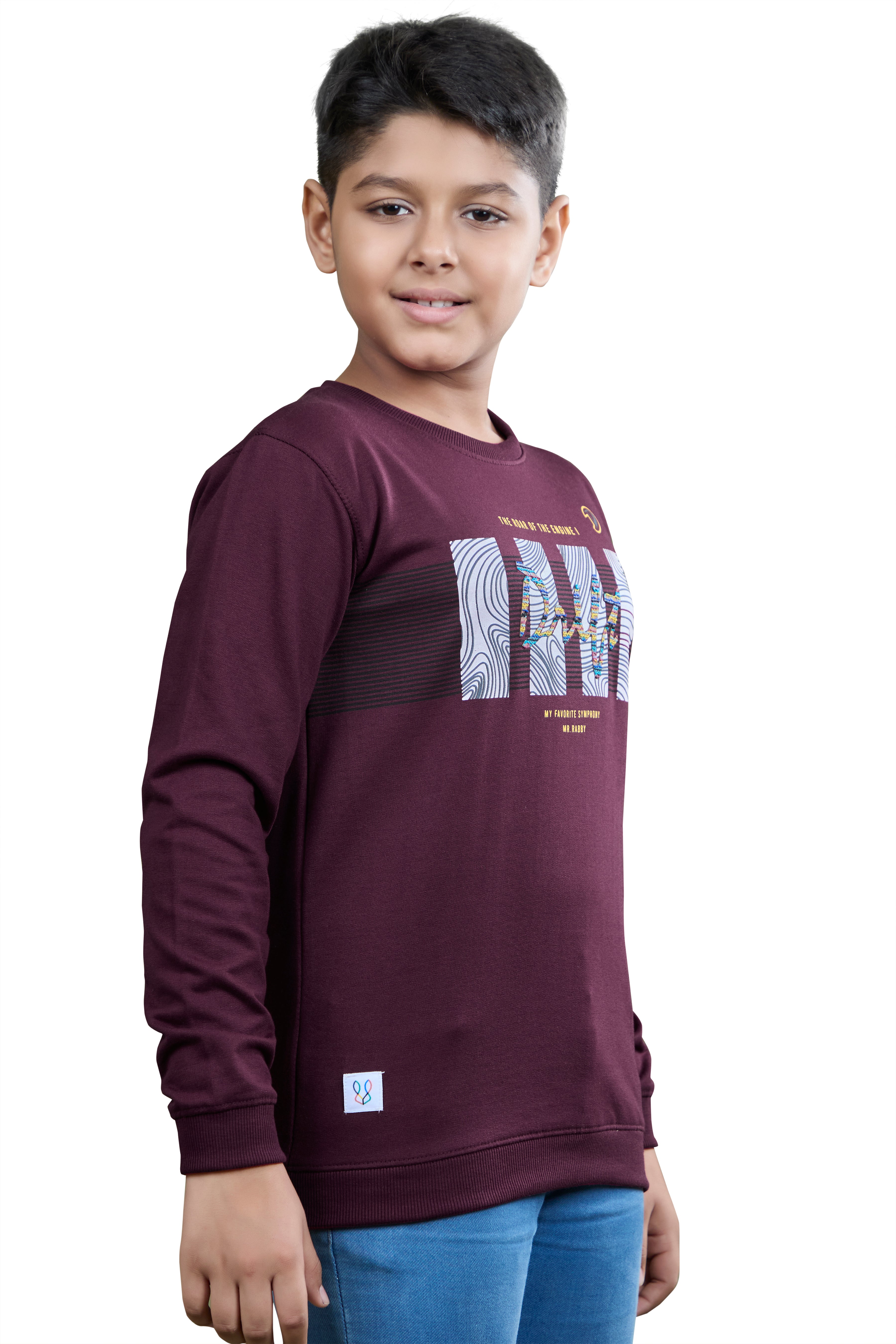 Add a touch of bold style to your boy’s wardrobe with the Maroon Drift Graphic Sweatshirt. Crafted from a soft cotton blend, it ensures comfort and warmth while the striking graphic print brings an energetic edge to his everyday look.