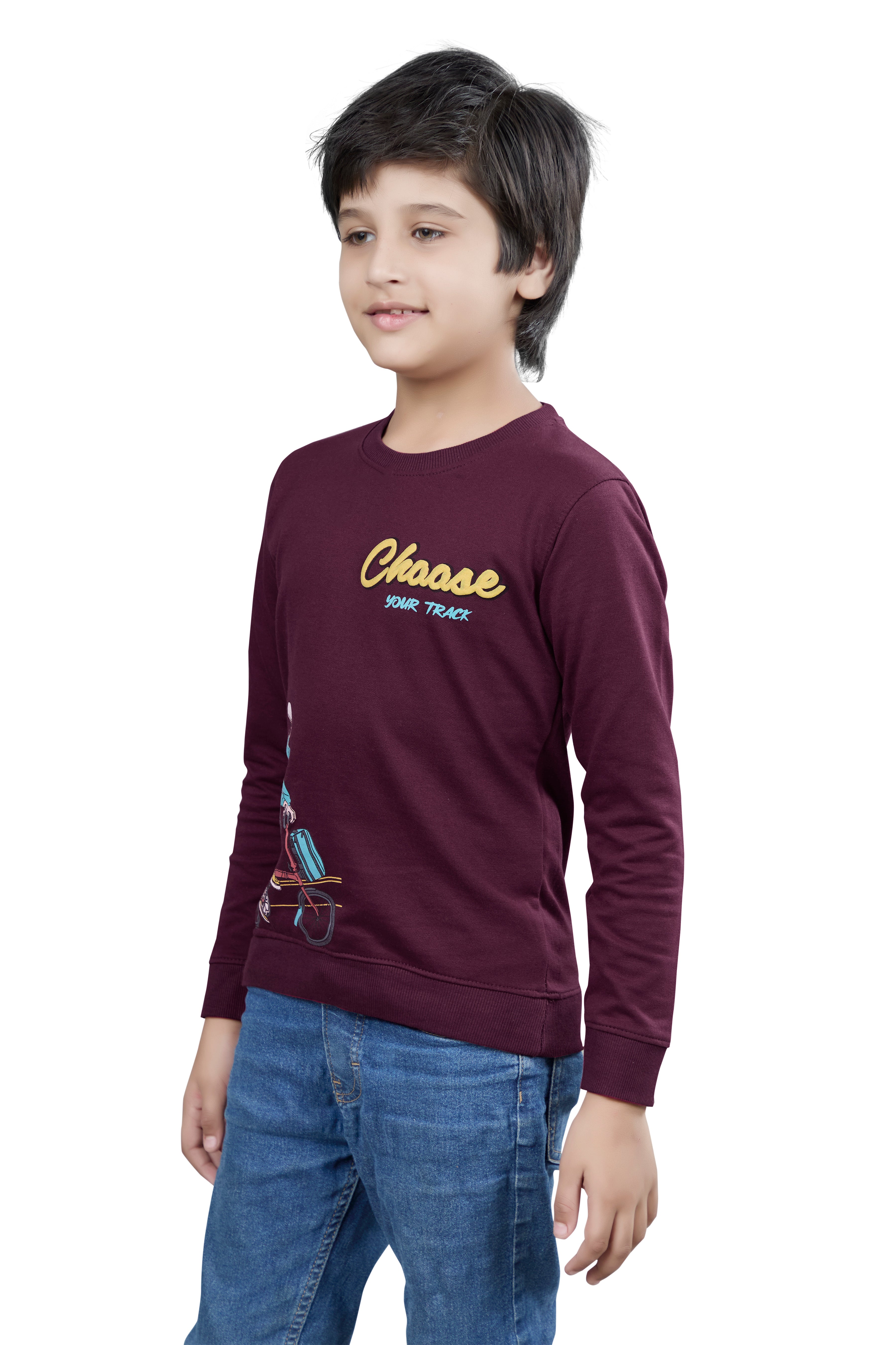 Maroon Graphic Print Boys Full Sleeves T-Shirt