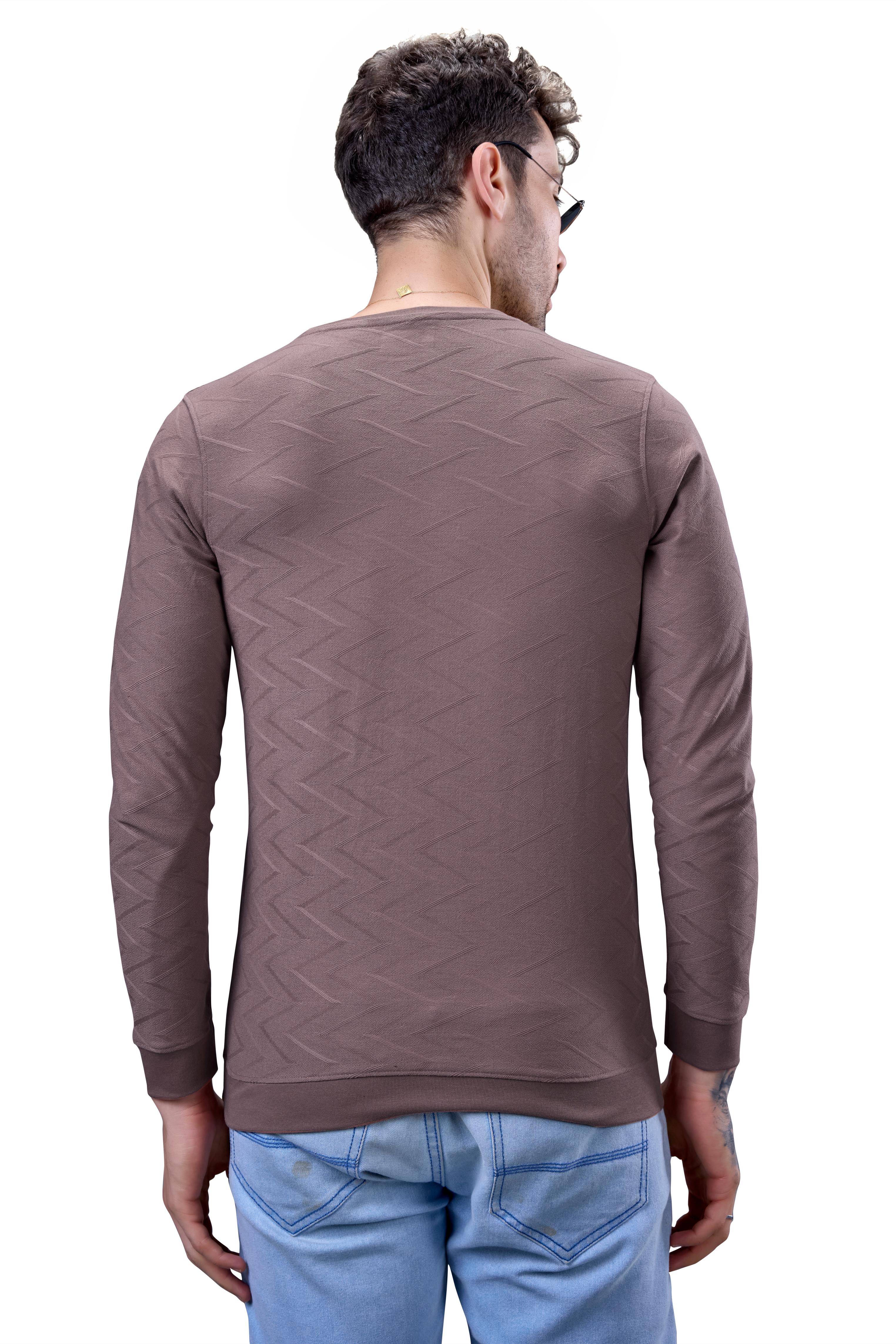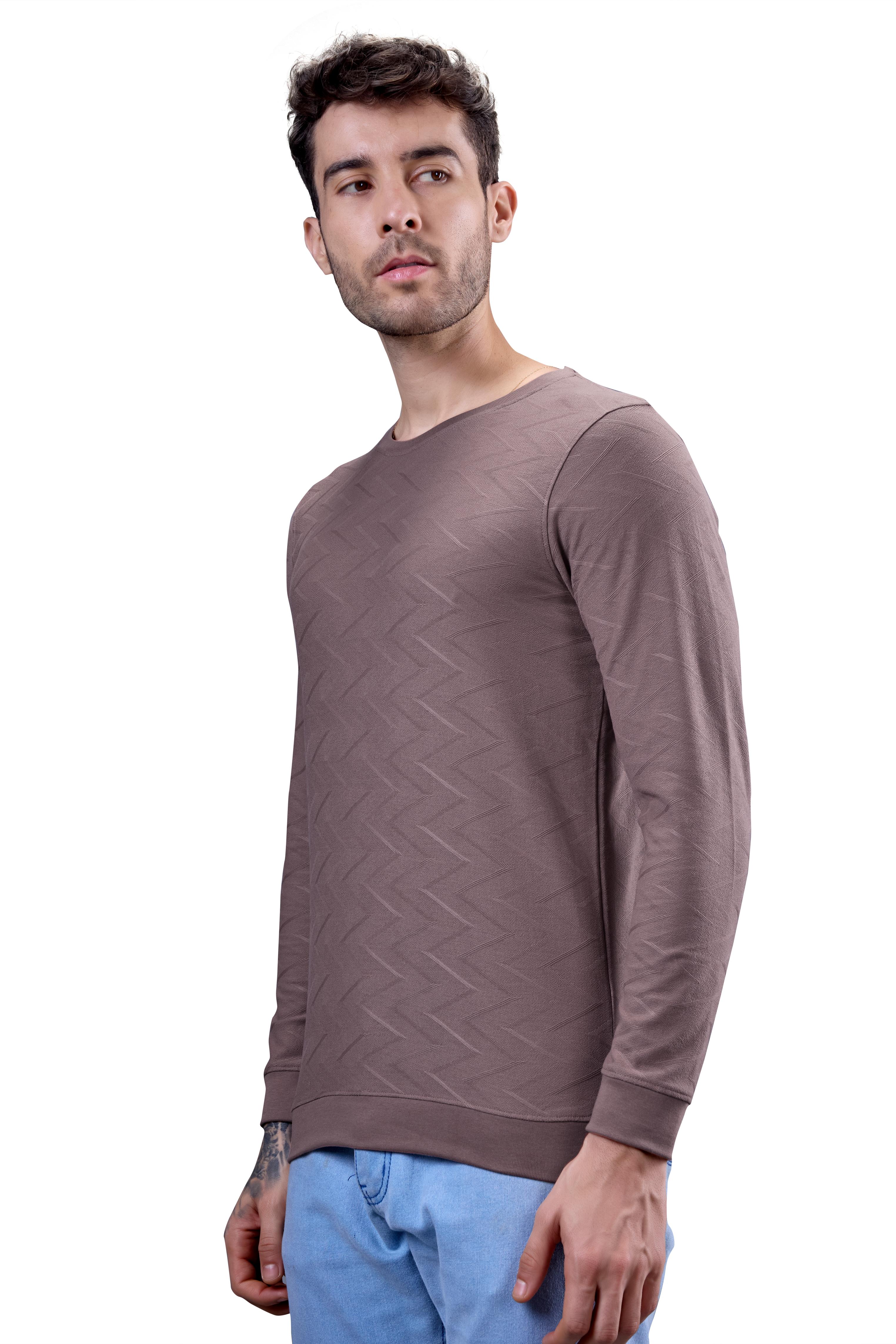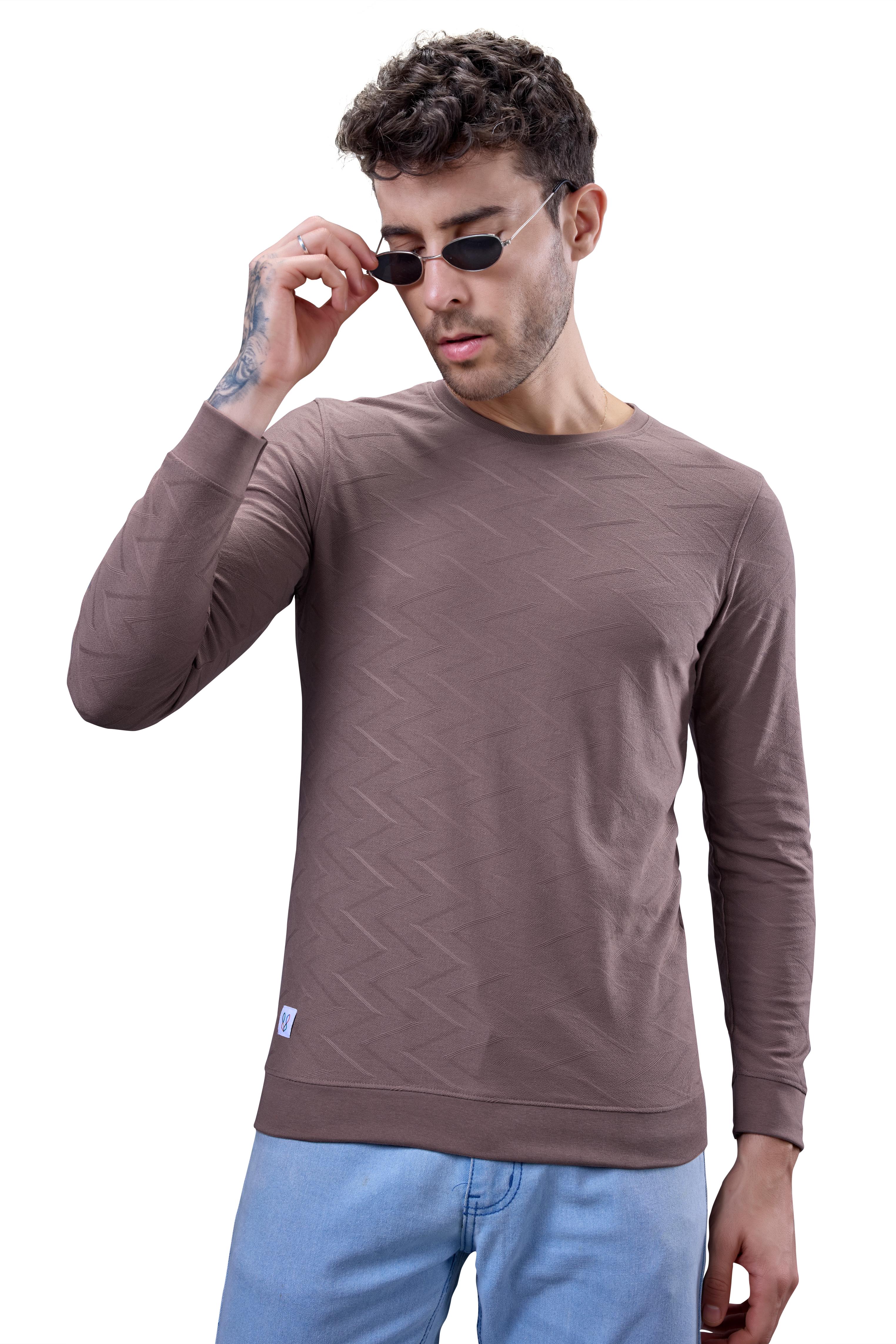 Earthy and easygoing, this Brown Textured Full Sleeves Tee makes for a smart everyday staple.
