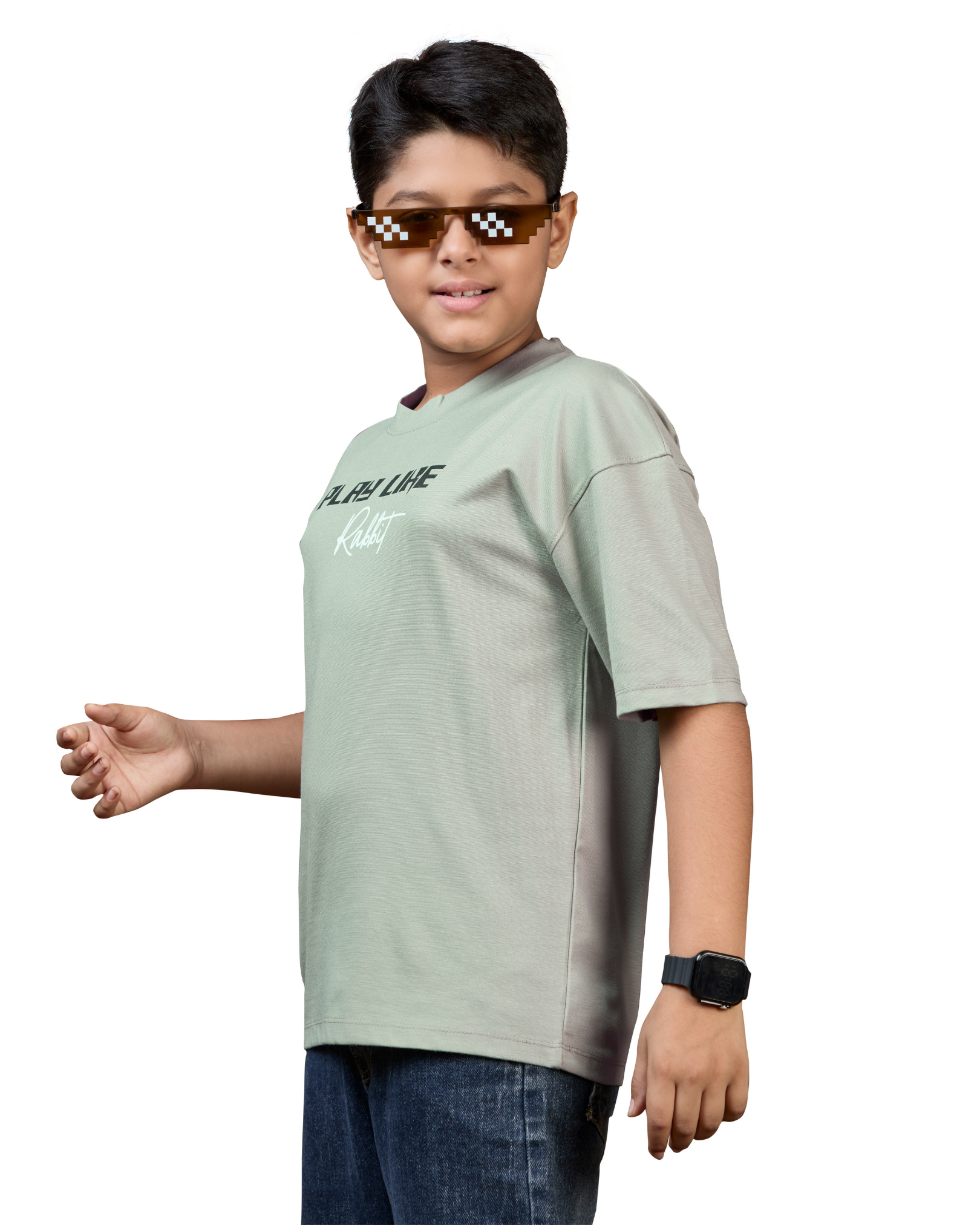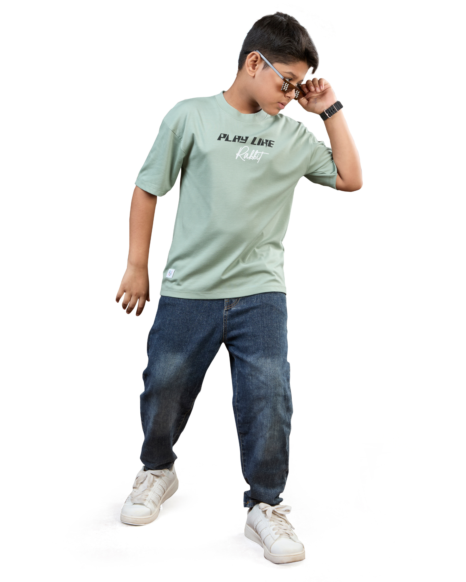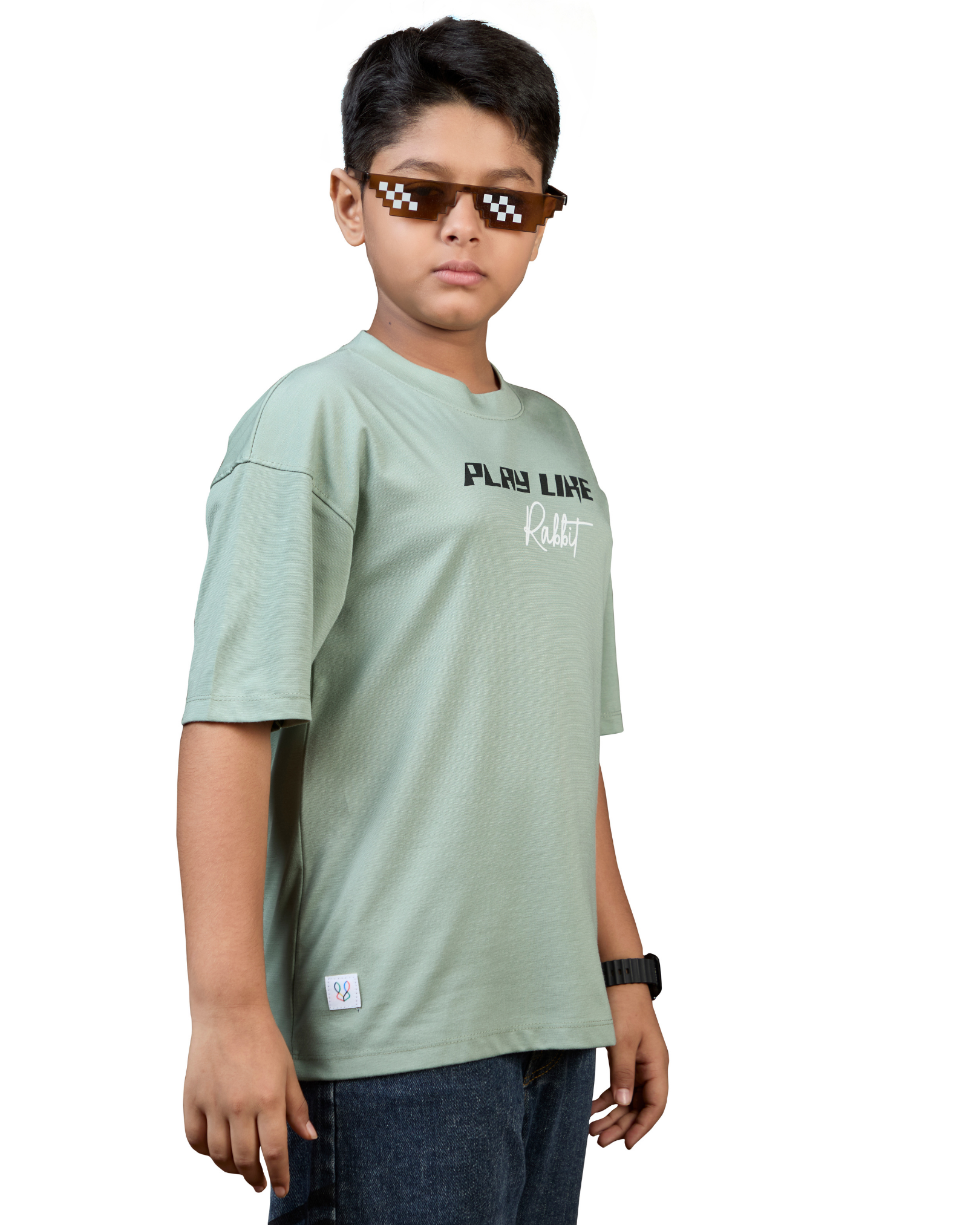 Mint Green Play Like Rabbit Graphic Boys T-Shirt