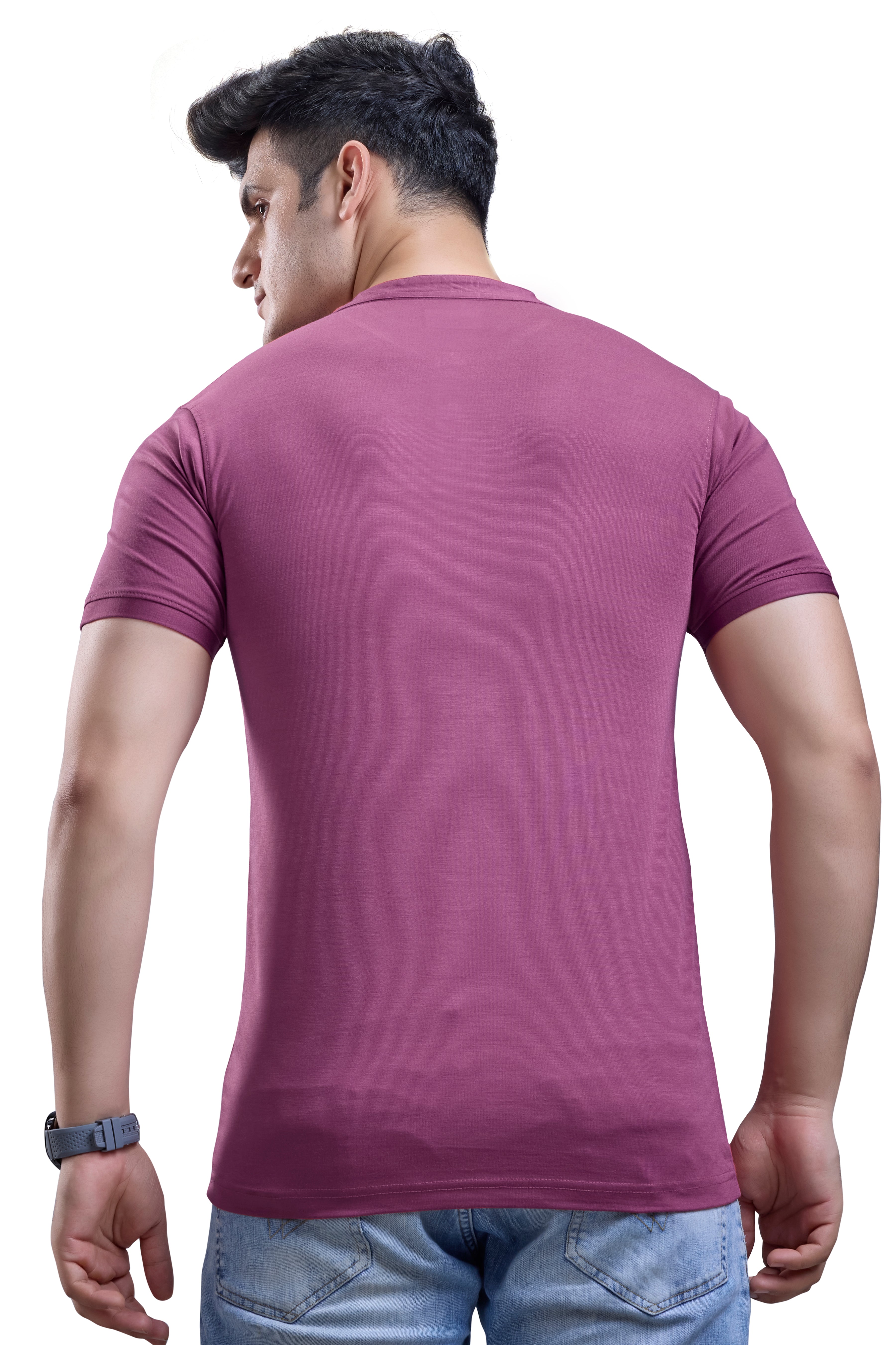 Magenta Rose Mandarin Collar Graphic T-Shirt