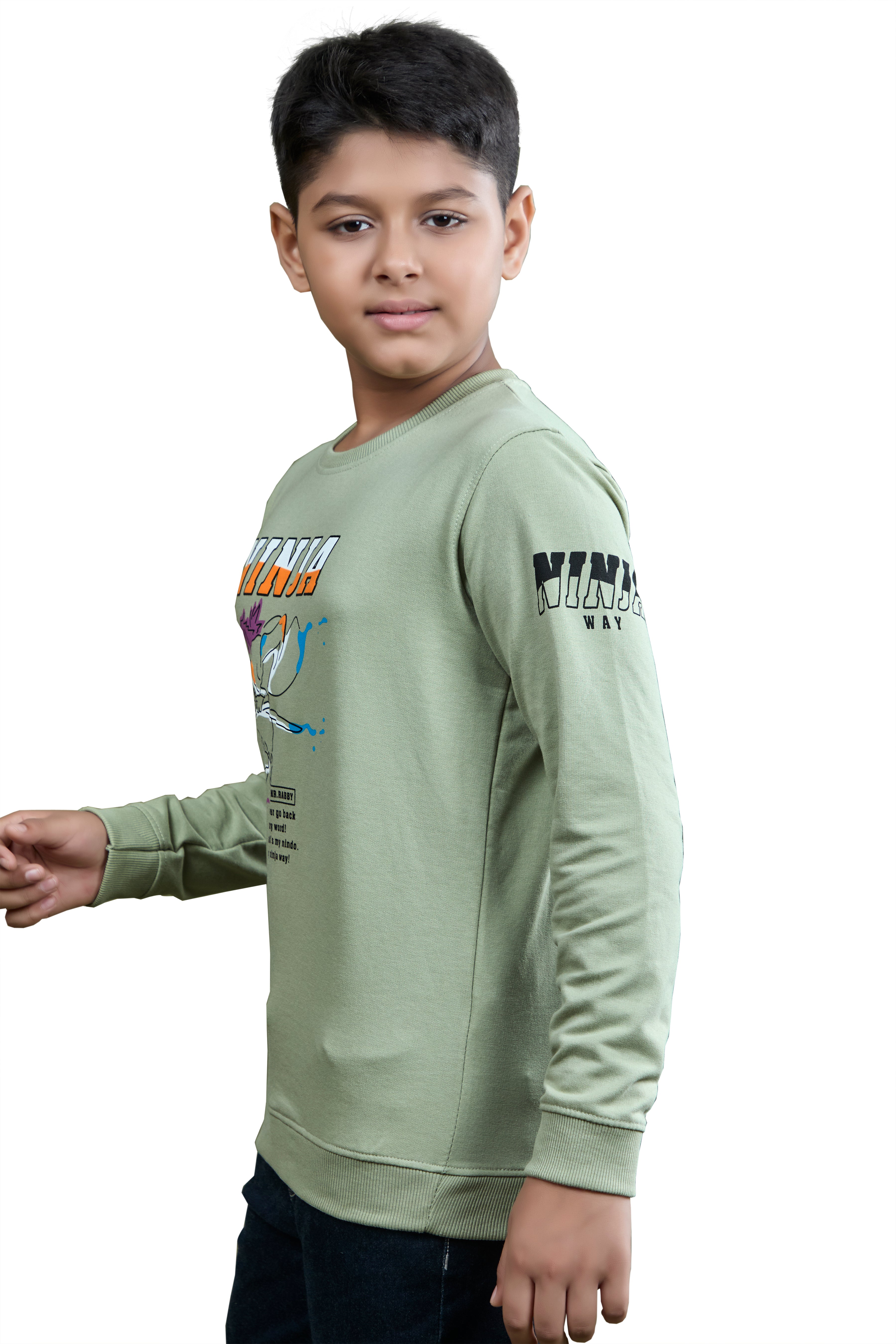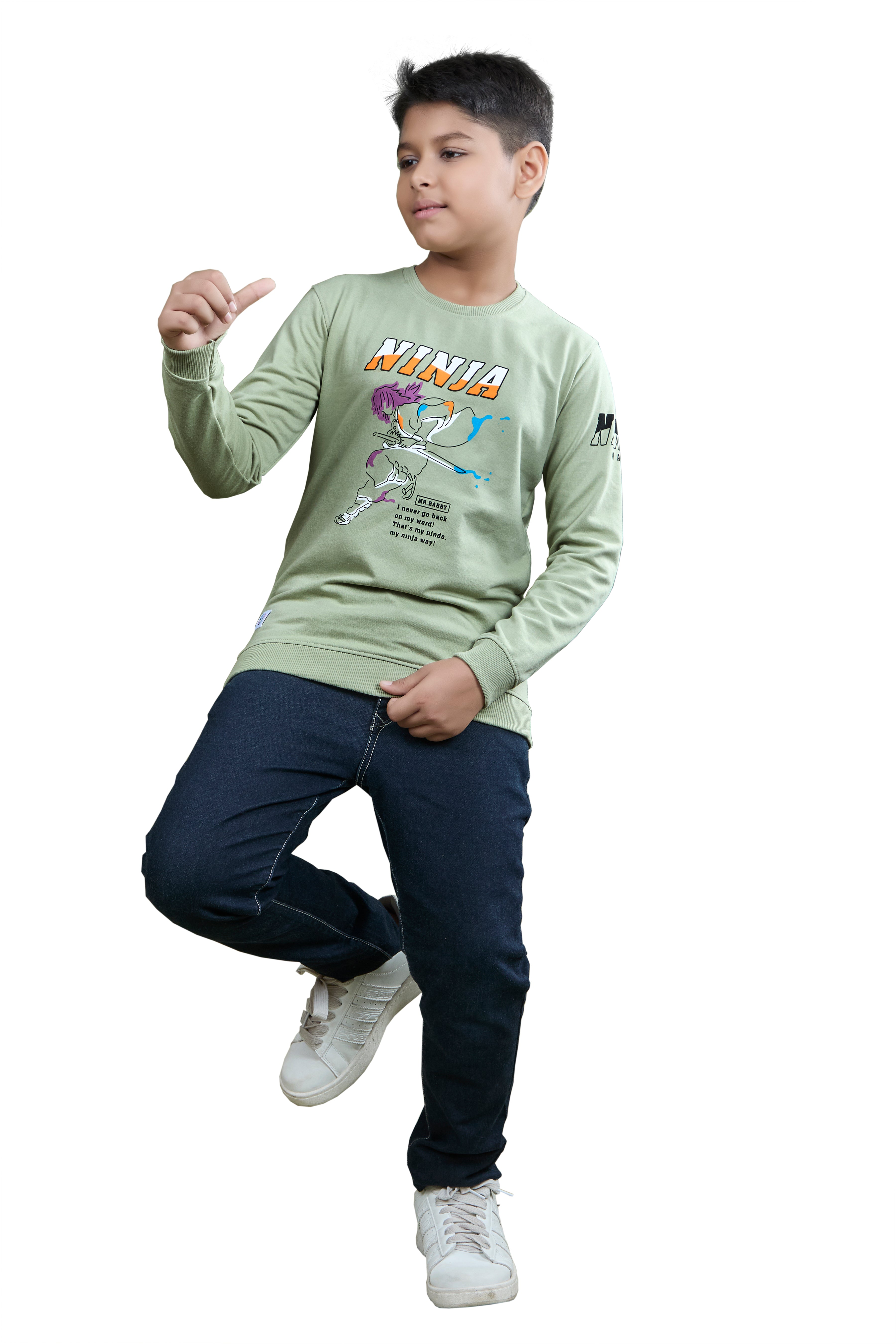 Let your champ embrace his adventurous side with the Sage Green Ninja Graphic Sweatshirt. Made from a soft cotton blend, it offers all-day comfort while the bold ninja print adds a fun, energetic vibe. Perfect for casual outings, playtime, or daily wear.