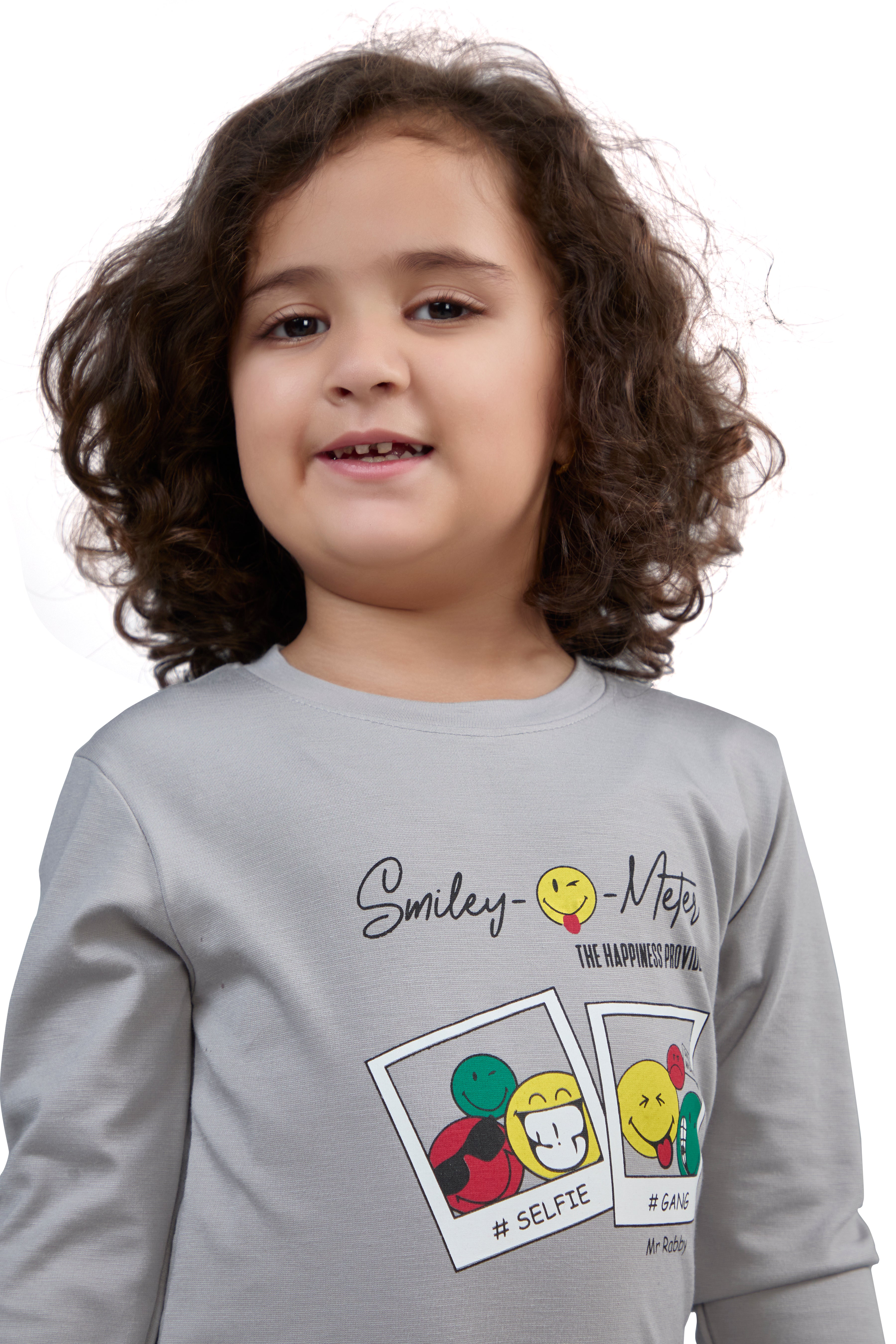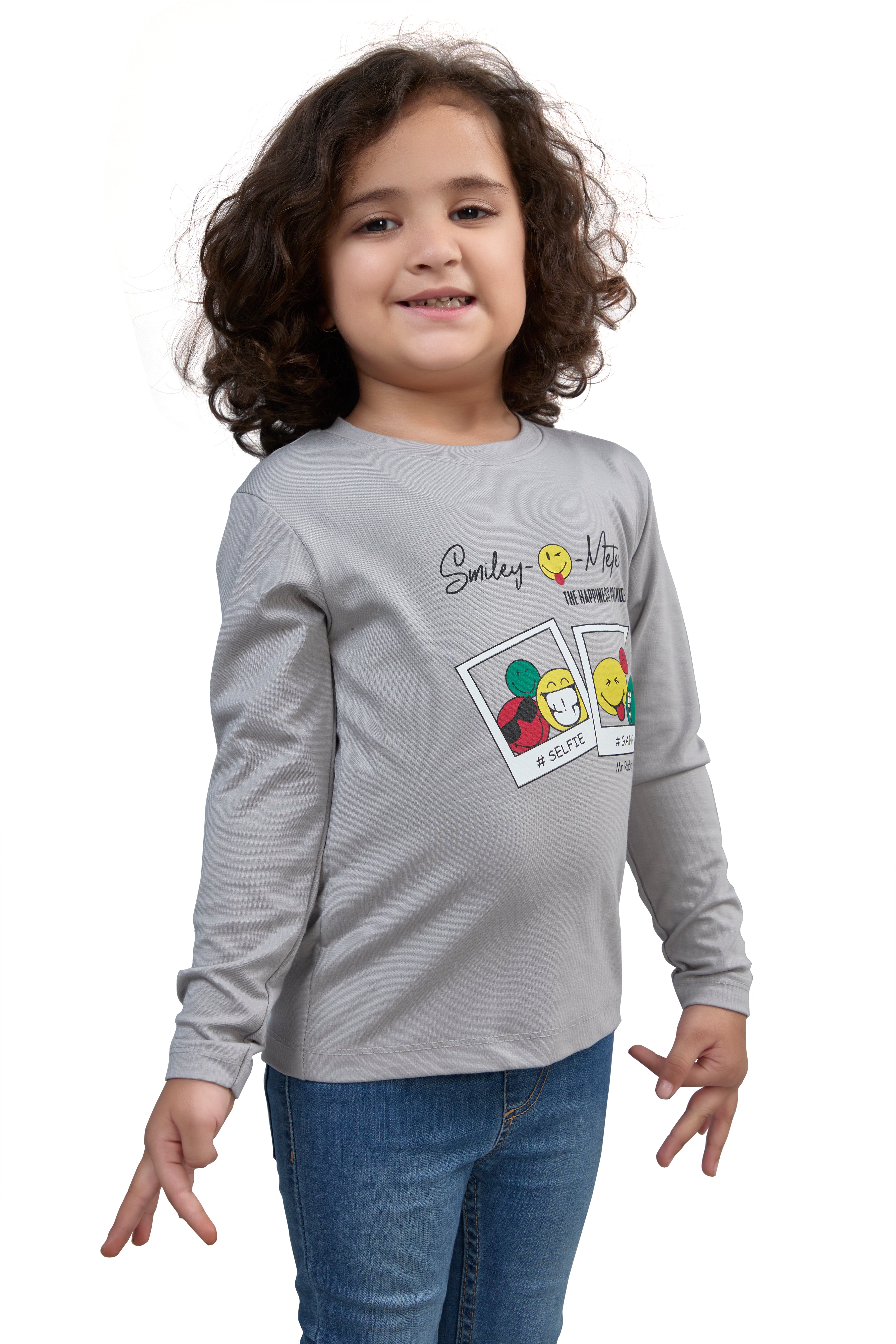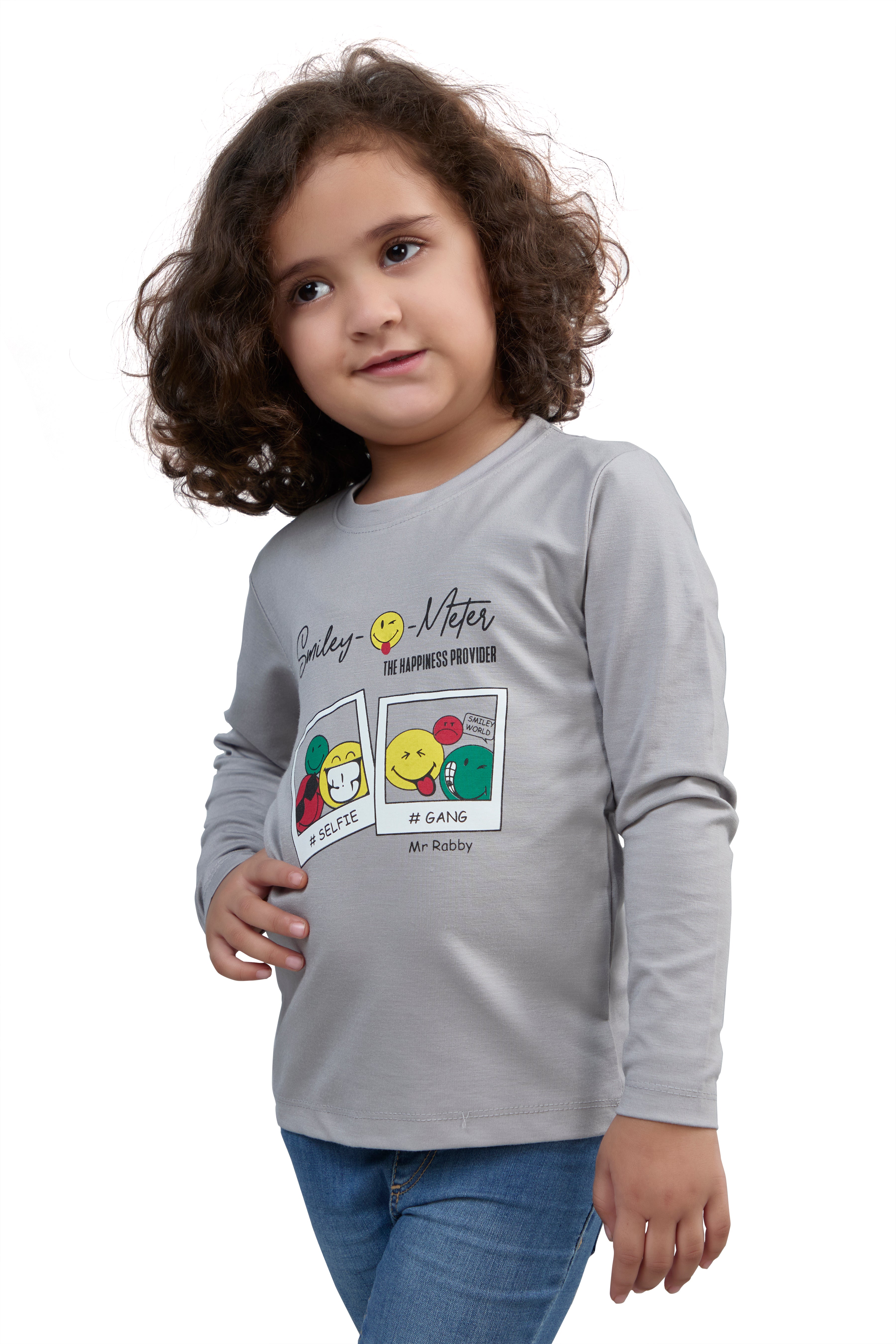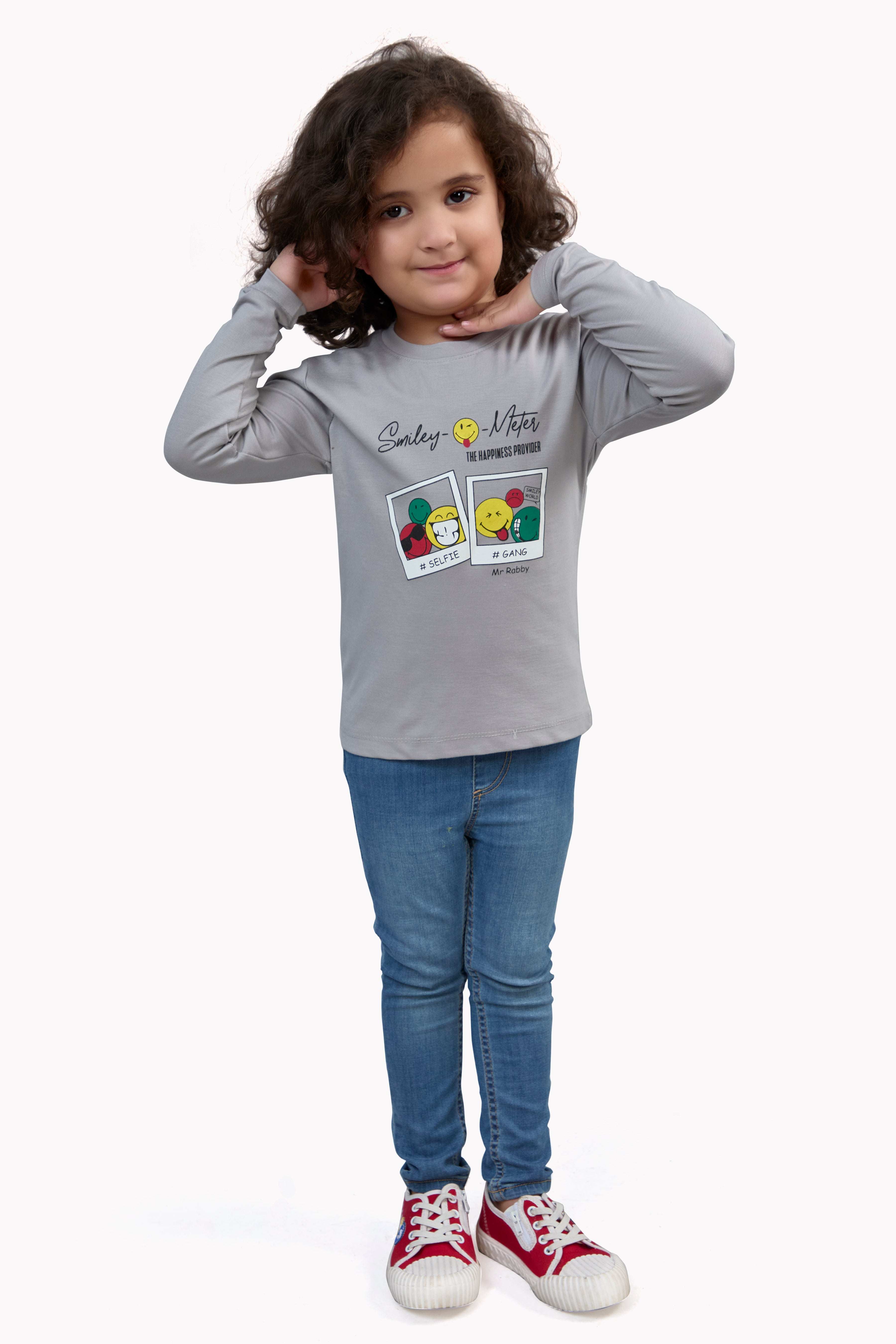 Cloud Grey Smiley Selfie & Gang Graphic Girls’ Full Sleeves T-Shirt