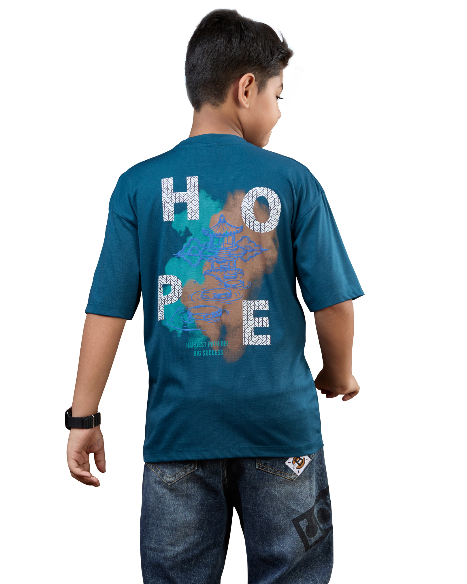 Teal Blue Hope Graphic Boys T-Shirt