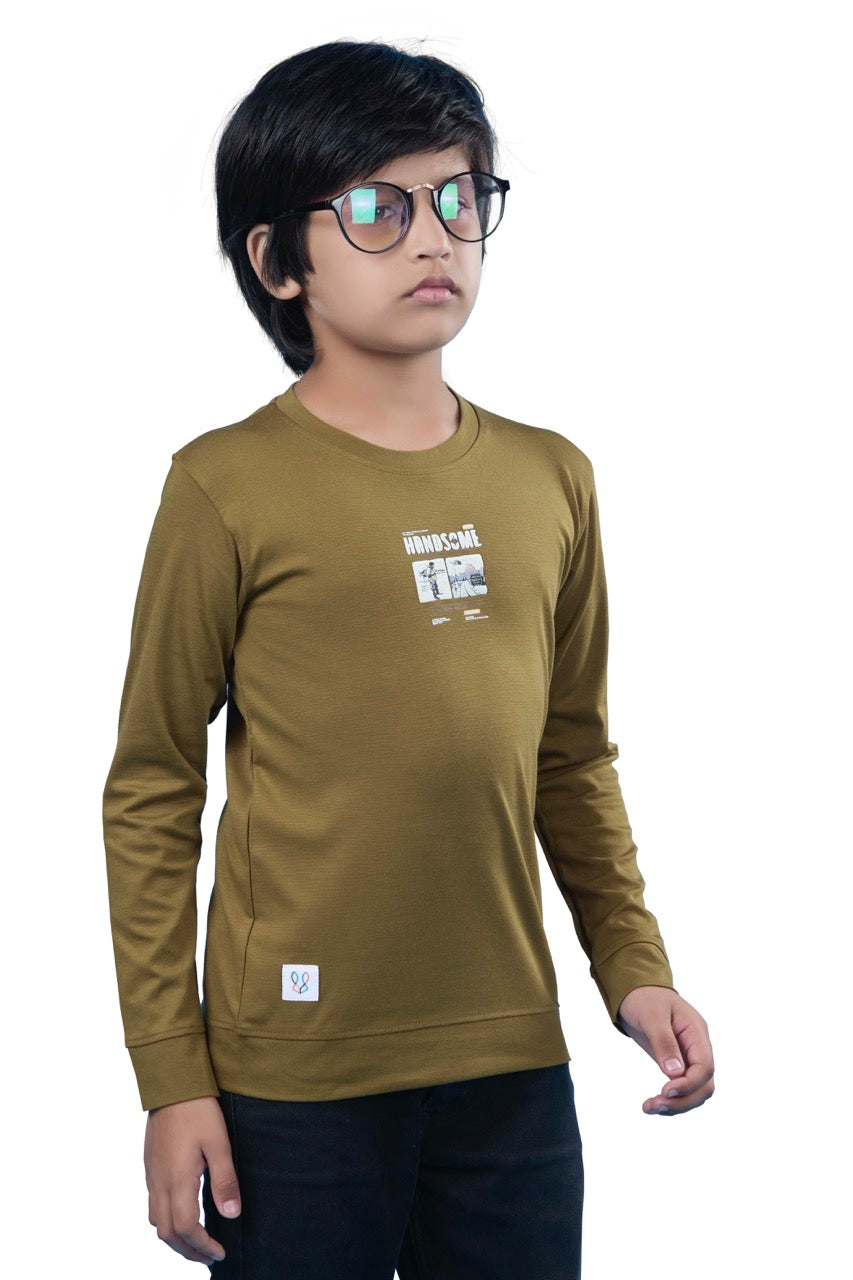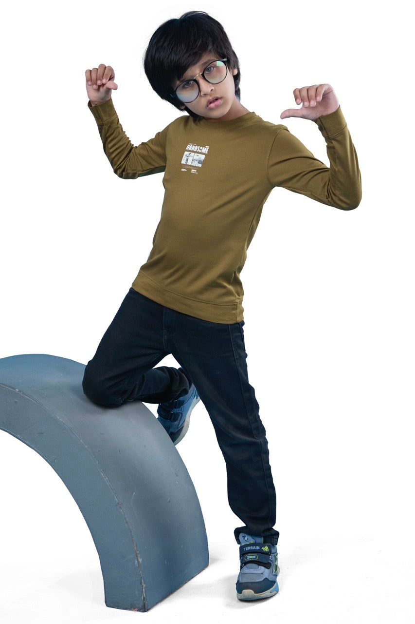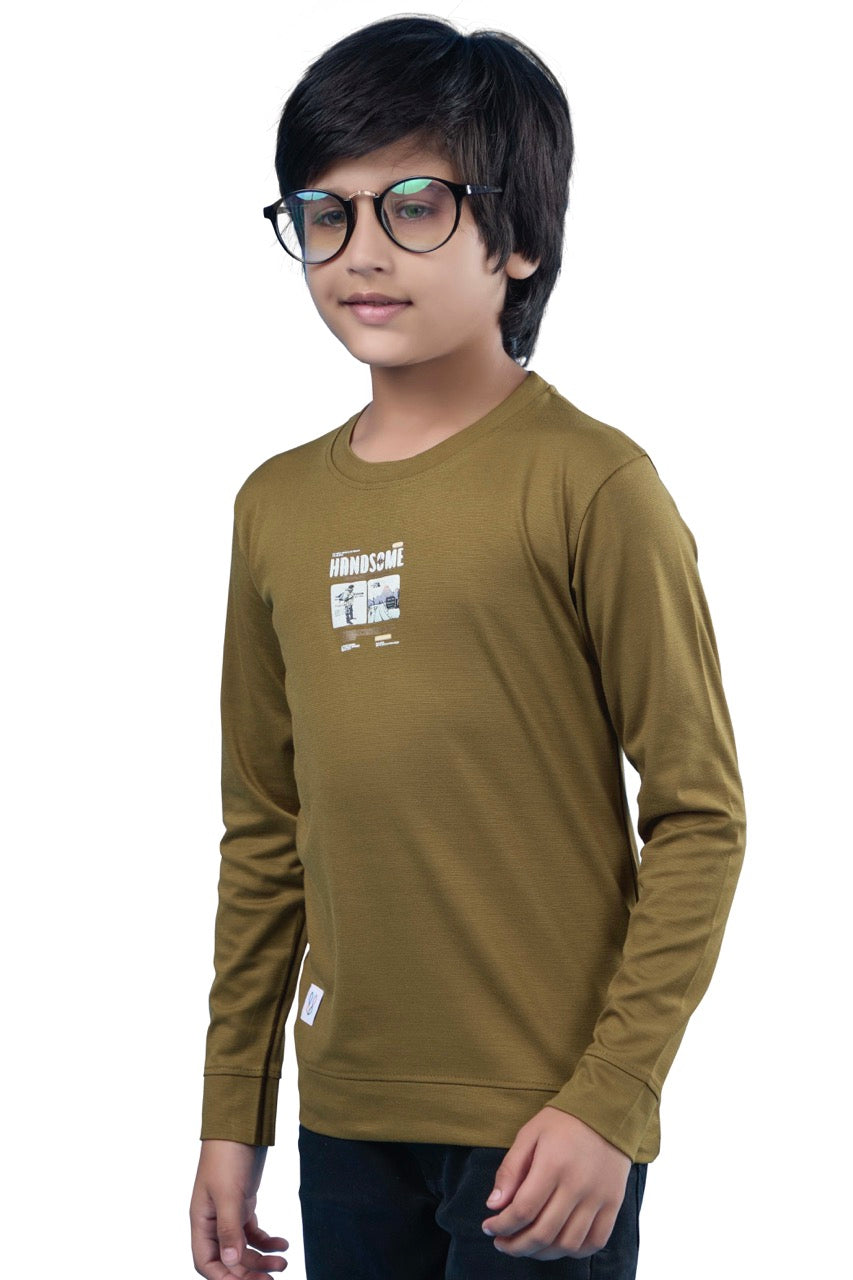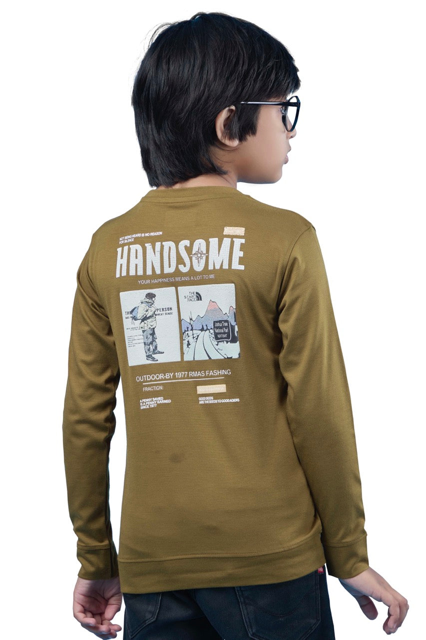 Subtle yet stylish, the Beige Graphic Print Full Sleeves Tee keeps your boy looking cool while staying comfy all day.
