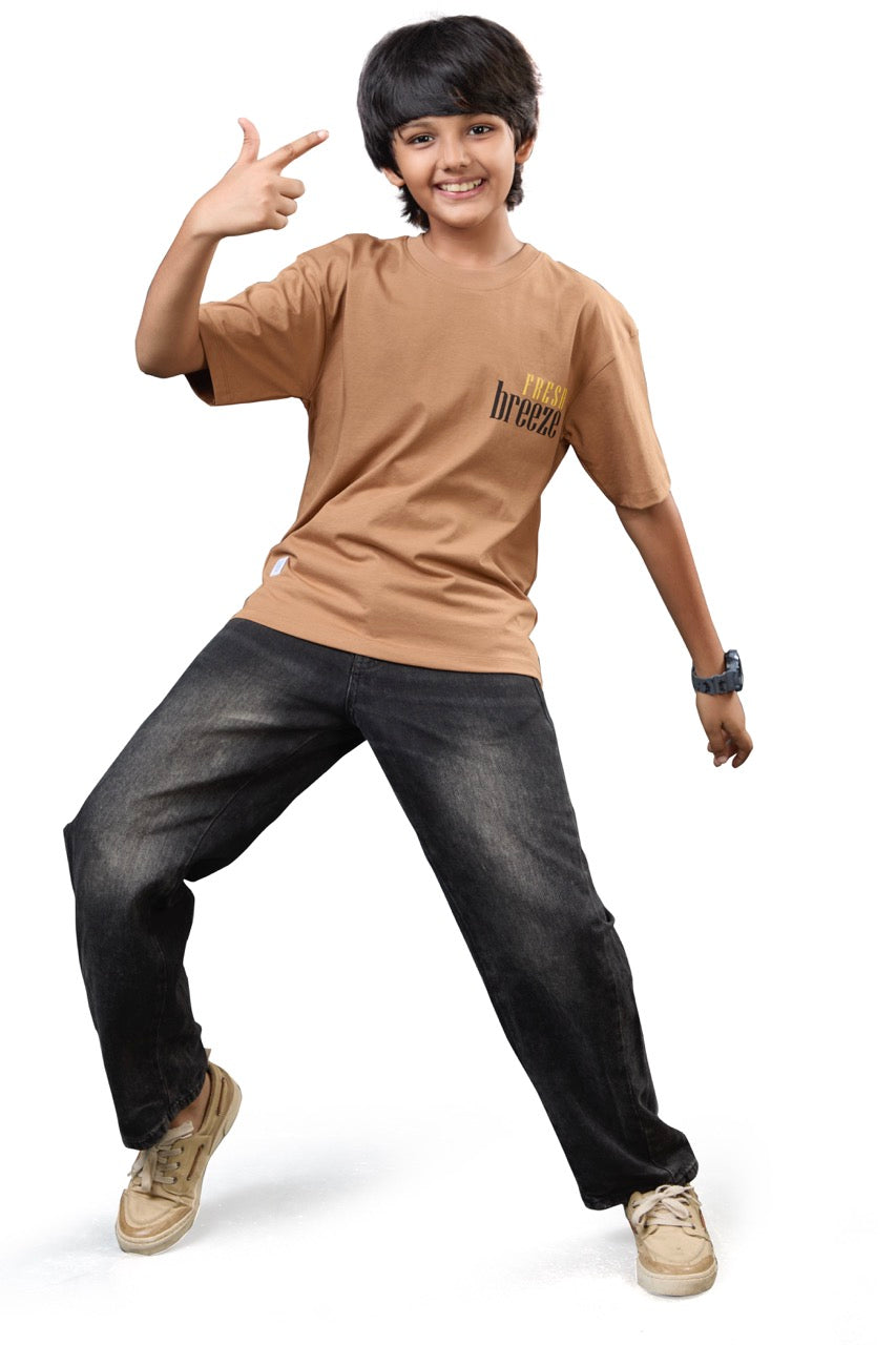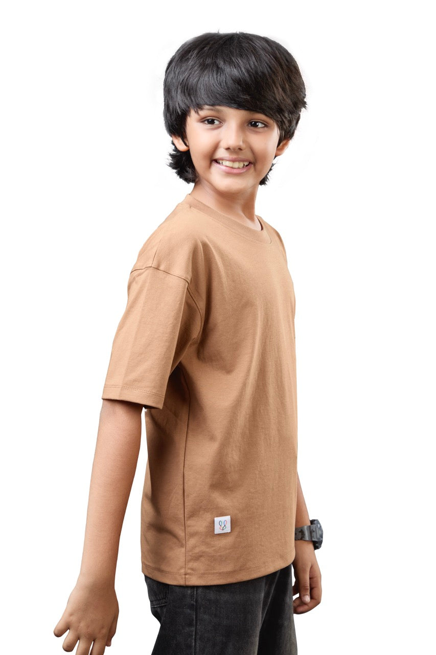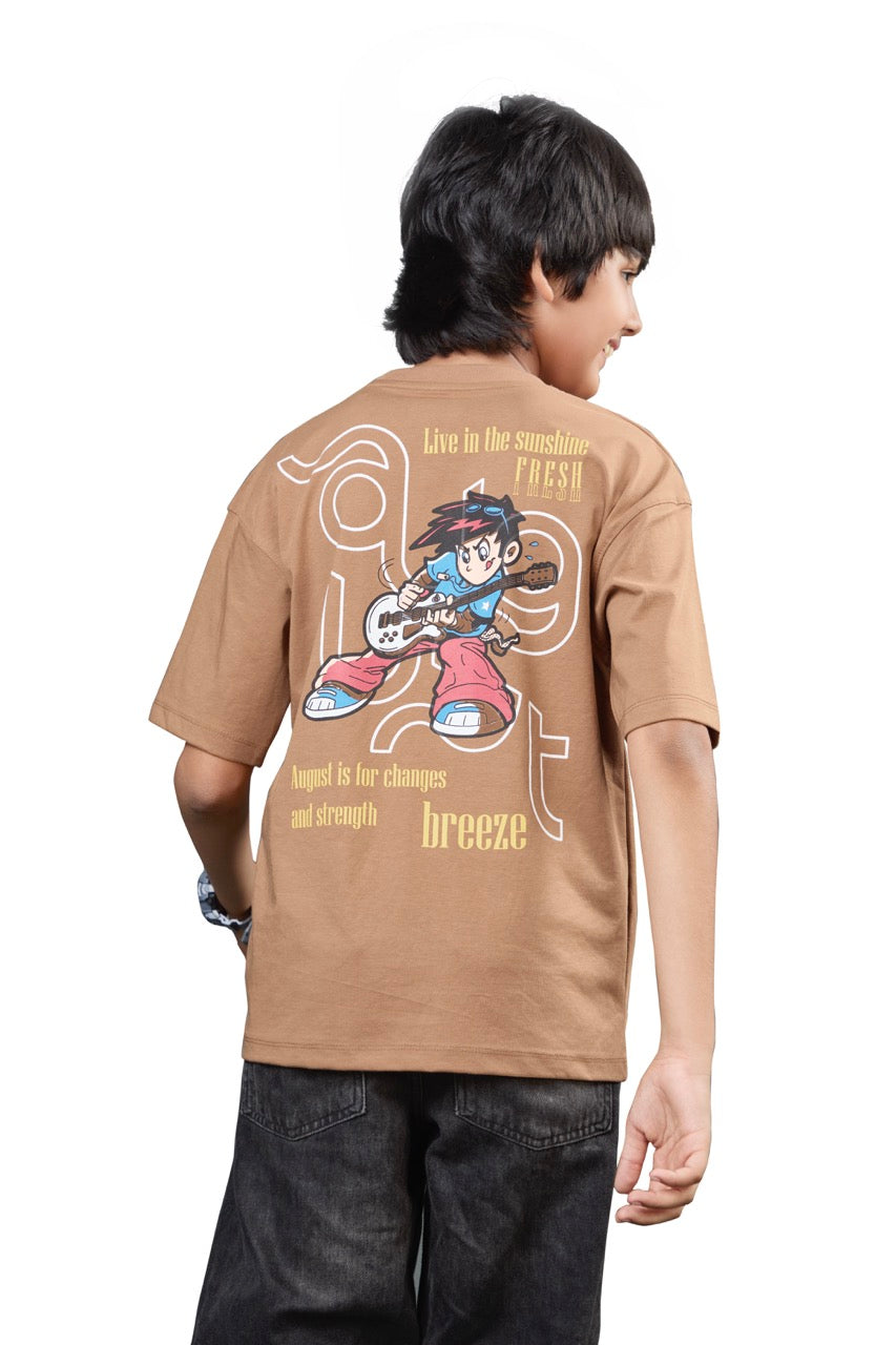 Urban Graphic Kids Half Sleeve Oversized Brown T-Shirt