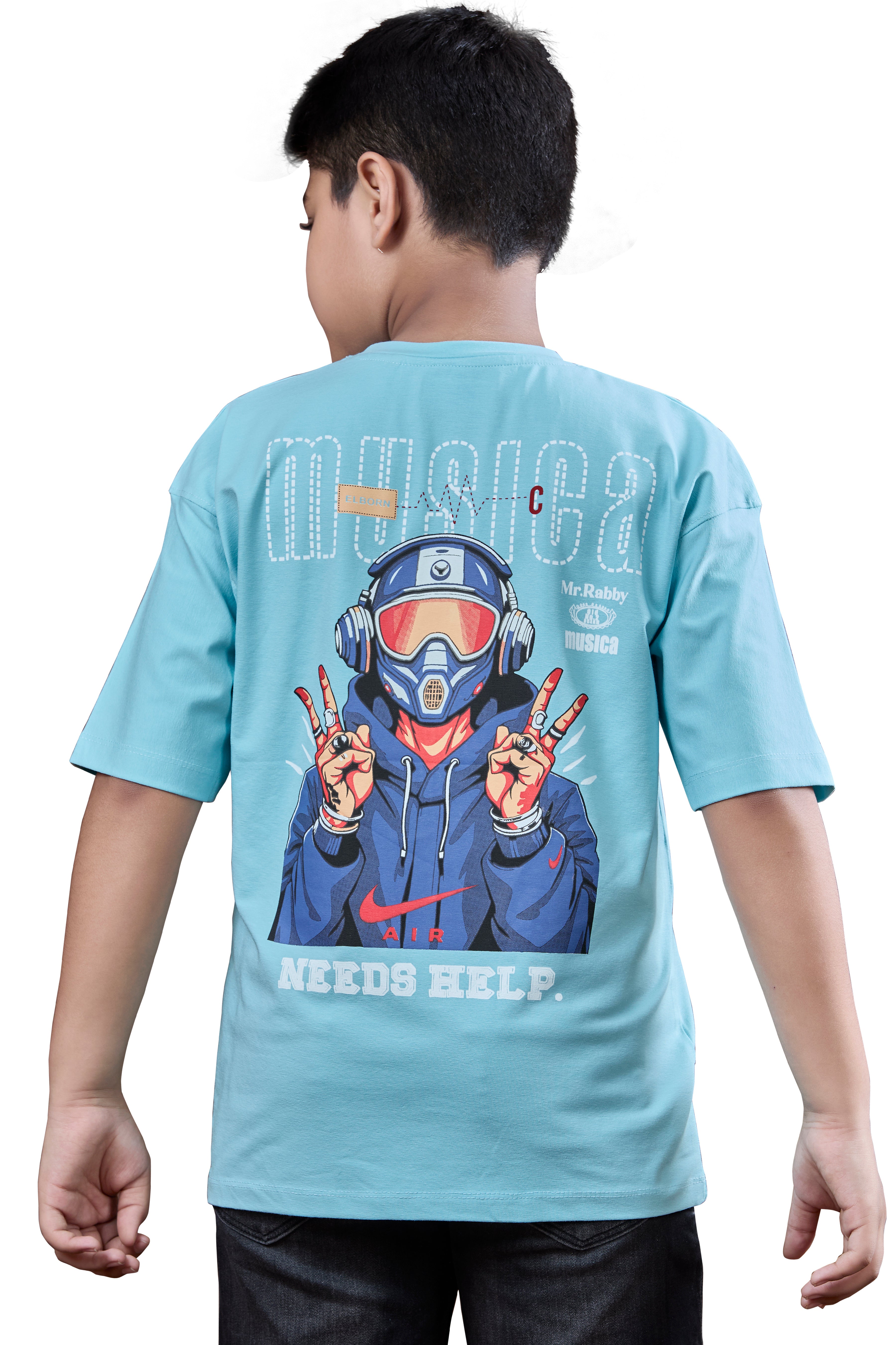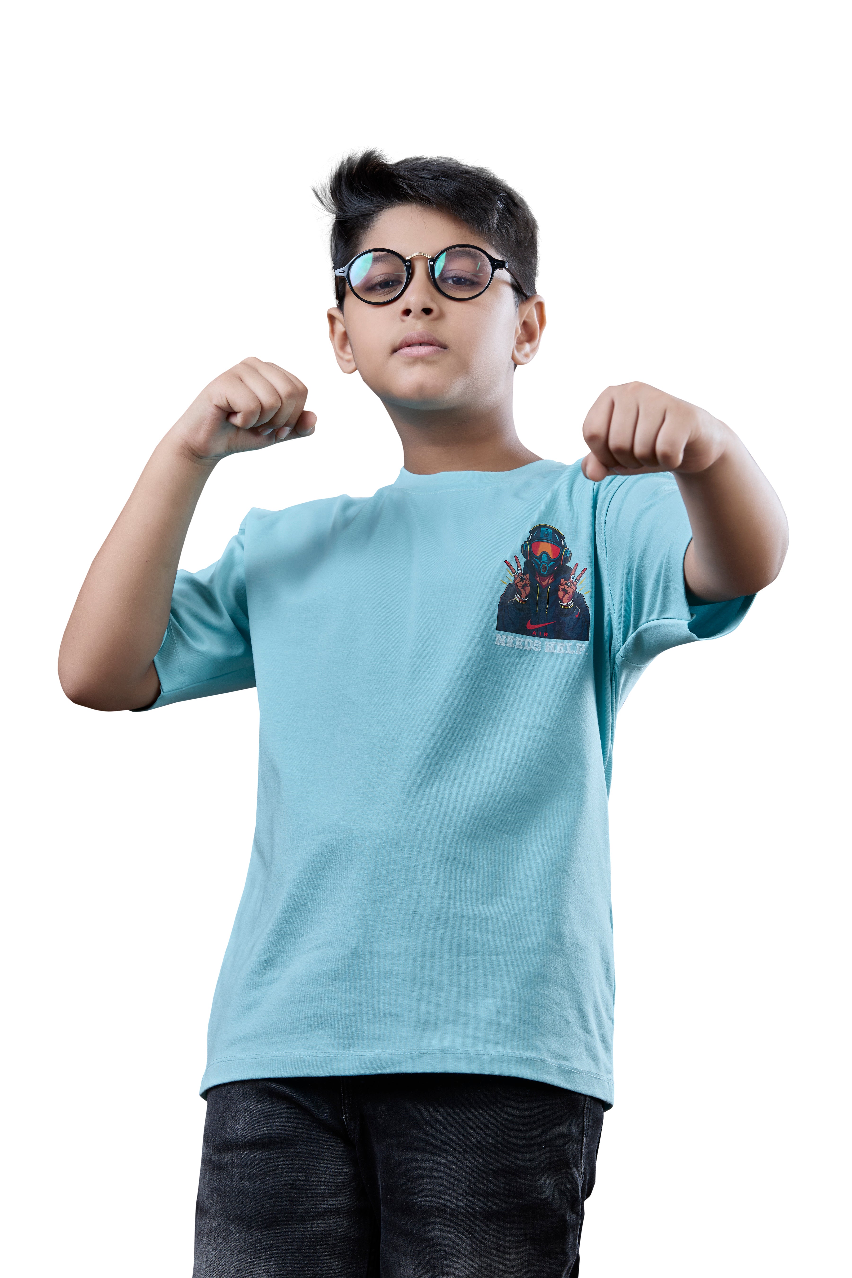Urban Vibe Kids Blue Half Sleeves Drop-Shoulder Tshirt