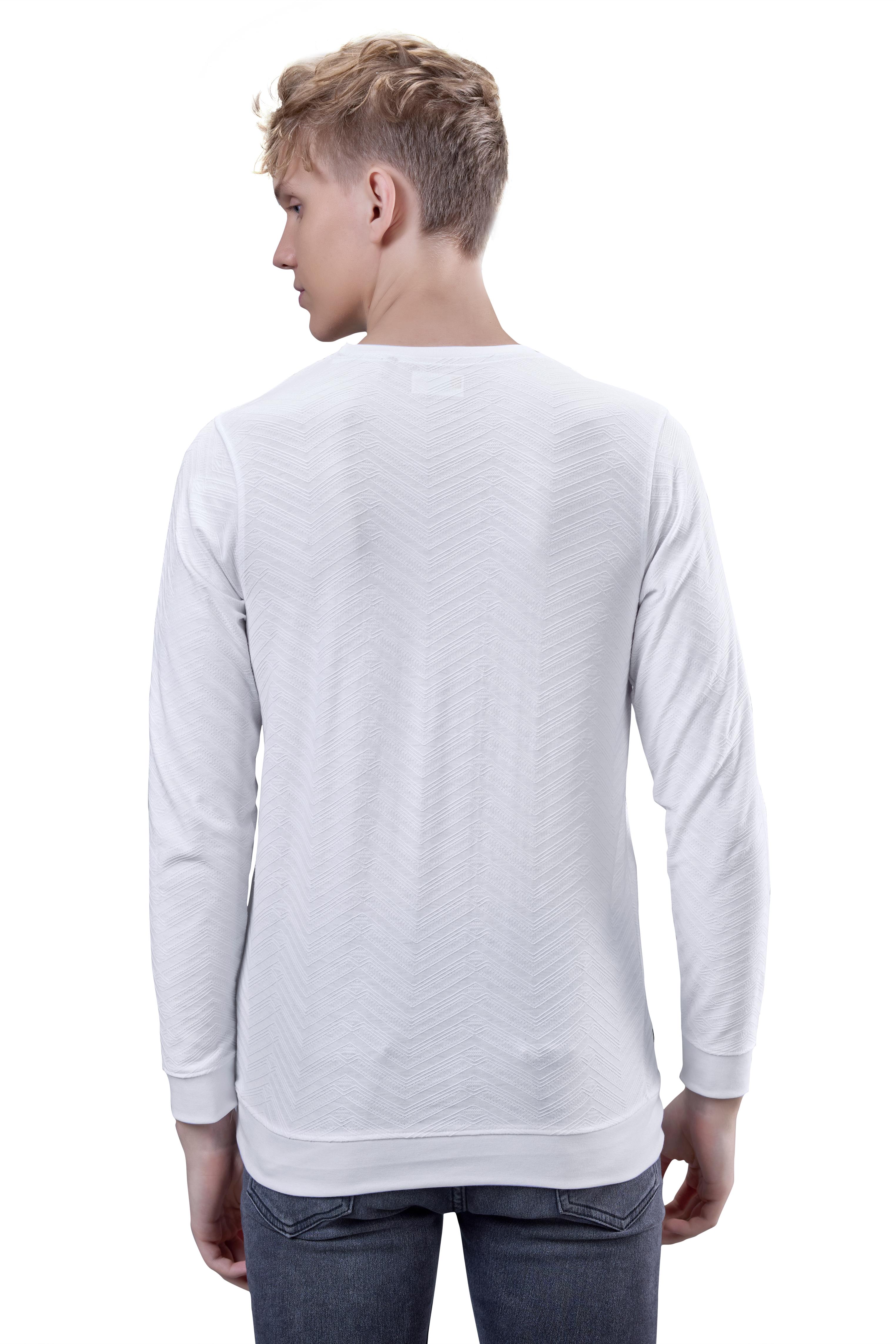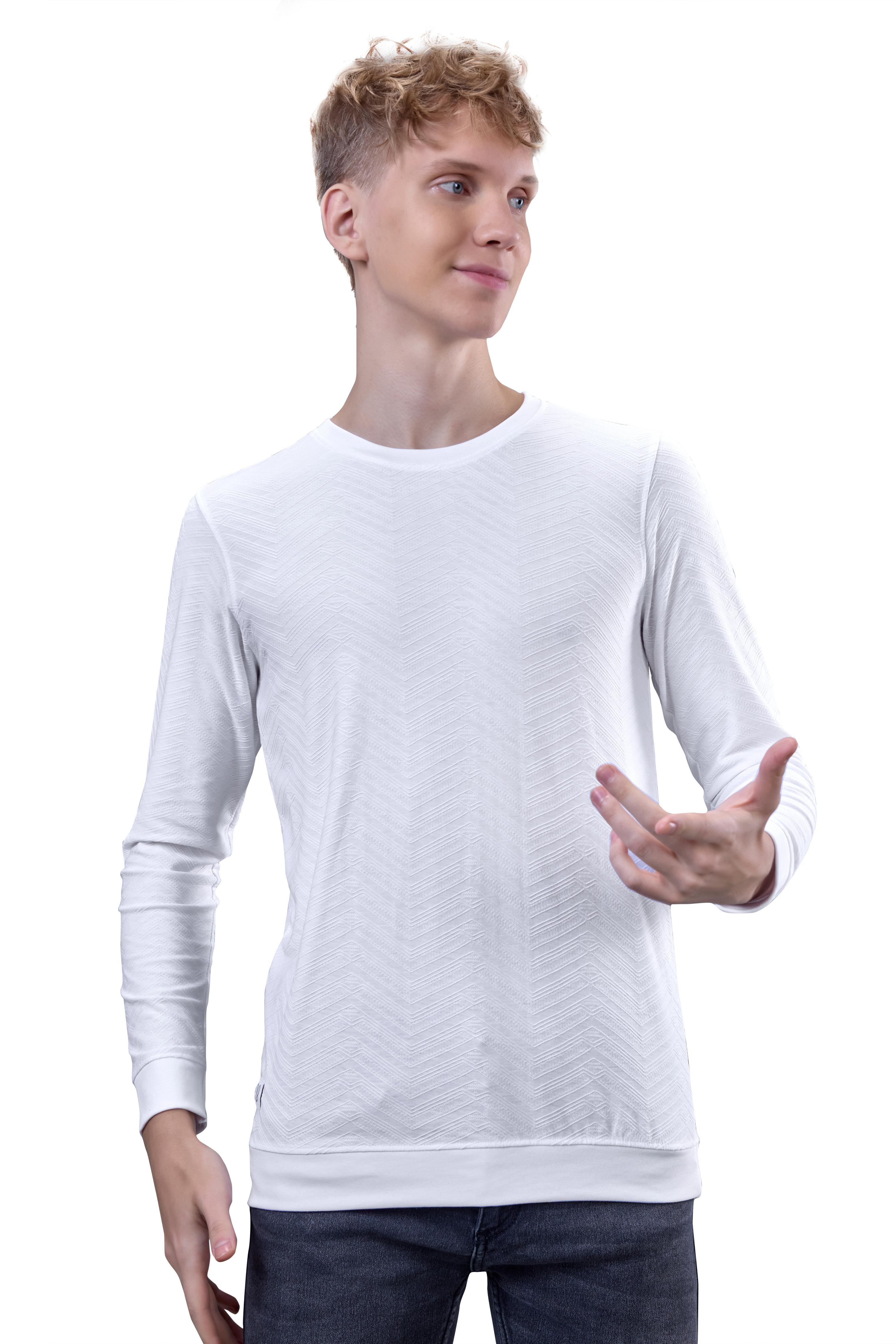 Clean and classic, the White Textured Full Sleeves Tee is a versatile wardrobe must-have with a stylish edge.