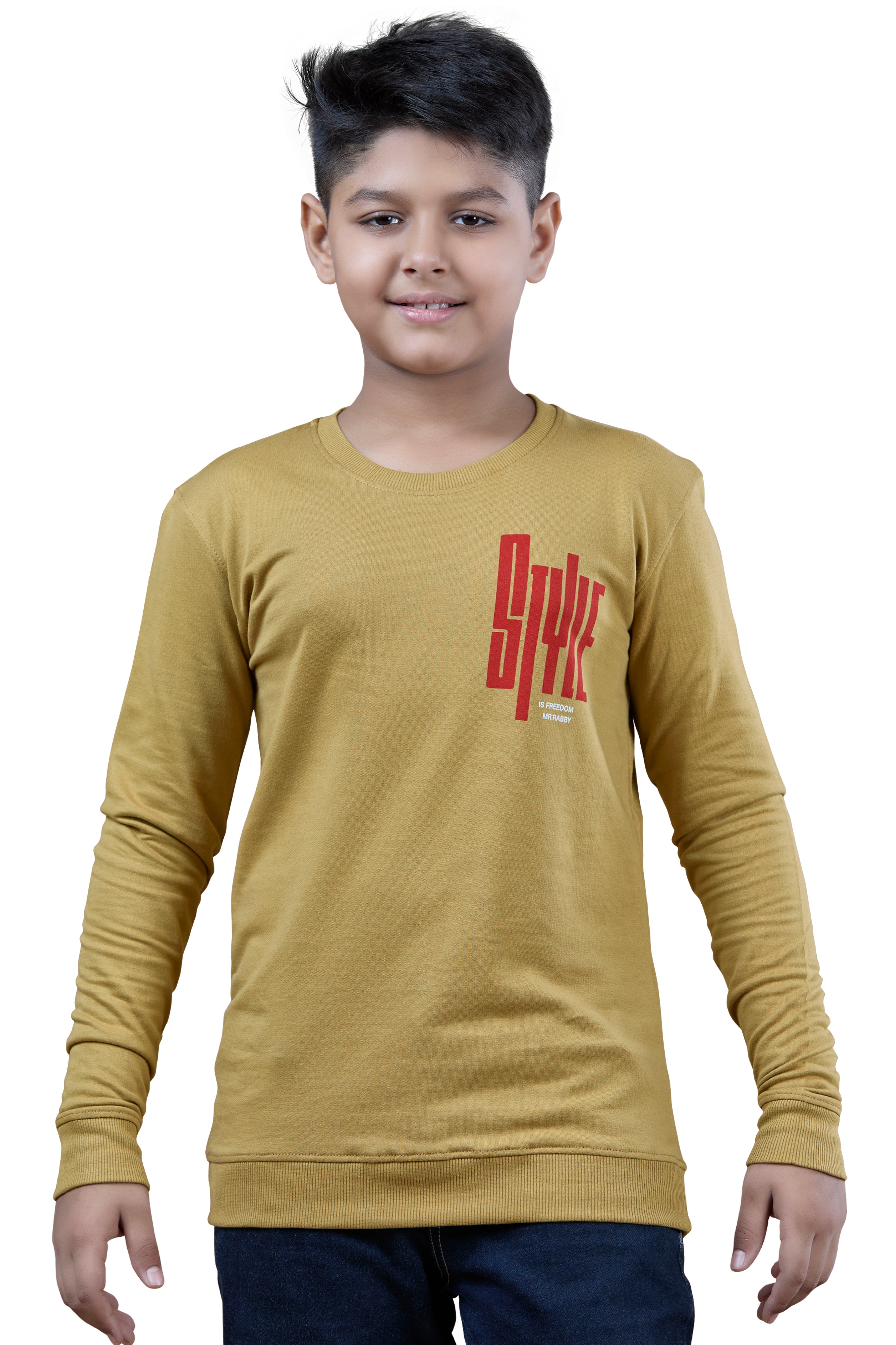 Yellow Printed Graphic Boys Full Sleeves T-Shirt